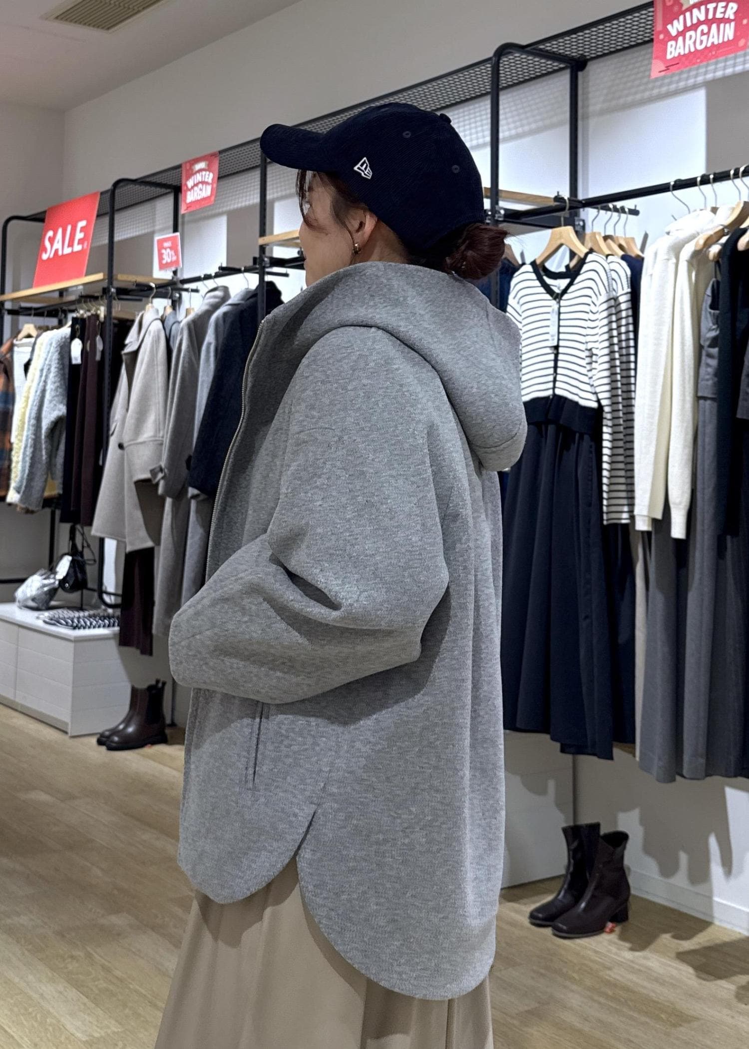 ROPÉ PICNIC【新色追加】ジャージーメルトンシリーズ ジップアップフーデッドコート/無地・チェック/リンクコーデライトグレー / F¥7,692レビューサイズ感:ゆったりとしたサイズ感で厚手のニットを着てもラクに着用できます。着丈は後ろがヒップ隠れる長さで、袖丈は手の甲が隠れる長さです。