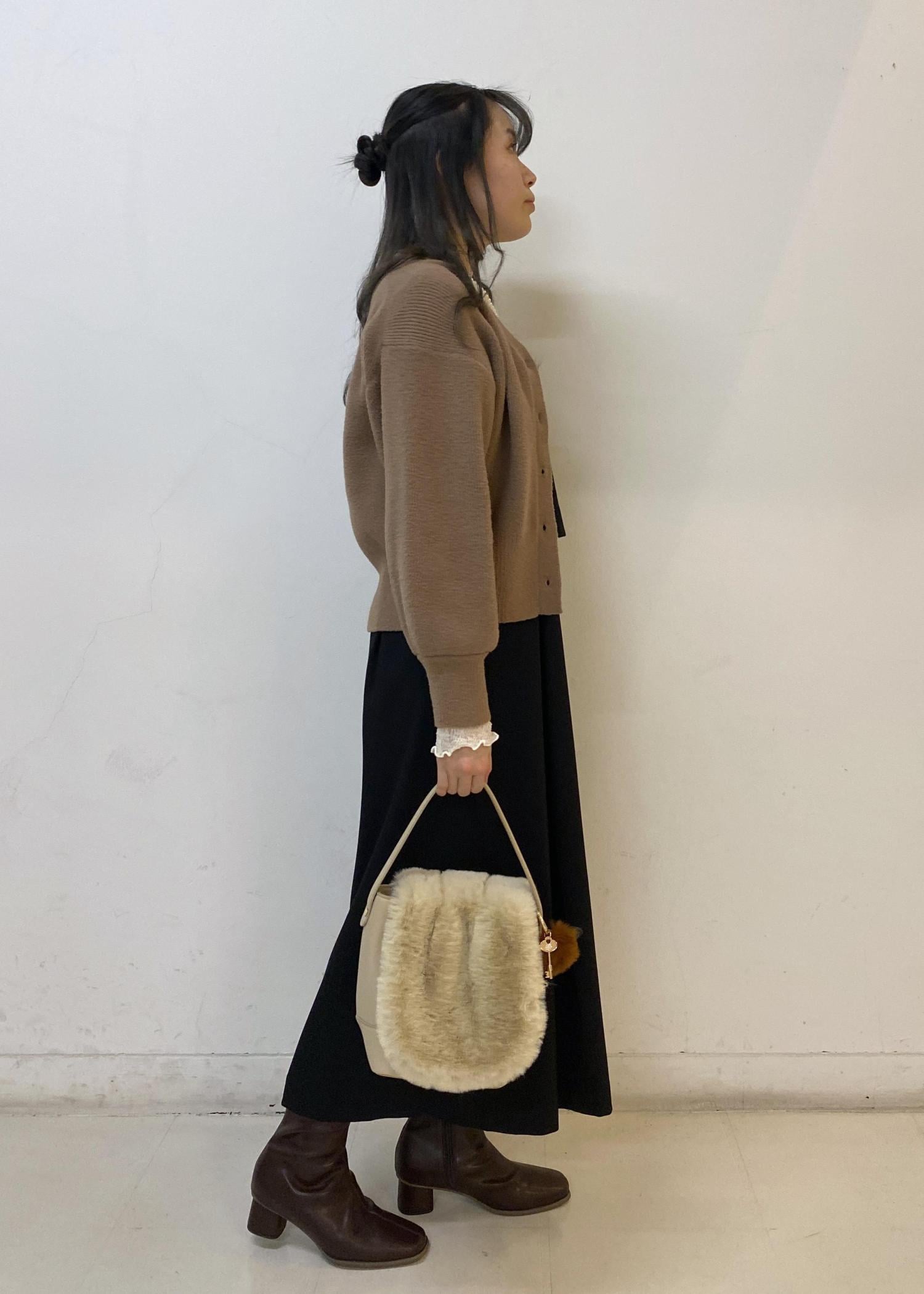 カーディガンは短めの丈感なので、ロング丈のワンピースと合わせることでスタイルアップ見えします!