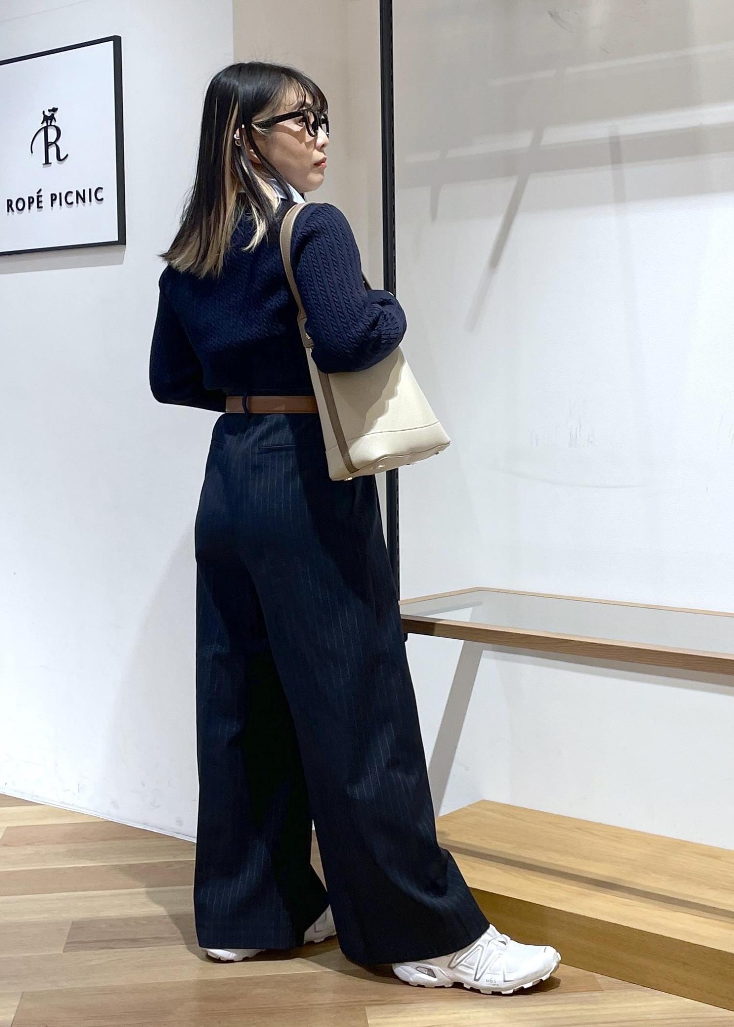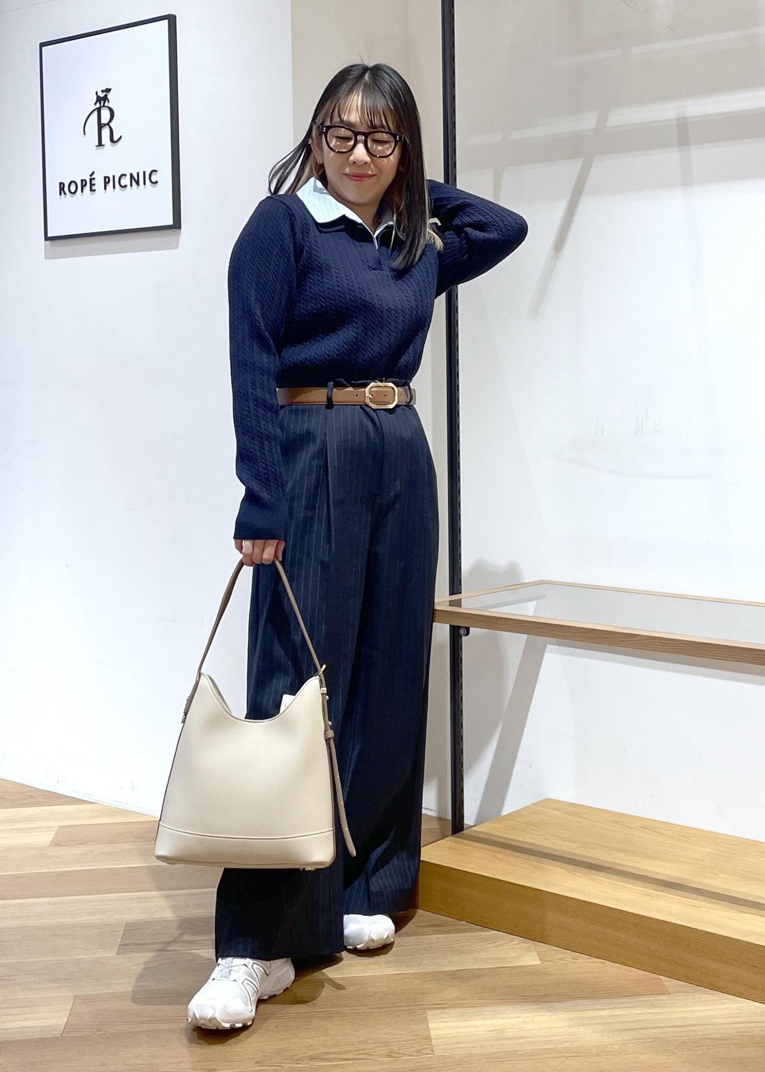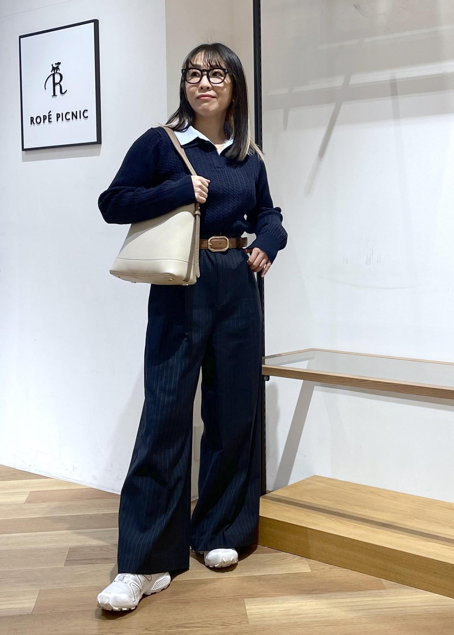 ROPÉ PICNICダブルカラーミニケーブルニットネイビー / F¥5,995レビュー襟がレイヤード風になっているデザインなのでもたつかず、スッキリきれいに着用していただけます。オフィススタイルにも○