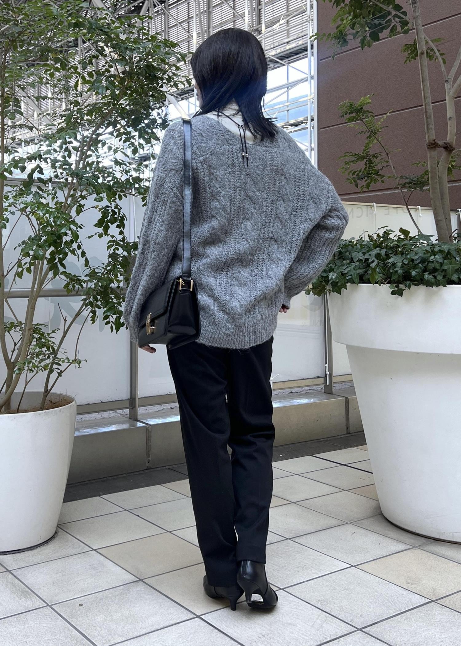 ROPÉ PICNICゆるケーブル編みVネックニットグレー / F¥2,745レビュー柔らかくふわふわしたニット生地で、ざっくりしたローゲージの編地で軽い素材感。