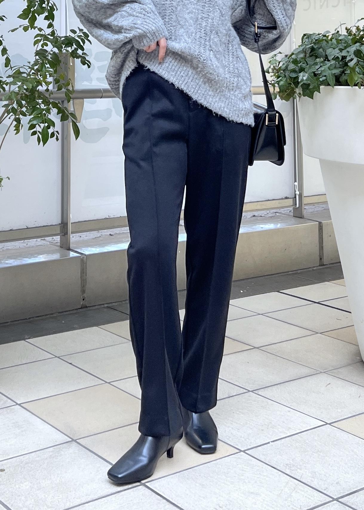 やや細身のシルエットですが、脚のラインを拾わずスッキリ感のあるシルエットです。 -