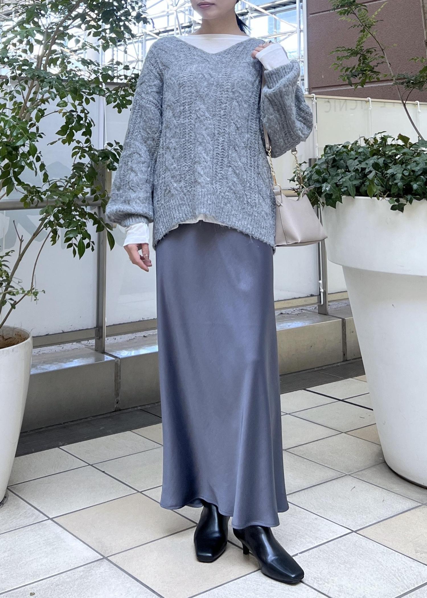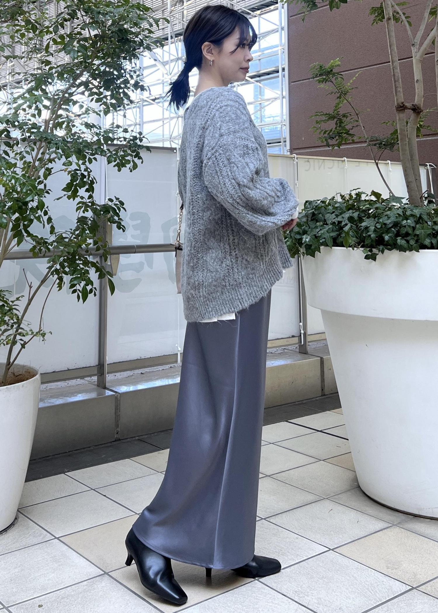 軽やかなサテン地のスカートなら、女性らしいフェミニンさがプラスできます◎。