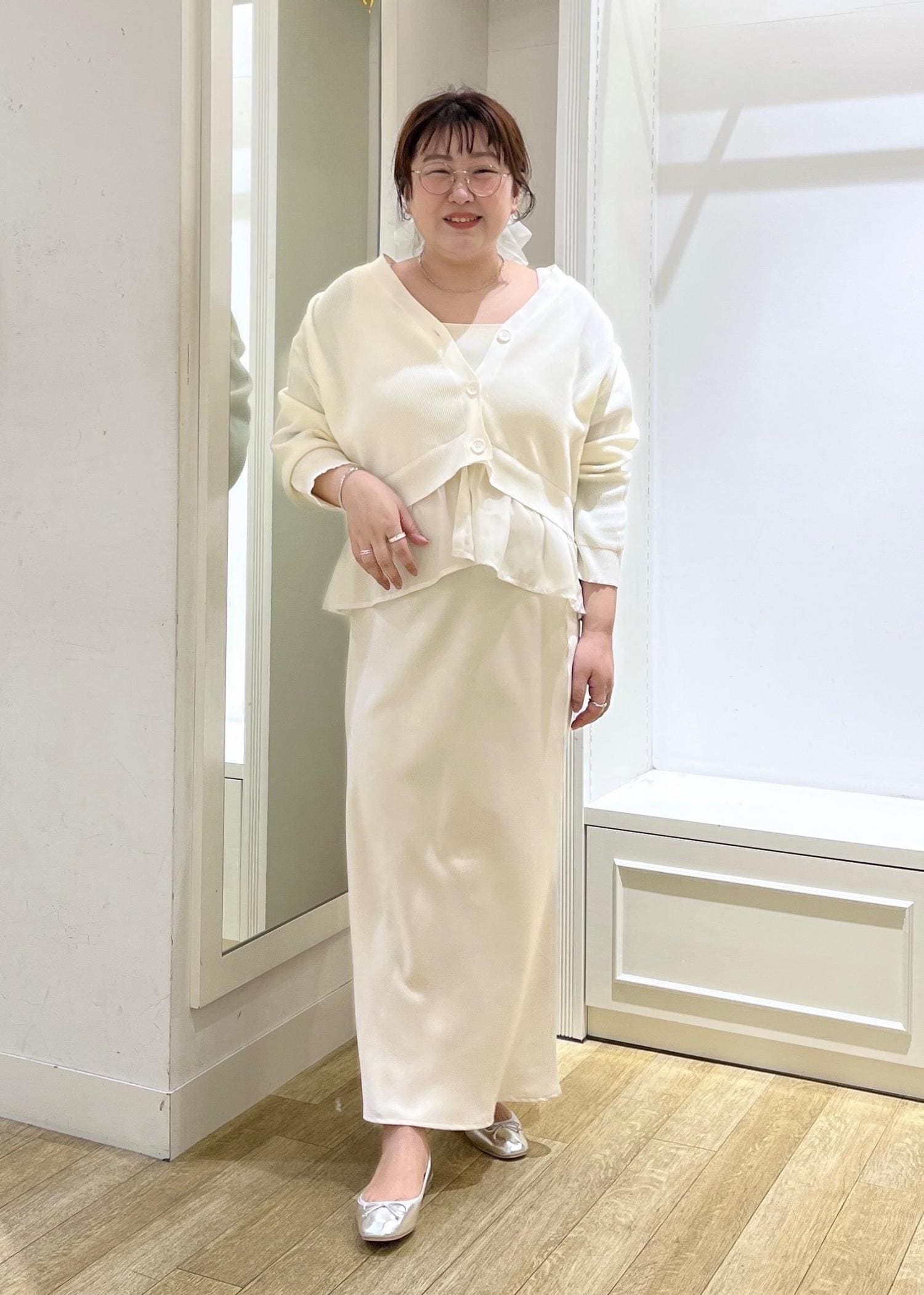 ホワイトのアウターで合わせて、