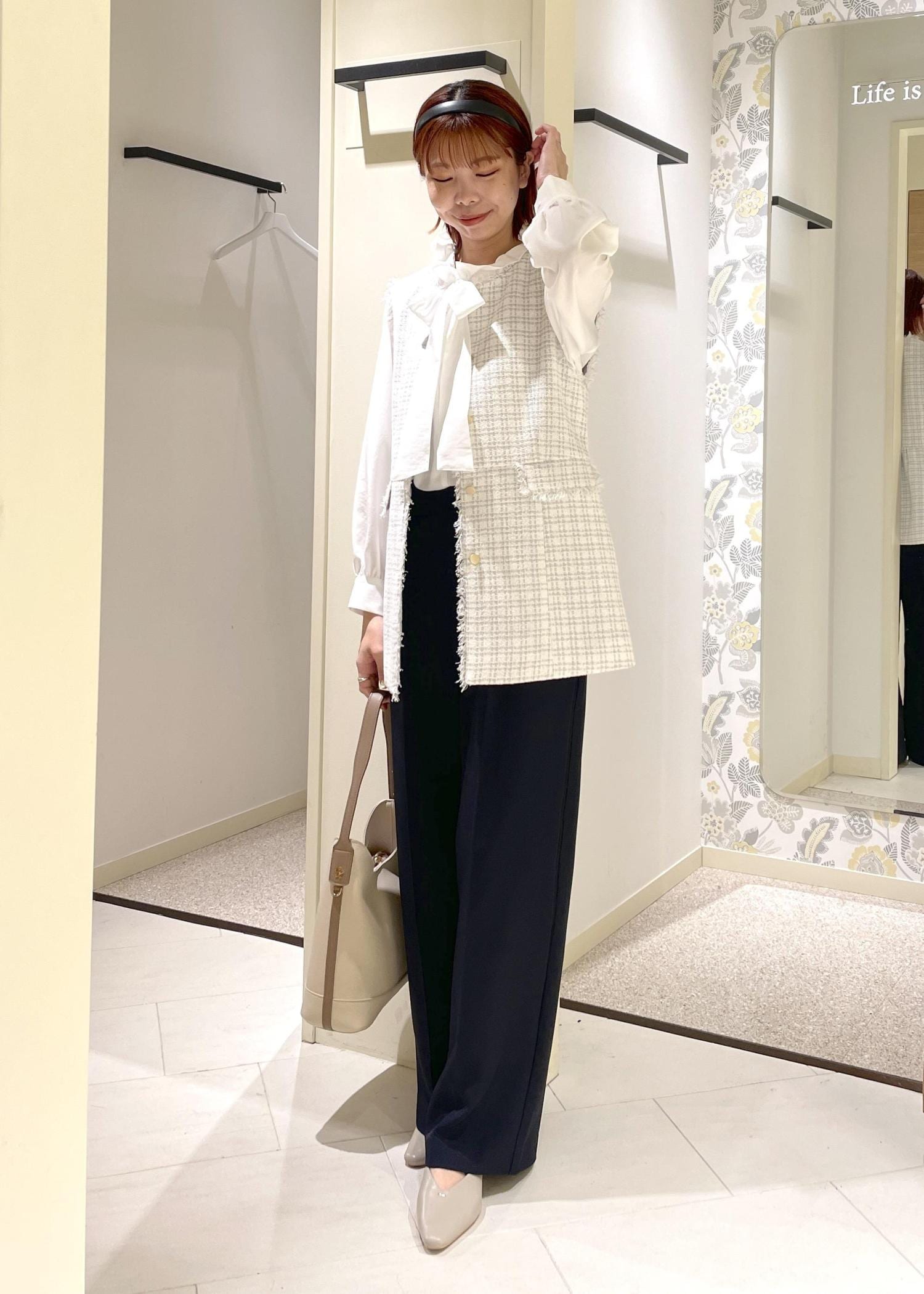 きちんと、そして女性らしくキマるツイードジレ
