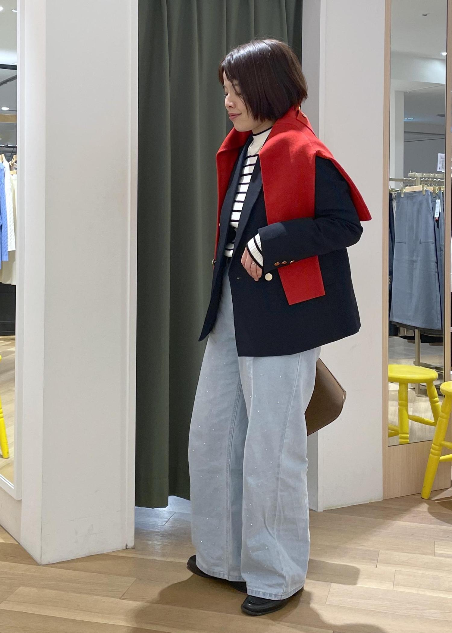 ボトムはサックスブルーのデニムを合わせることで、軽やかで春っぽい着こなしにまとめました!