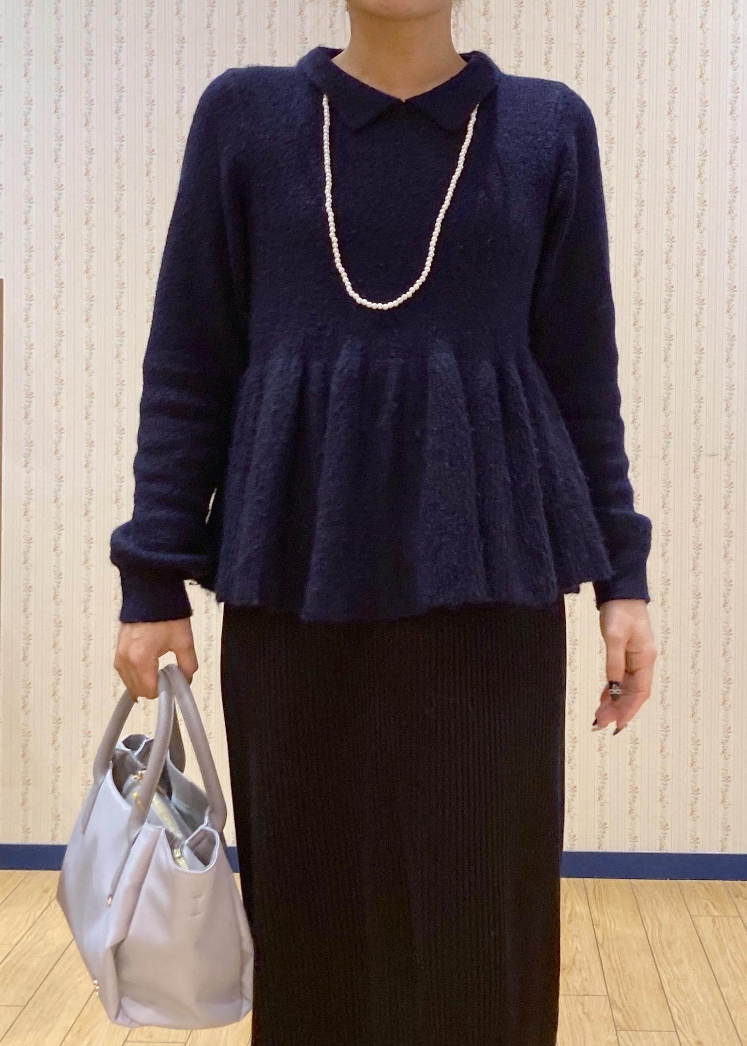 襟付きできちんと感とペプラムシルエットで体型カバーも叶う万能ニットです。