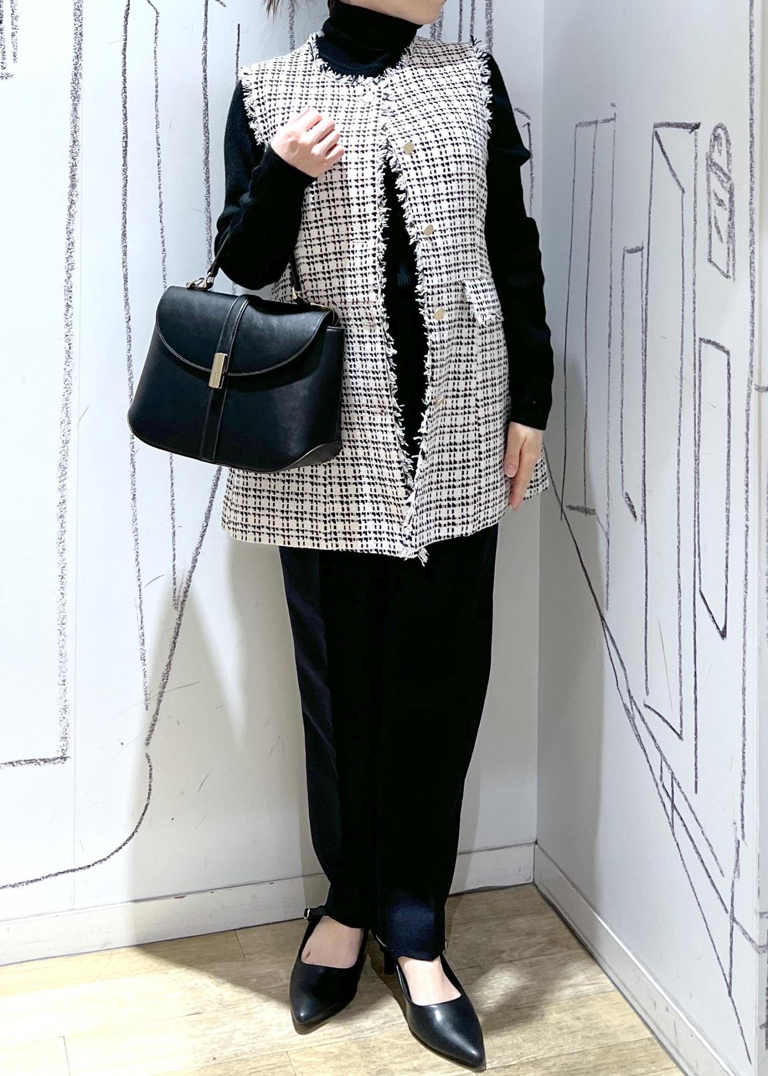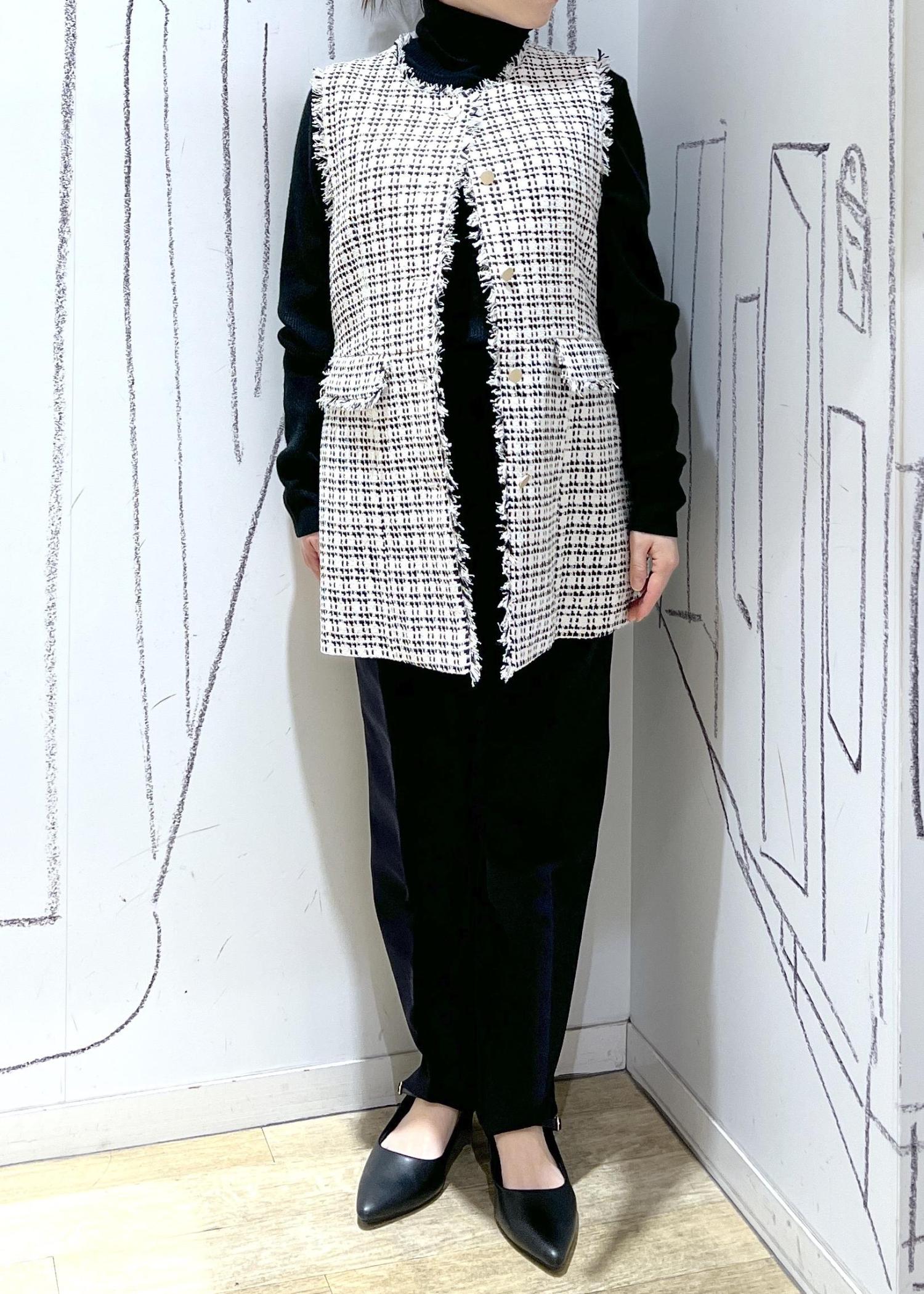 ROPÉ PICNICセレモニー・通勤対応/ツイードジレベストブラック系 / 38¥7,910レビューお尻の隠れる長さ、コンパクトなシルエットです。ワンサイズでも小柄さんも着やすい仕上がりです。入卒シーズンやオケージョンアイテムとして、お仕事やデニムにTシャツを合わせてカジュアルまで楽しんで頂けます。今回は起毛感少なくサラッとした表面で季節問わず使いやすです◎