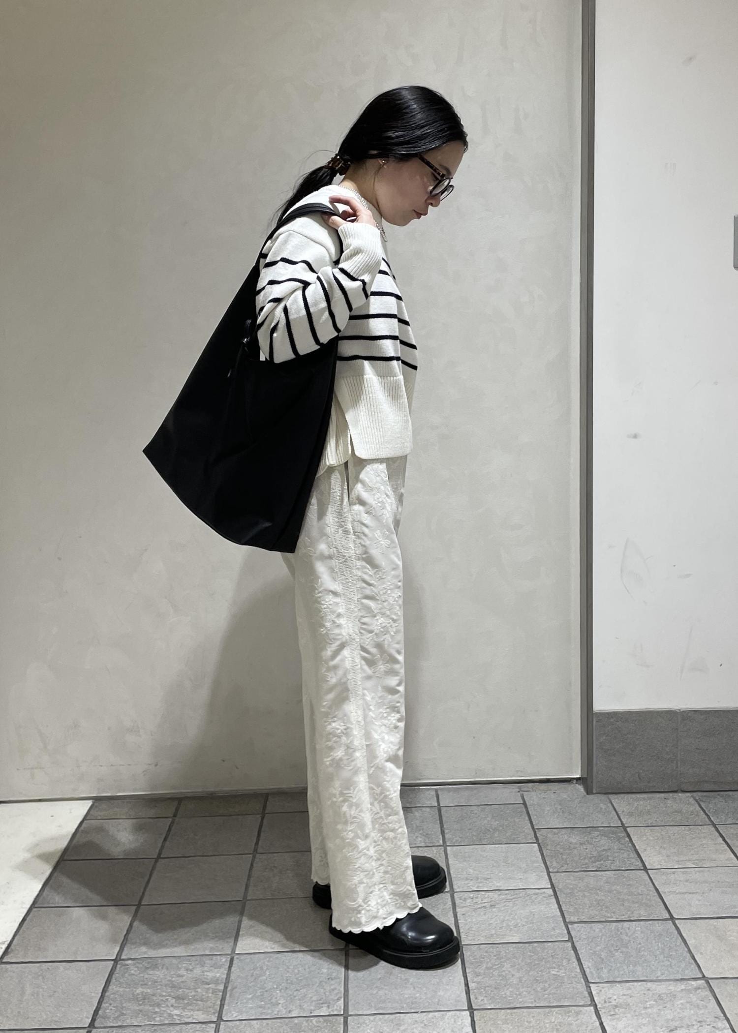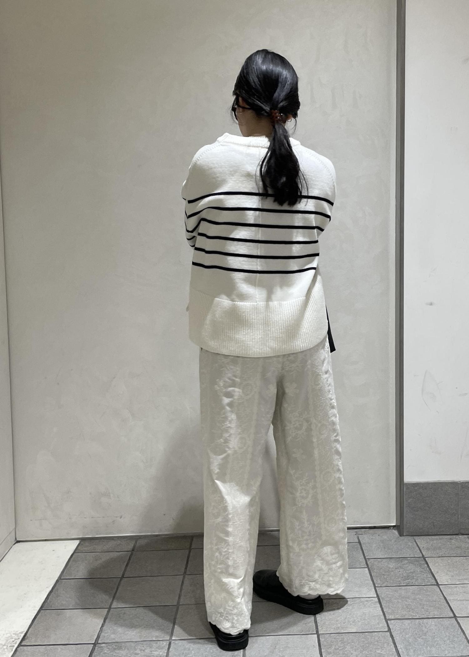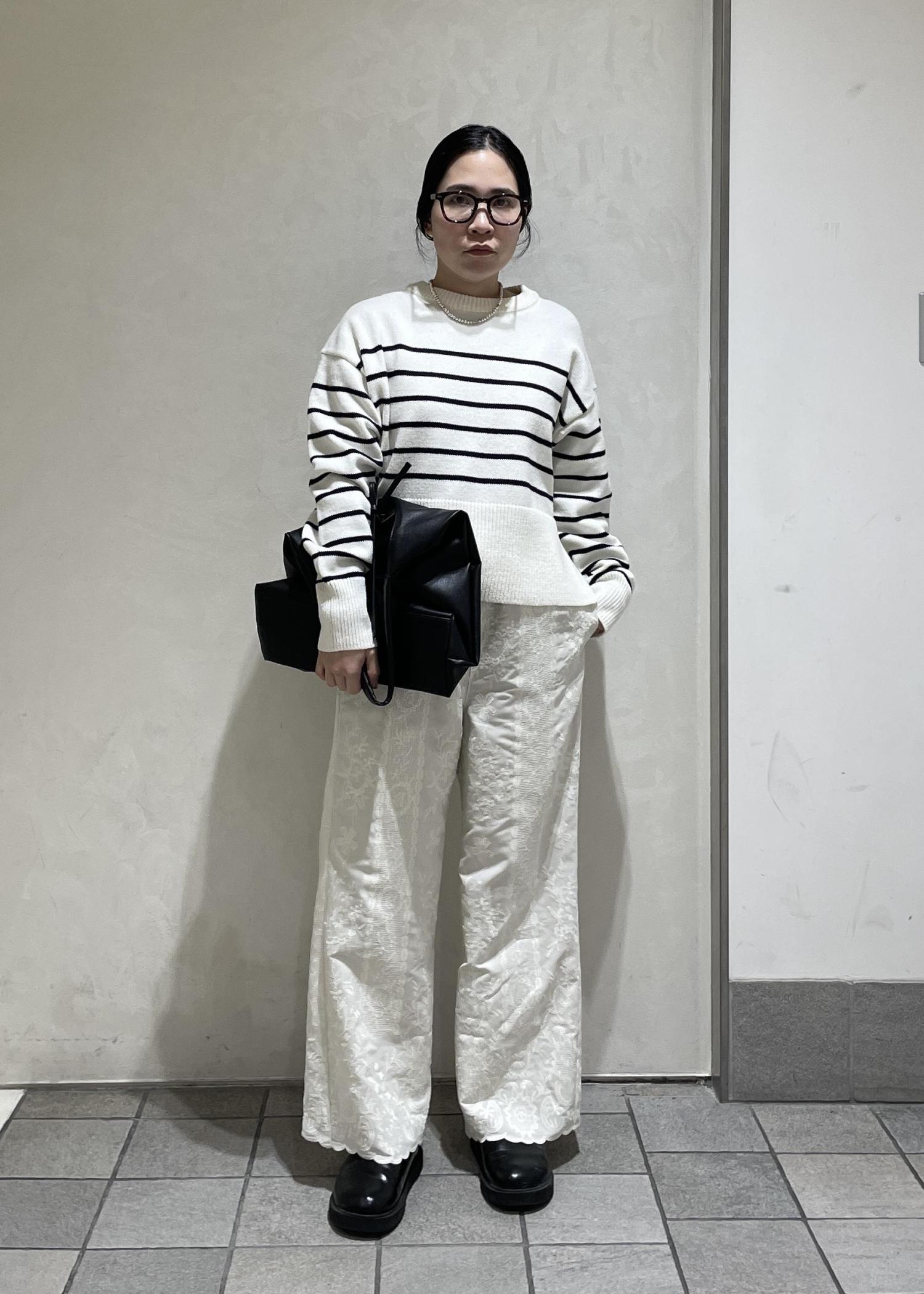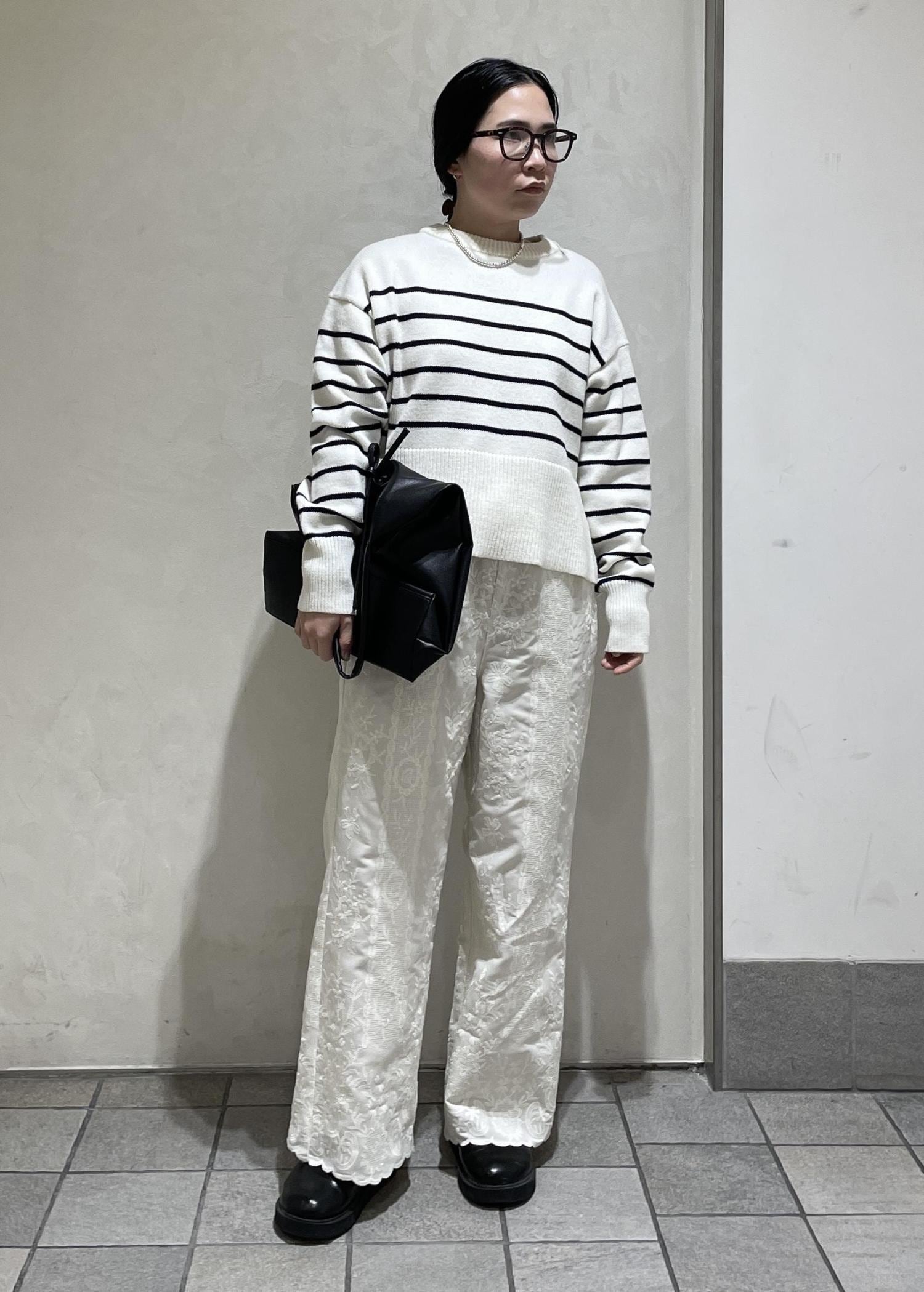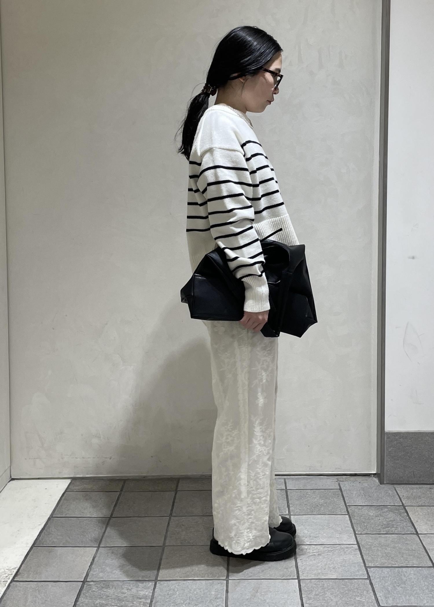 大人気のサイドスリットニットは、ボーダーだと白いパンツに合わせると春っぽいスタイリングに!