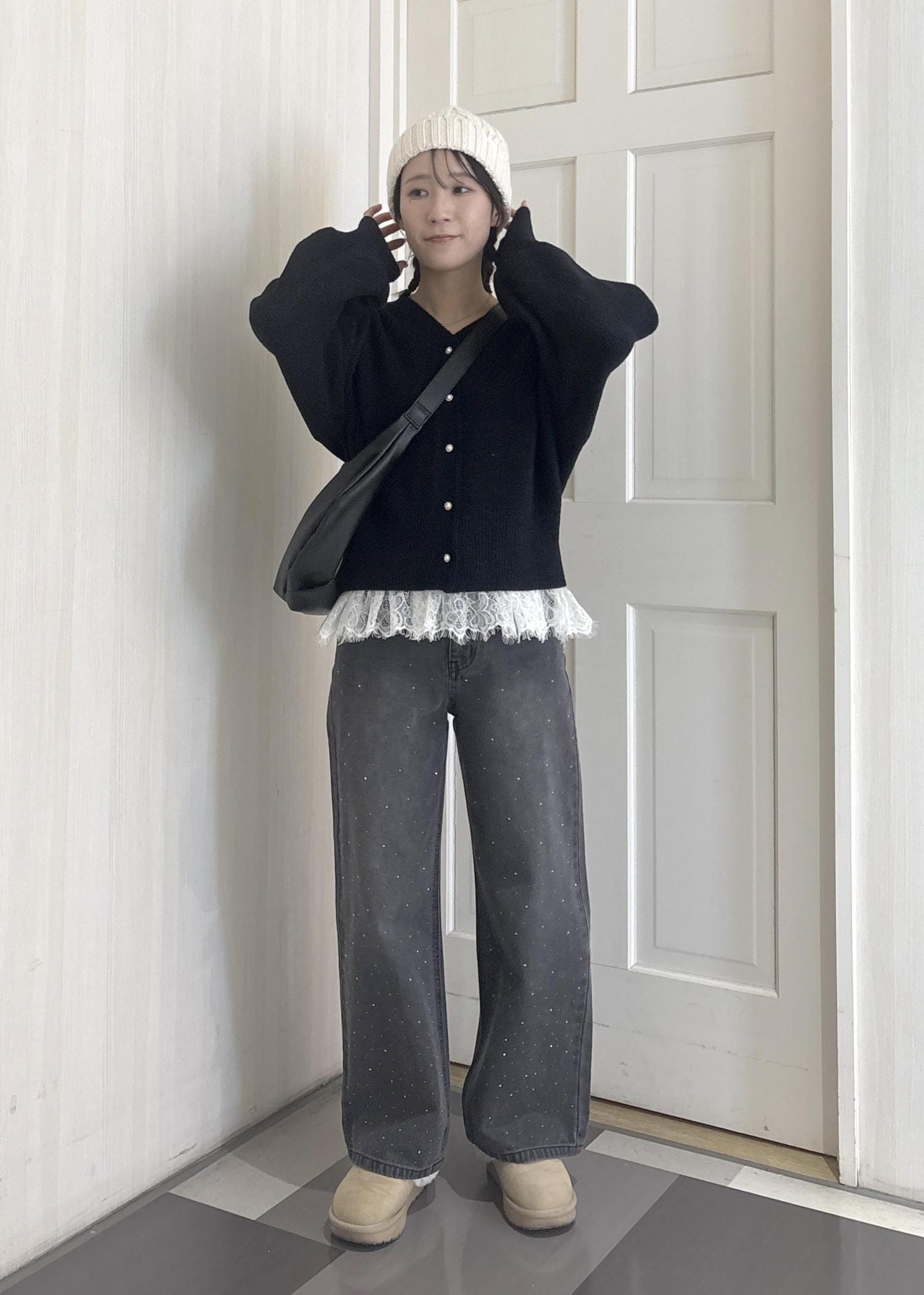 柔らかいデニム素材で、細かいビジューが女性らしい1本です。 -