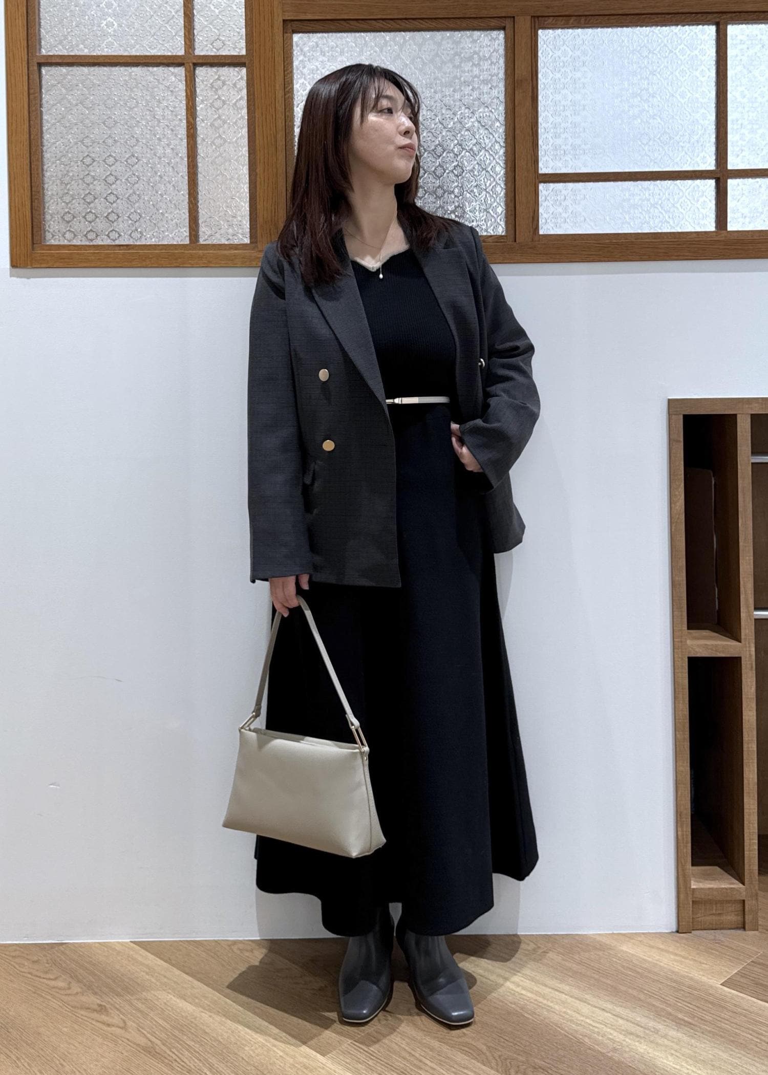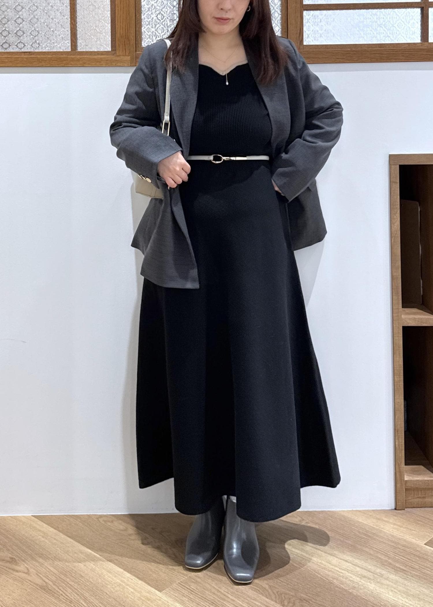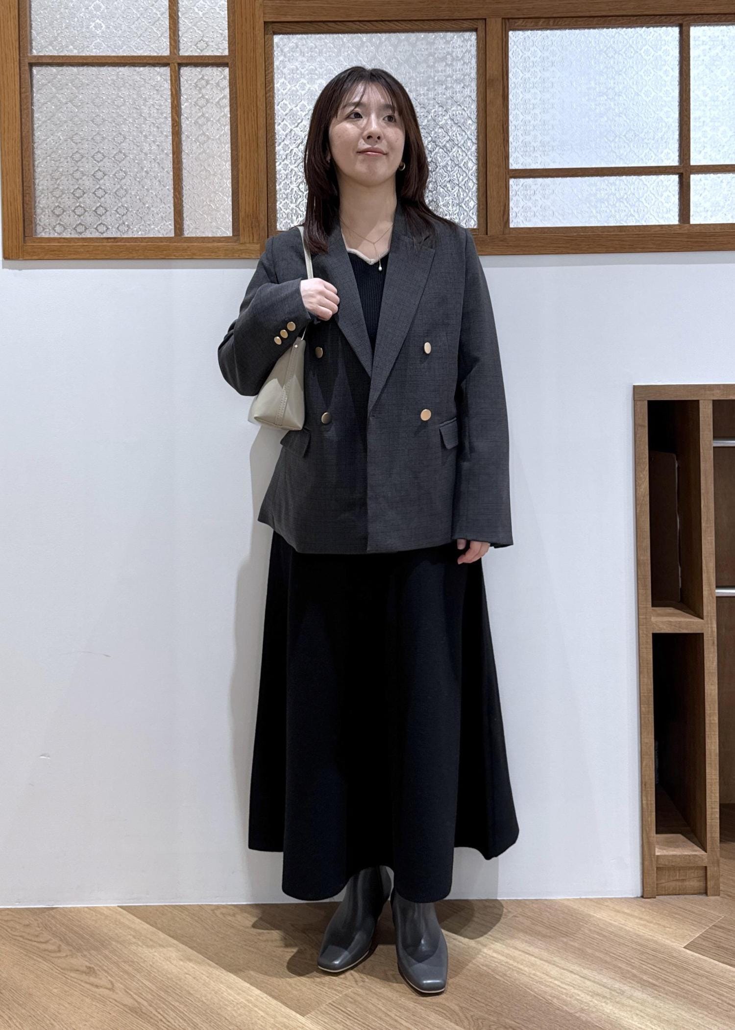 ジャケット合わせて品よくシックにまとめました。