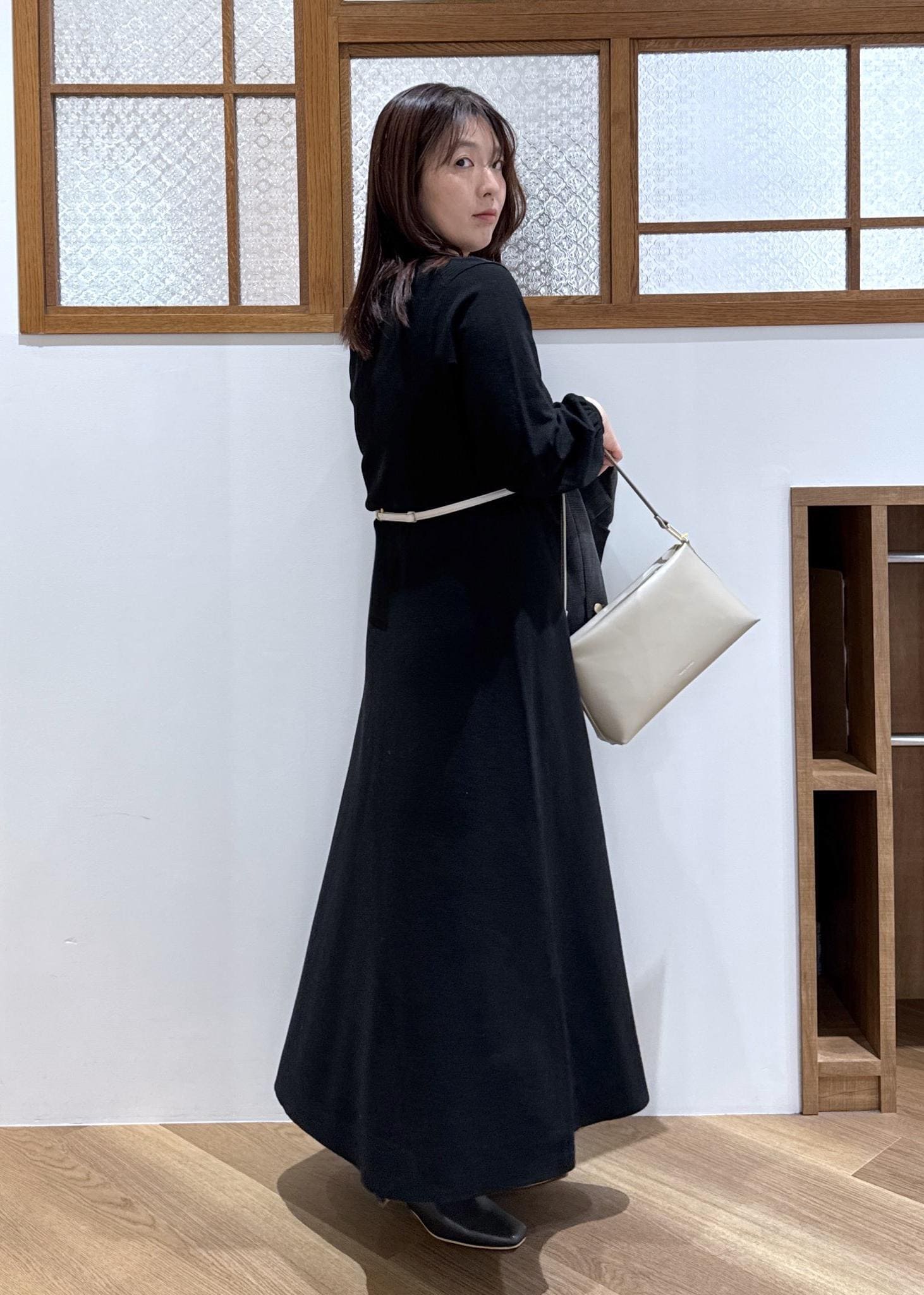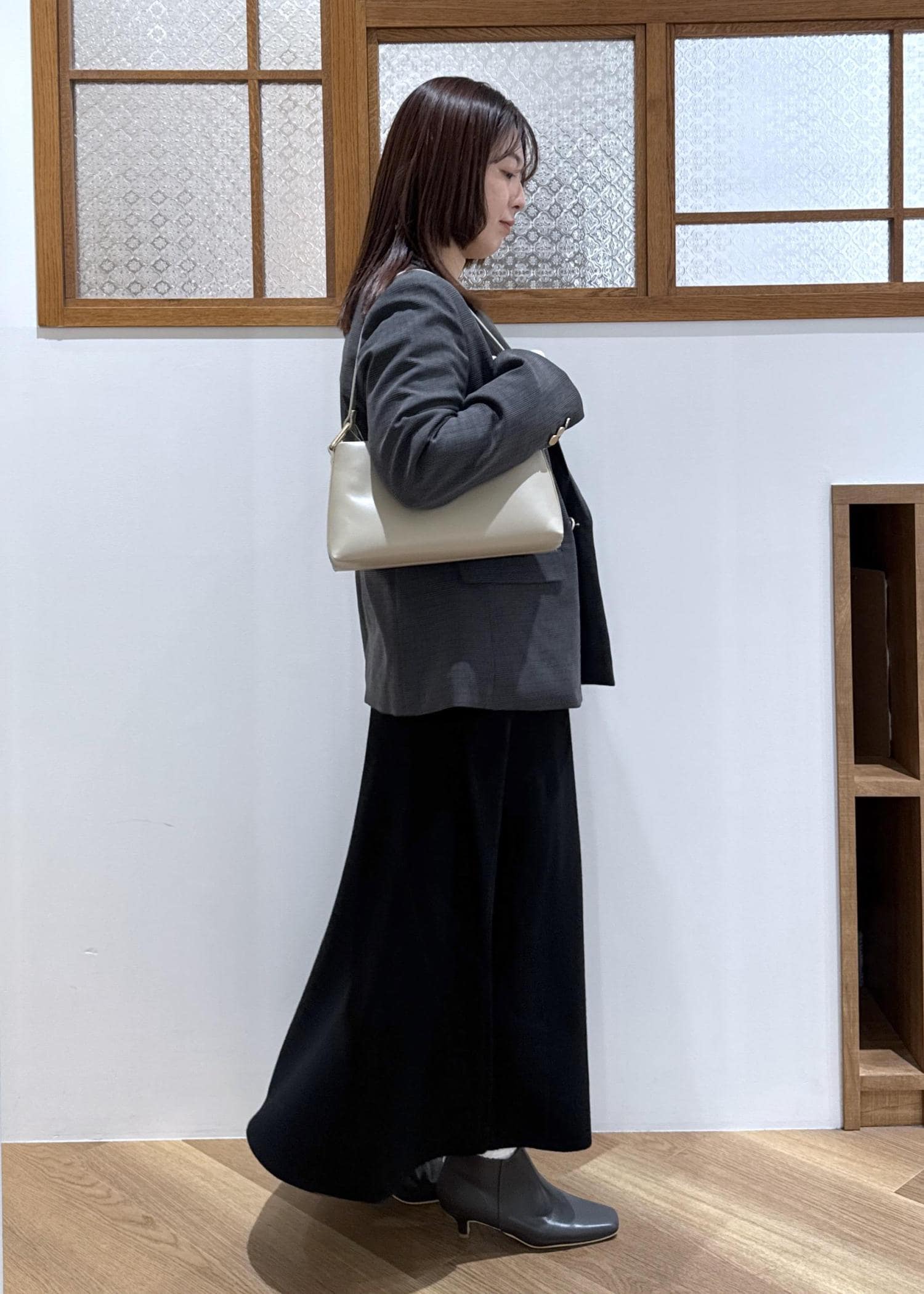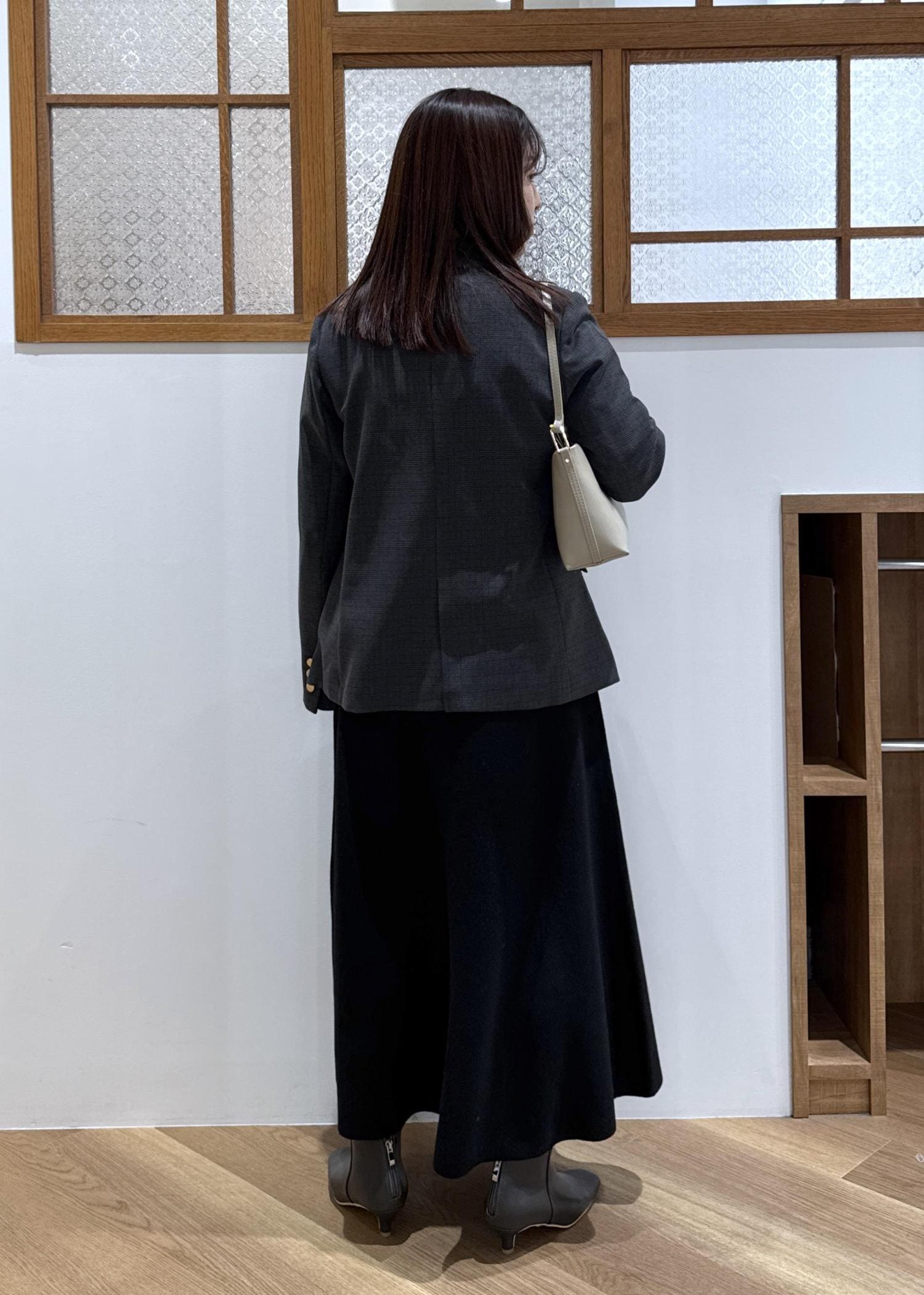 ジャケット合わせて品よくシックにまとめました。