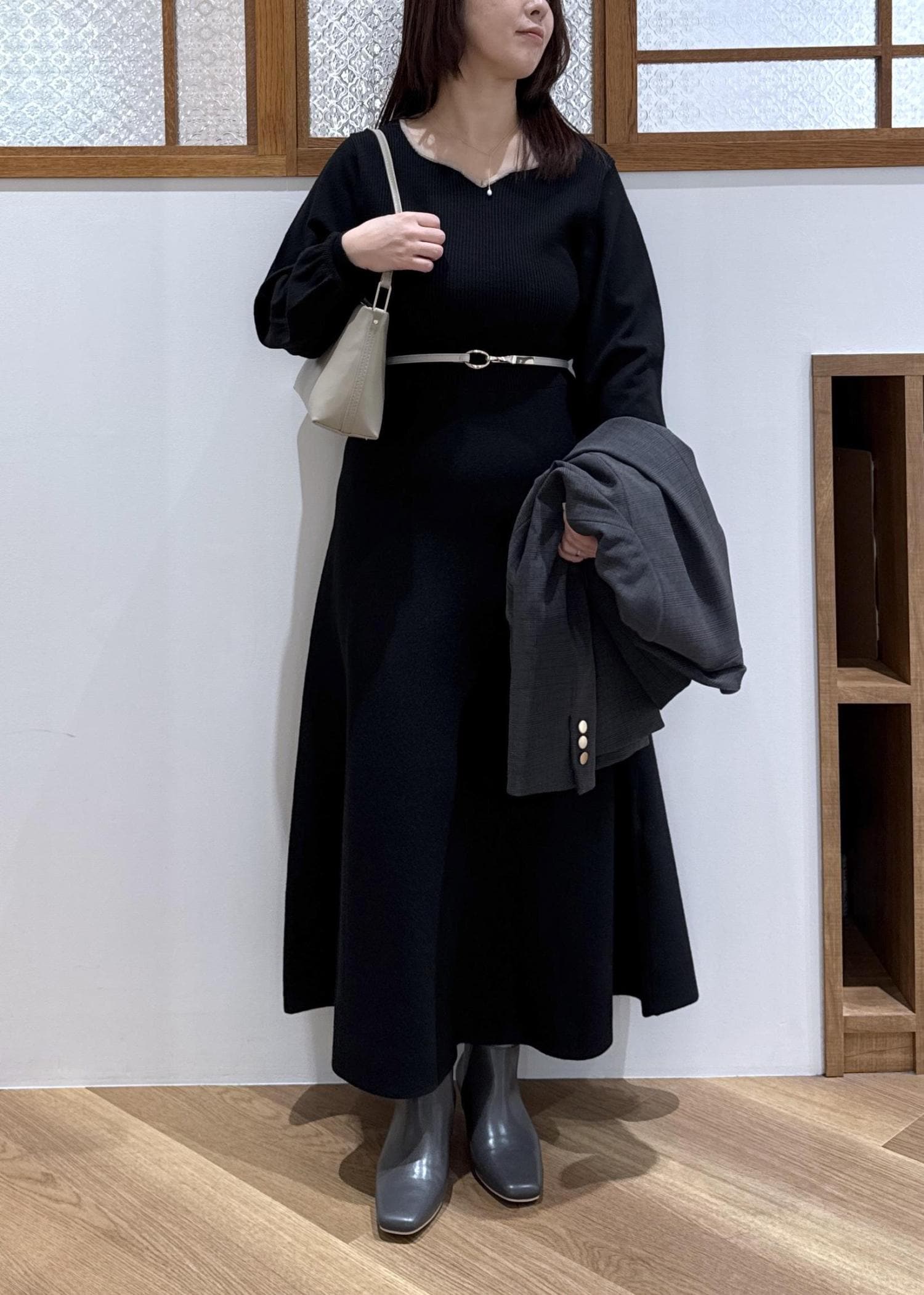 ジャケット×ニットワンピの上品コーデ