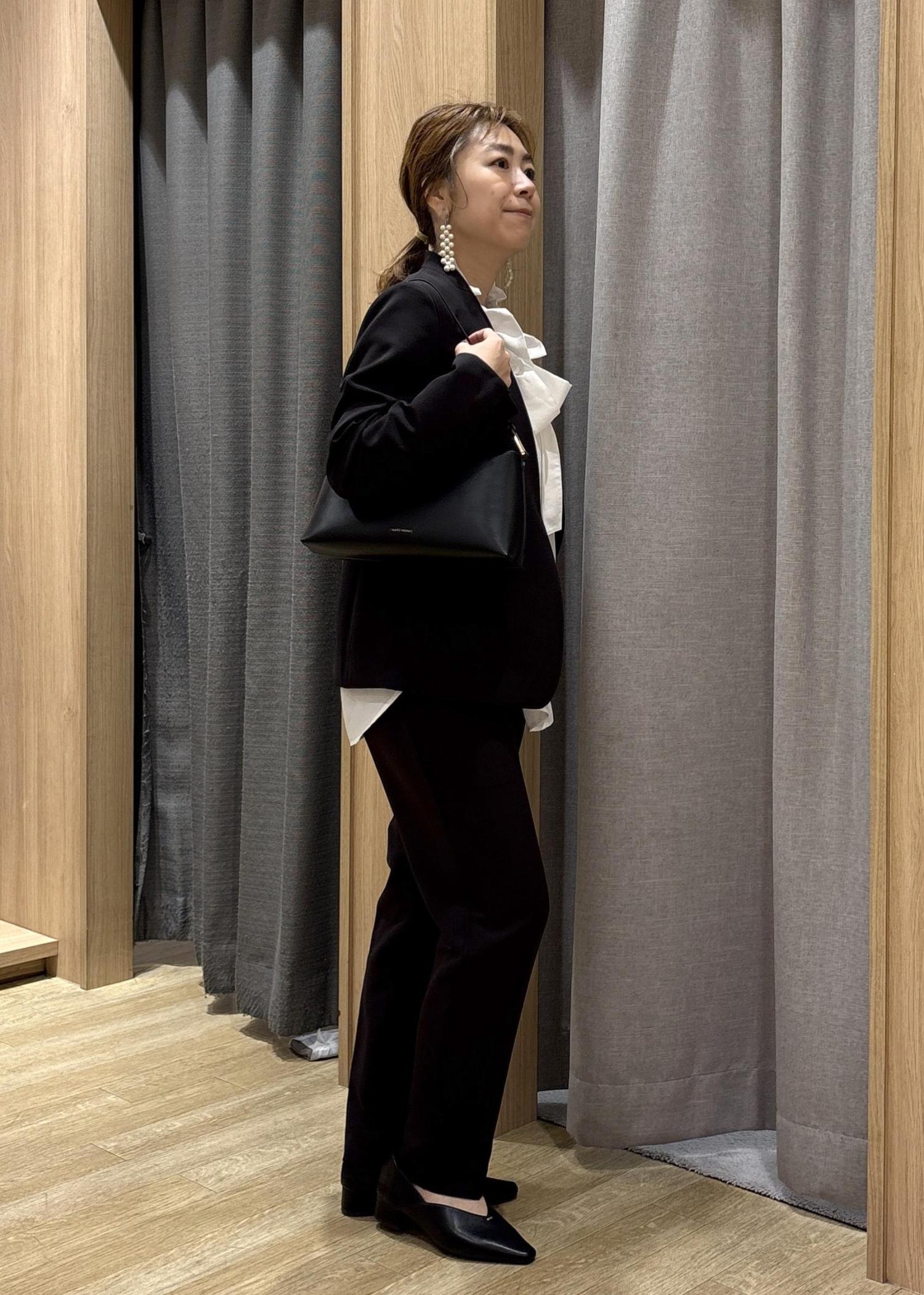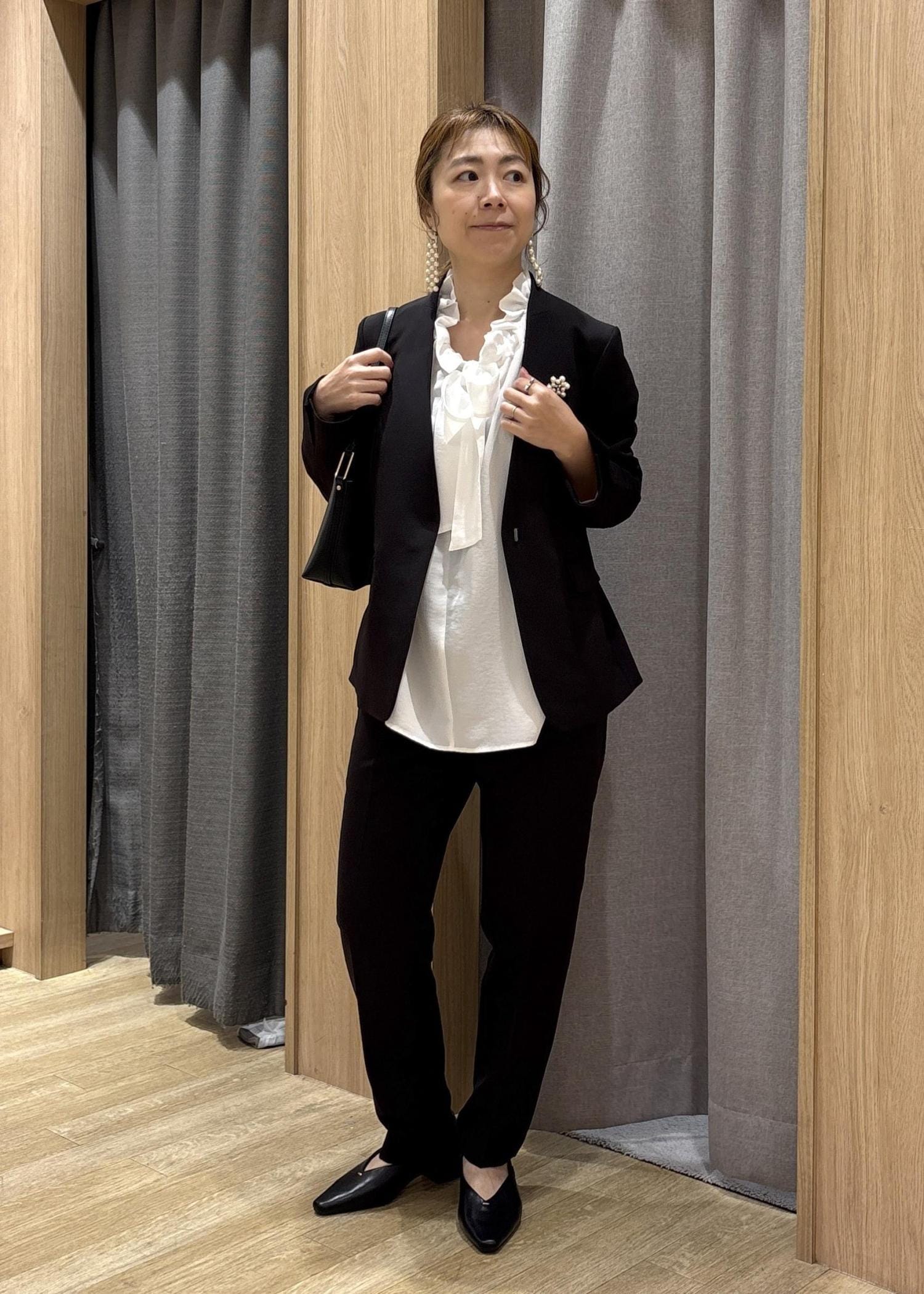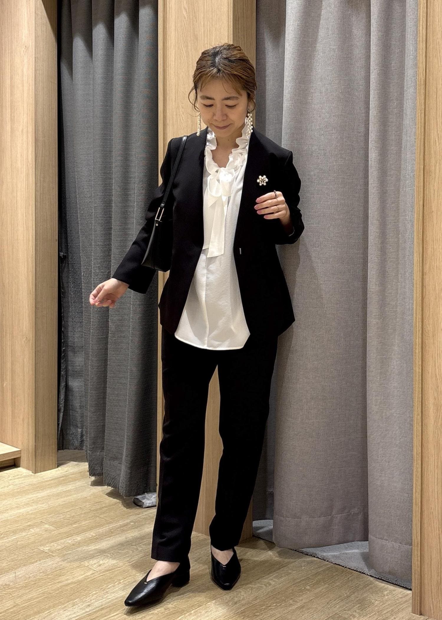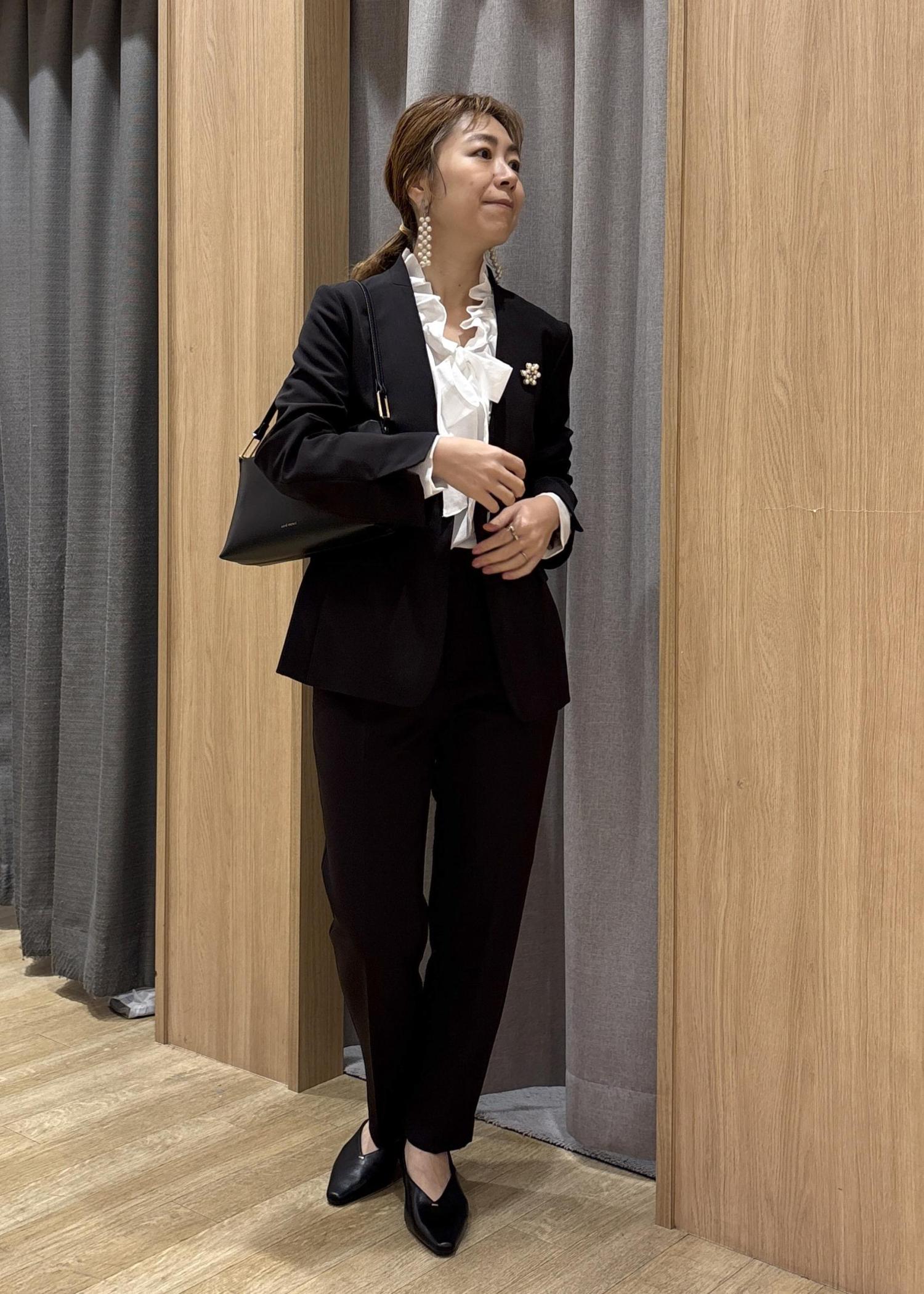 卒園式も入学式も兼用なら、こちらのブラックセットアップにしたいなのコーディネートです◎