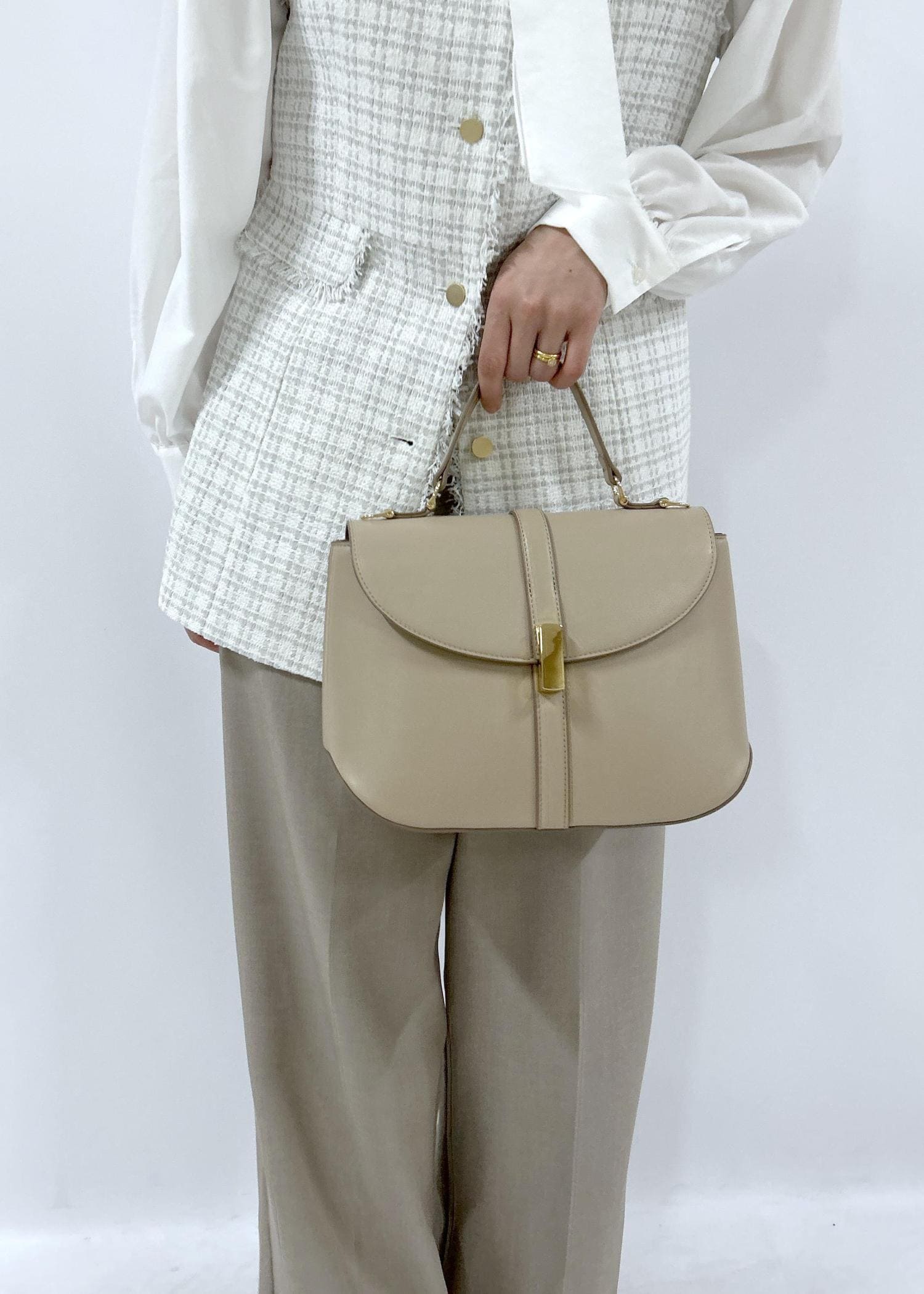 ROPÉ PICNIC PASSAGEセンターベルトワイドトップハンドル&ショルダーバッグベージュ系 / F¥6,589レビュー幅広いシーンで合わせやすいバッグです。持ち手がシングルですっきりしたサイズ感なのでハンドバッグにしても上品な印象に◯ショルダー付です。
