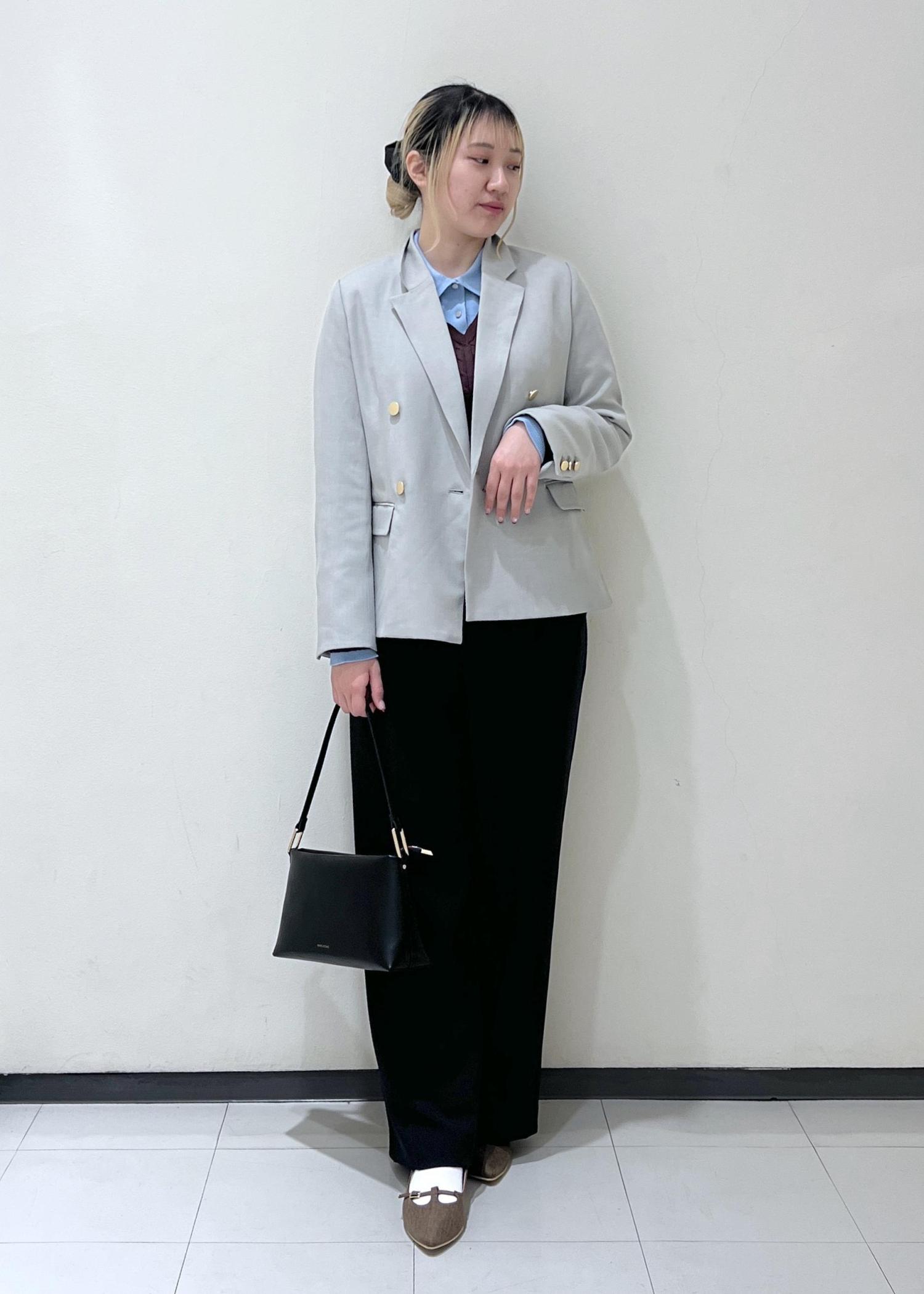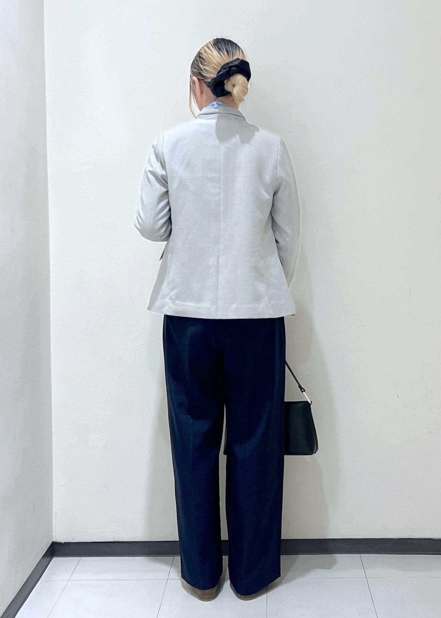 ジャケットとパンツの色を合わせてセットアップにするだけではなくあえて違う色を組み合わせることでオフの日でも着ていただけるコーディネートにしました!
