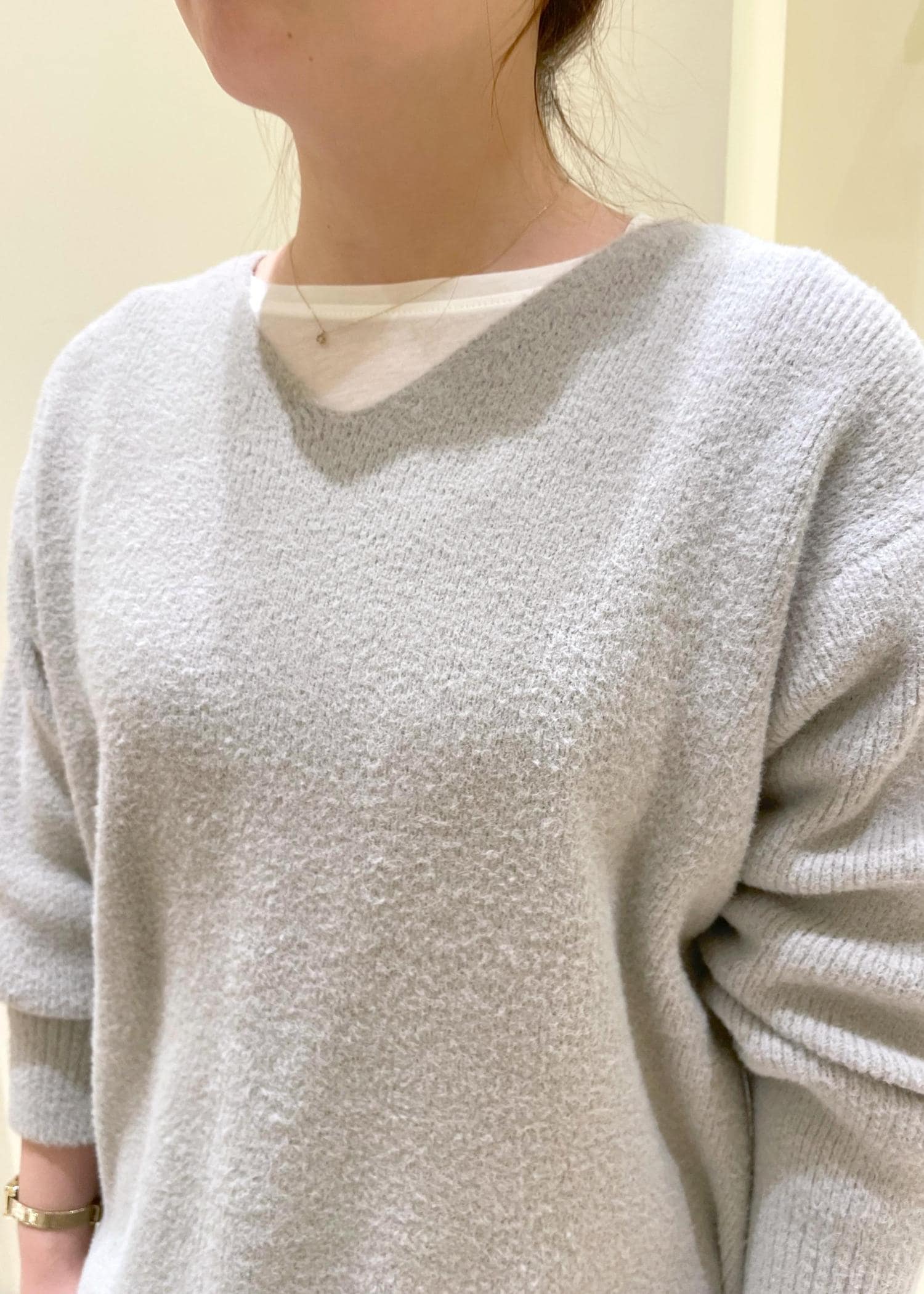 もちもちな素材で肌触りも良くvネックなので首がすっきりとしてスタイルアップに繋がります。 -