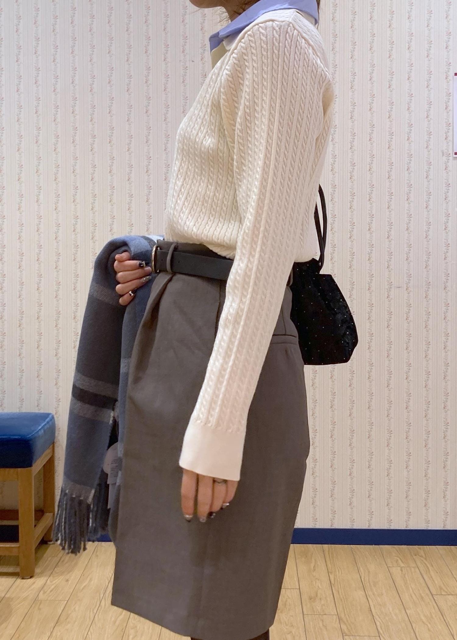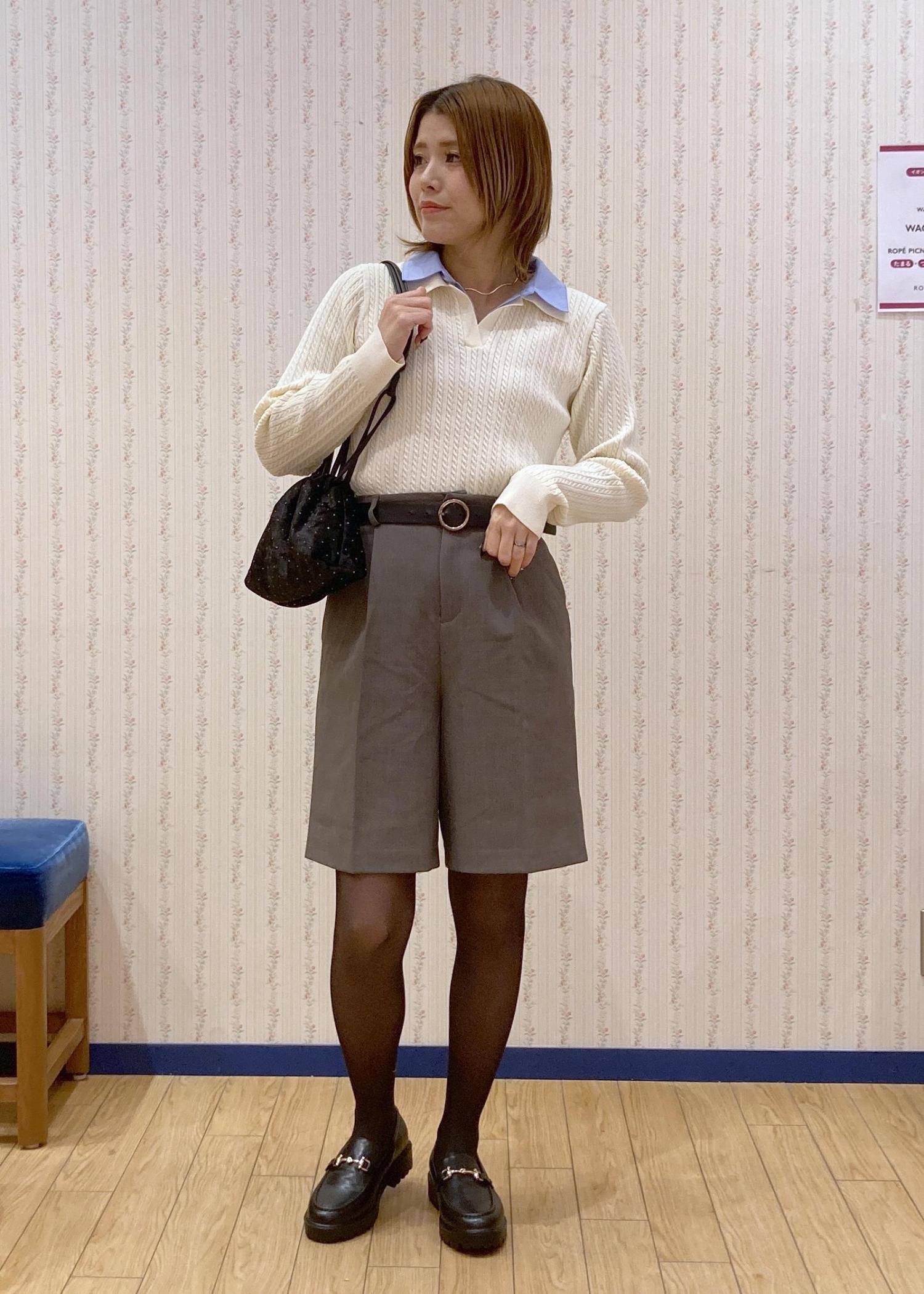 ROPÉ PICNICダブルカラーミニケーブルニットキナリ / F¥5,995レビューシャツの襟がドッキングされたスキッパーニットです。