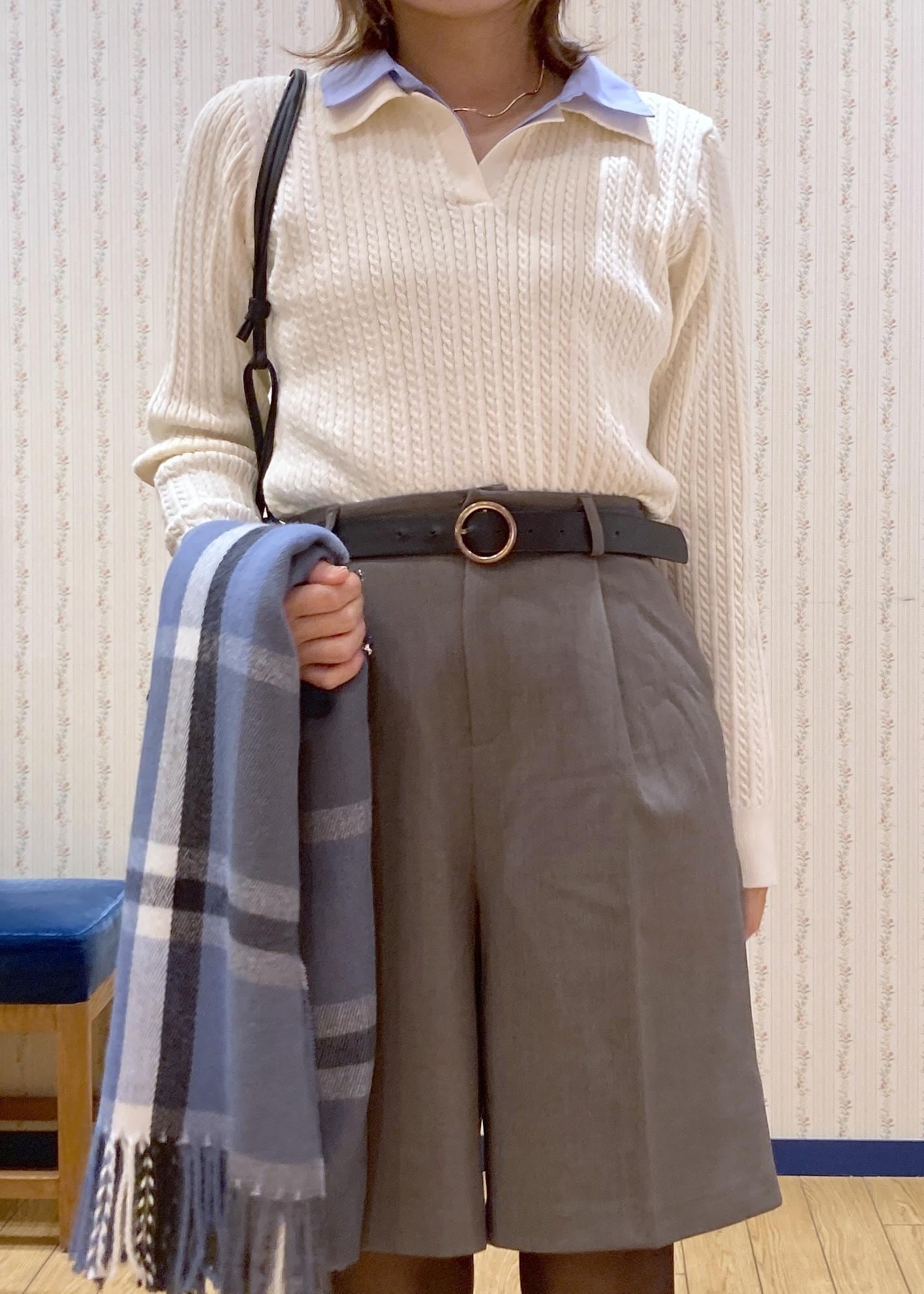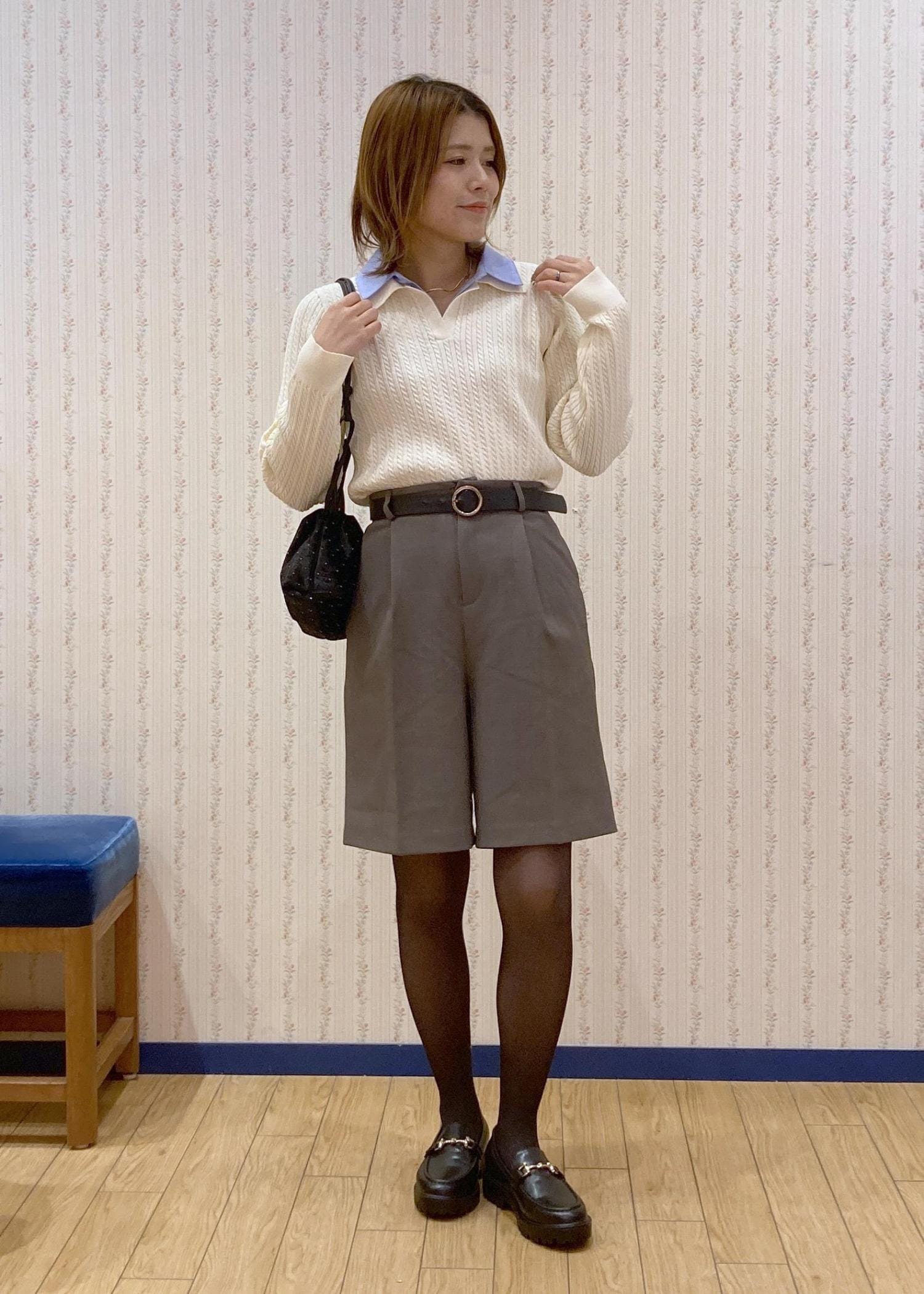 マニッシュに仕上げた大人のハーフパンツコーディネートです。
