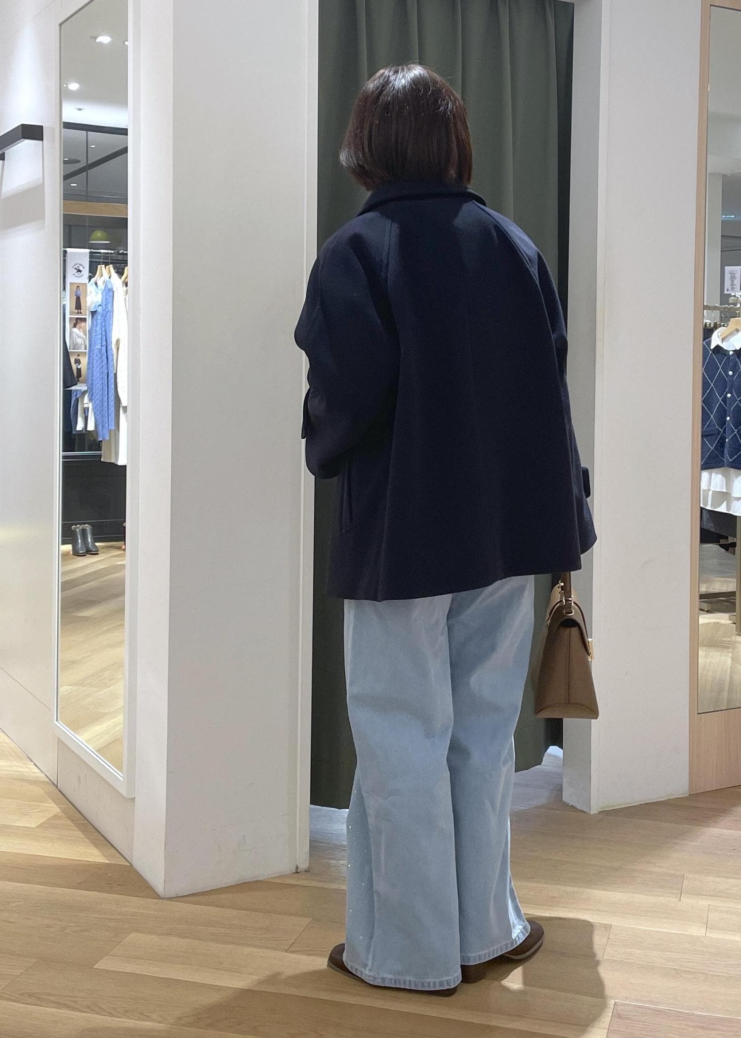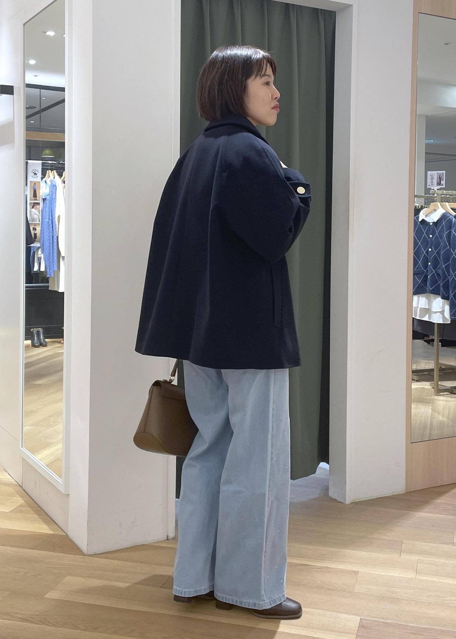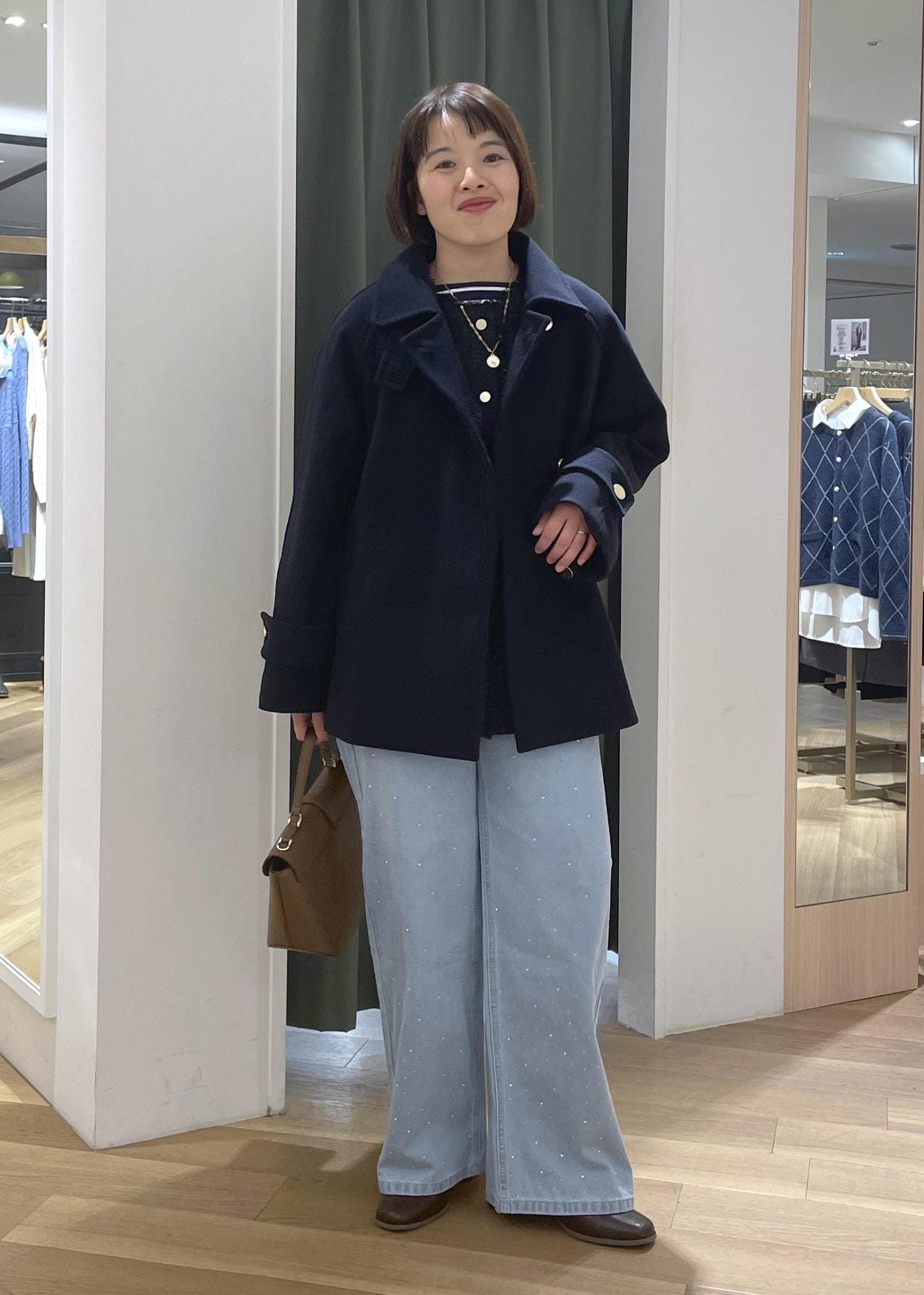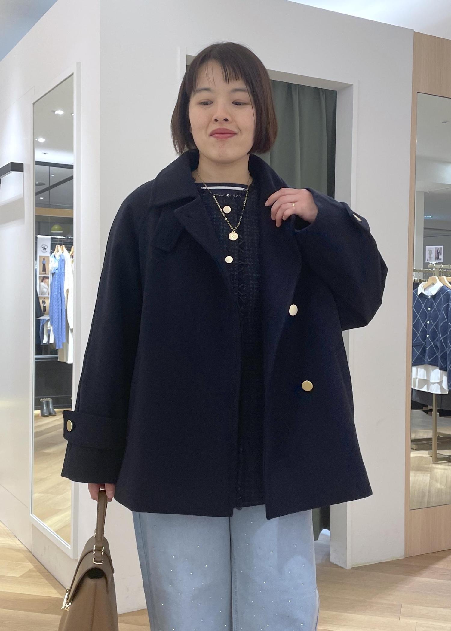 ROPÉ PICNICジャージーメルトンシリーズ 金ボタンミドル丈コート/リンクコーデネイビー / F¥7,692レビュー柔らかく軽い羽織り心地で、とても着やすいアウターです。ゆったりしたサイズ感なので、厚手のニットの上からでも羽織れます。また寒さが厳しい時期はインナーダウンを仕込んで着用するのもおすすめです。着丈はヒップが隠れるくらいの長さで、パンツにもスカートにも合わせやすいです。