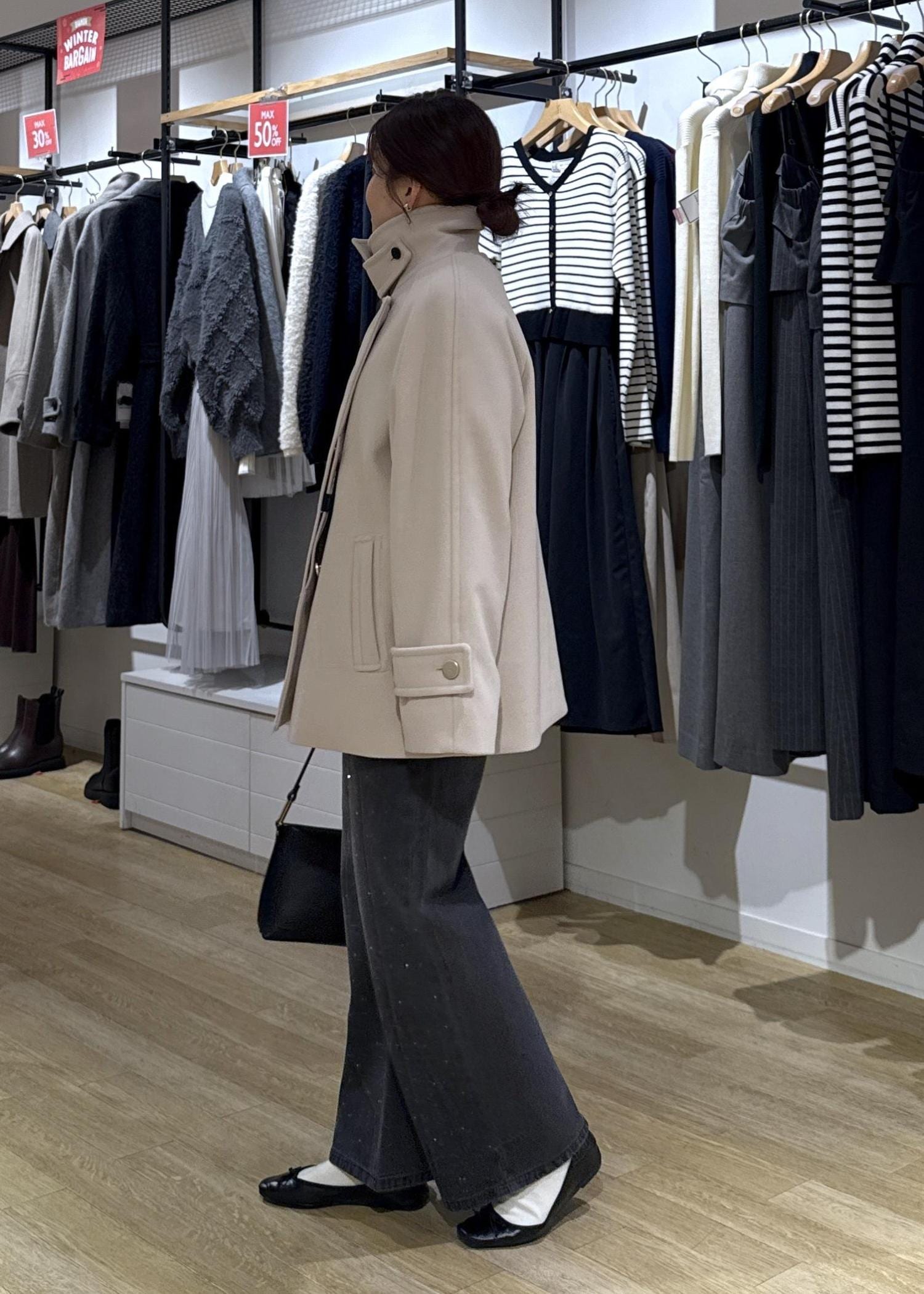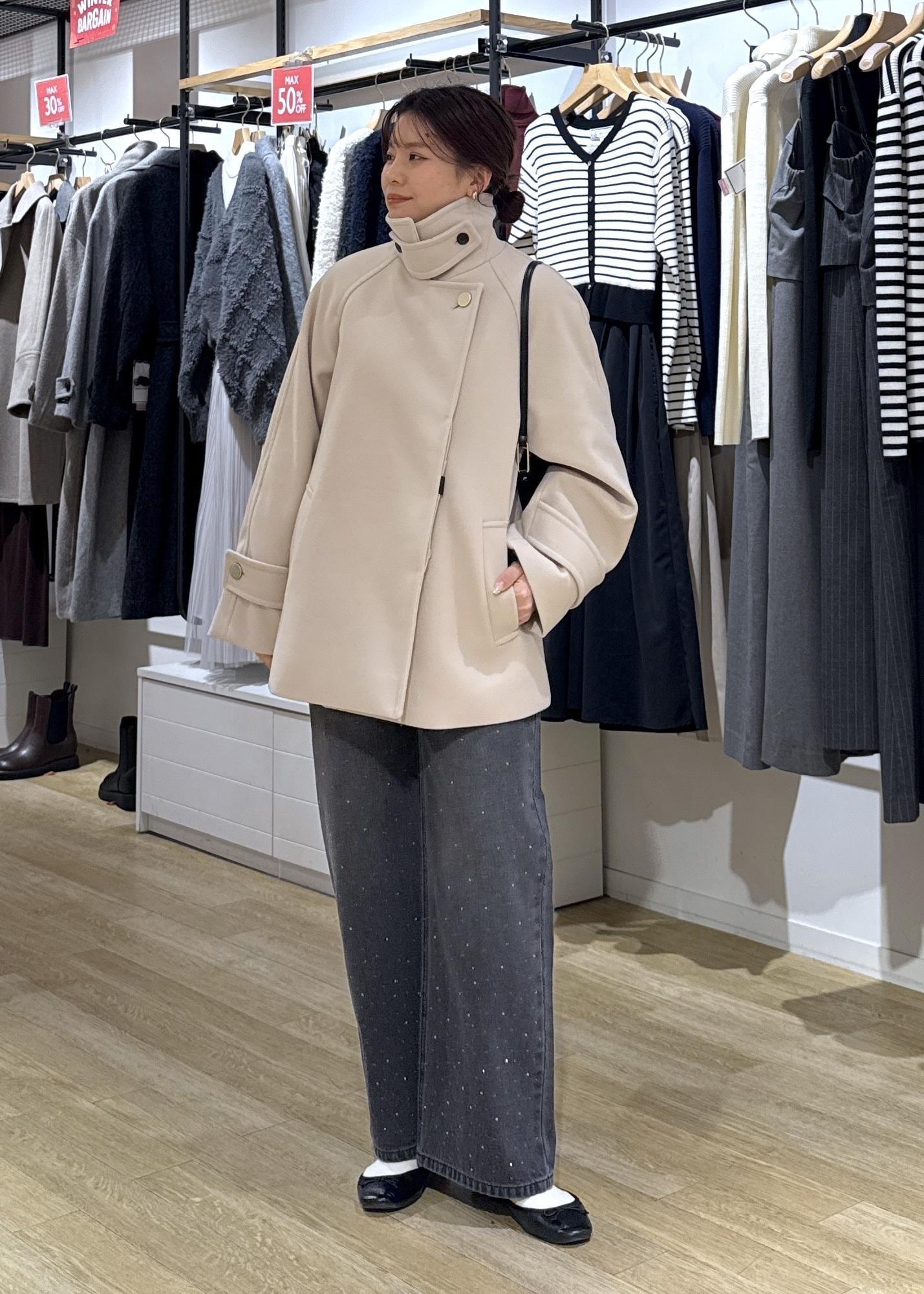 襟元のボタンの止め方で雰囲気変えられるので、普段からお仕事まで幅広く使いやすいデザインです。 -