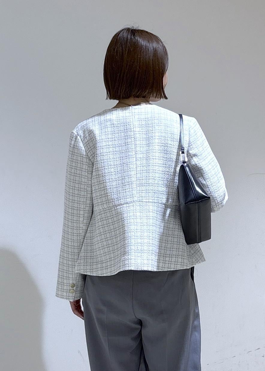予約ROPÉ PICNIC【WEB限定カラー】ツイードフレアジャケット/セレモニー対応・リンクコーデライトグレー / M¥10,989レビュー身幅に程よくゆとりがあり薄手ニットを重ねても窮屈感なく着用することができました。着丈は腰にかかるほどの長さです。ペプラム切替はウエスト位置の高さでした。さりげない切替が甘さを抑えて上品さのあるシルエットです。