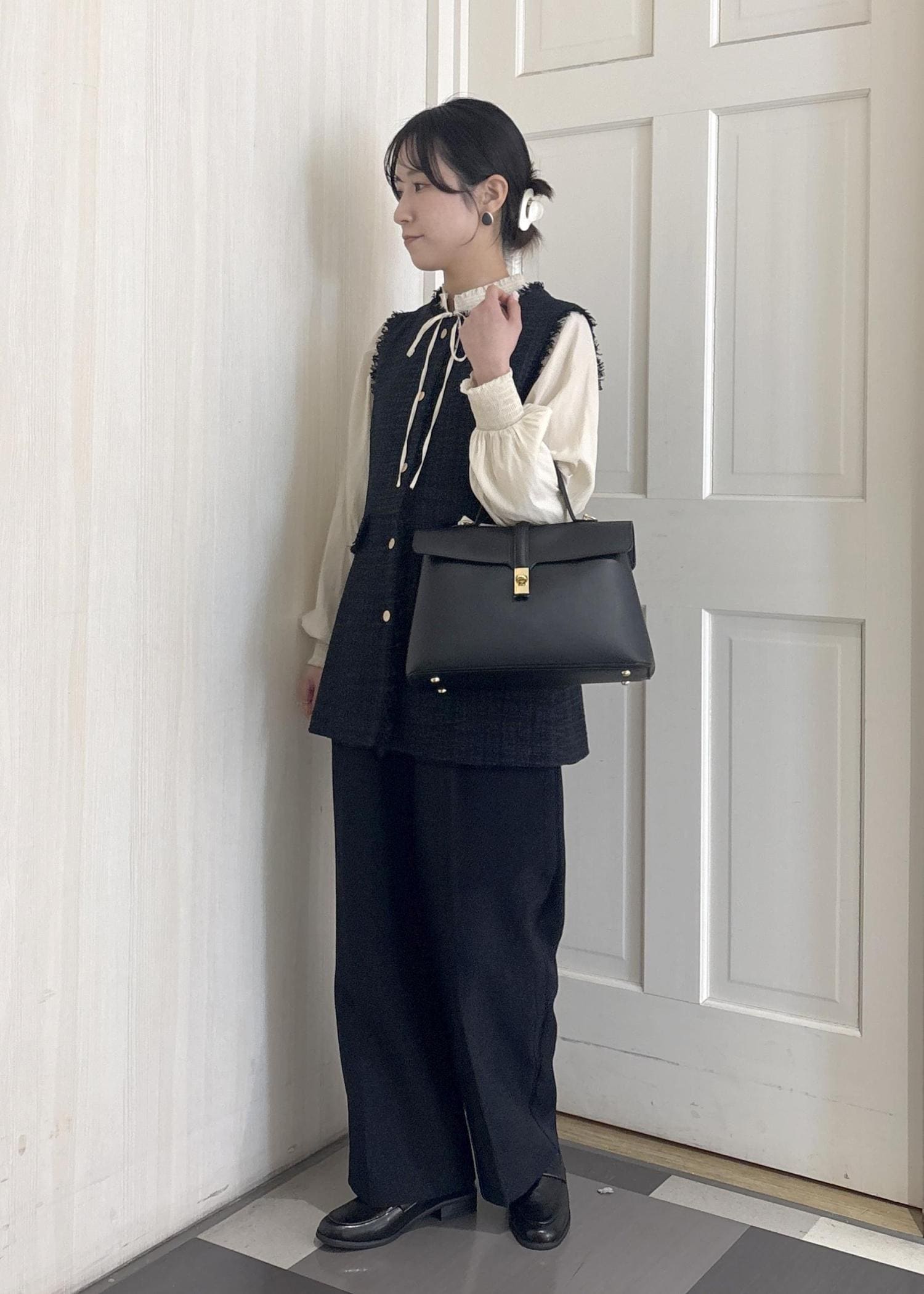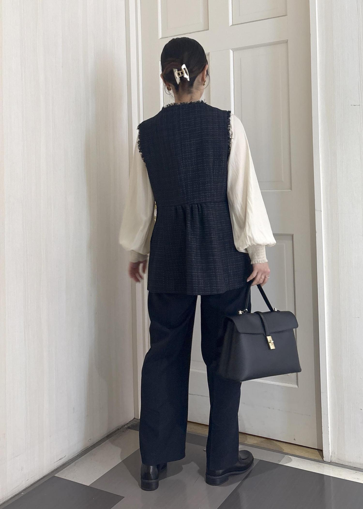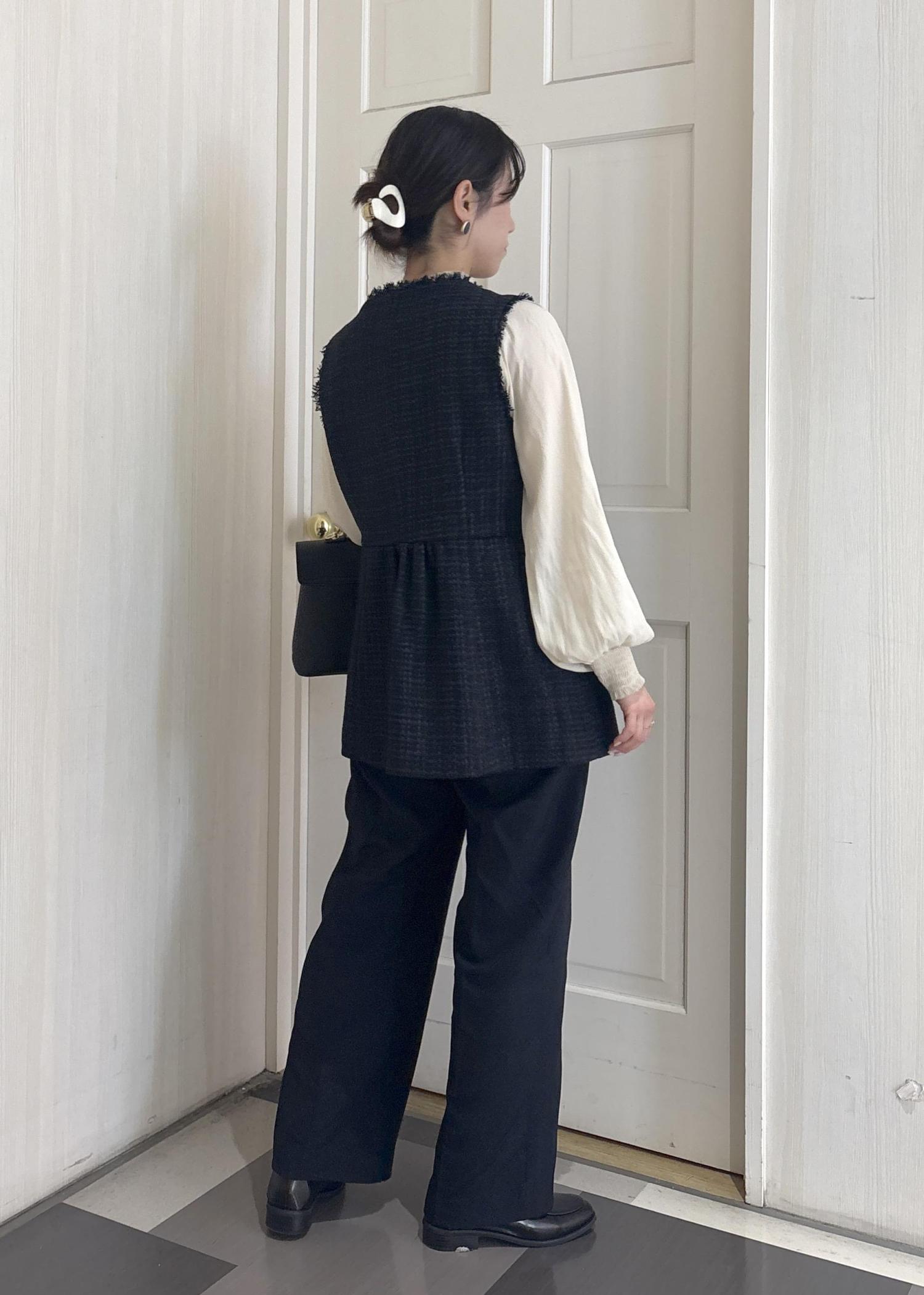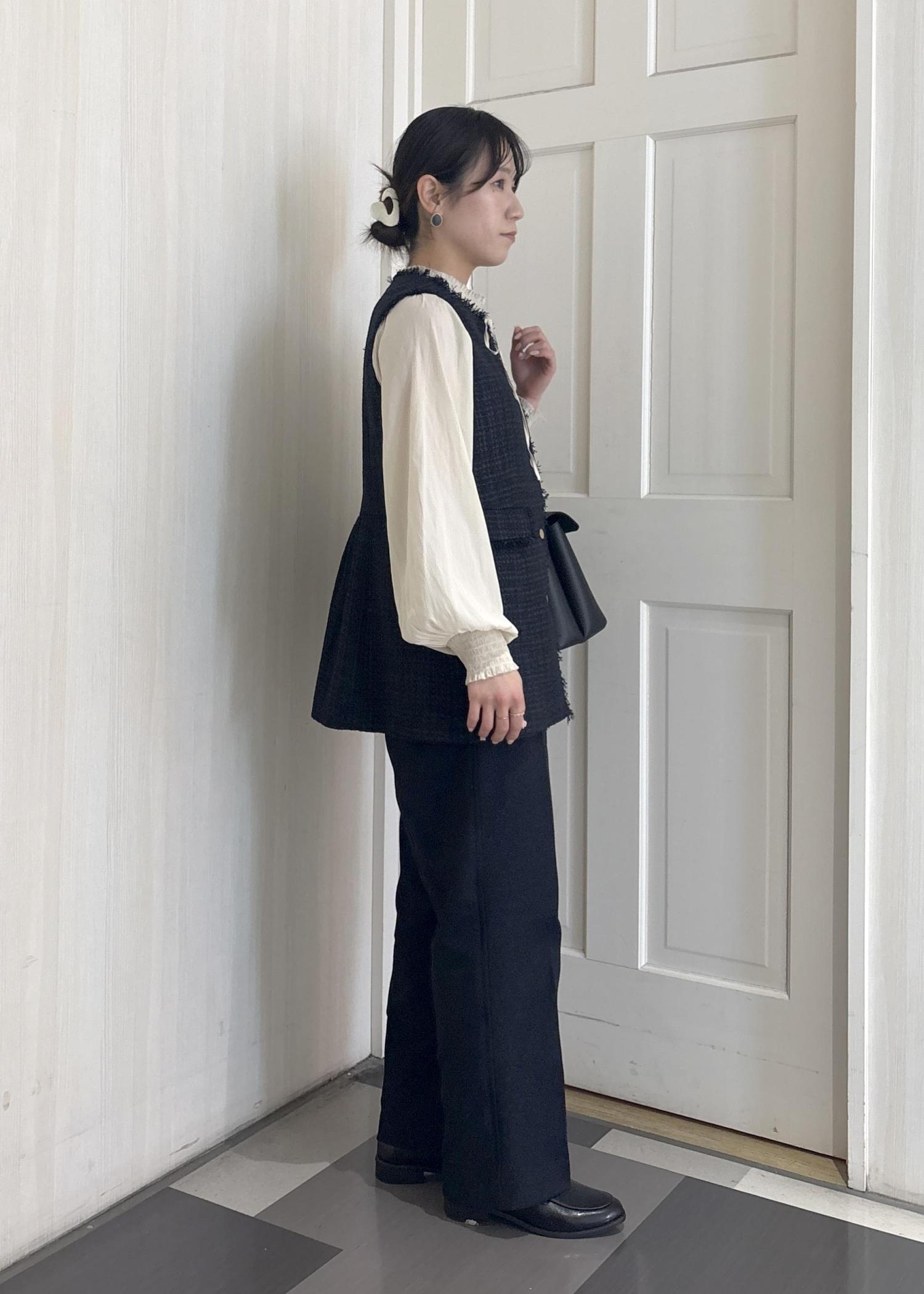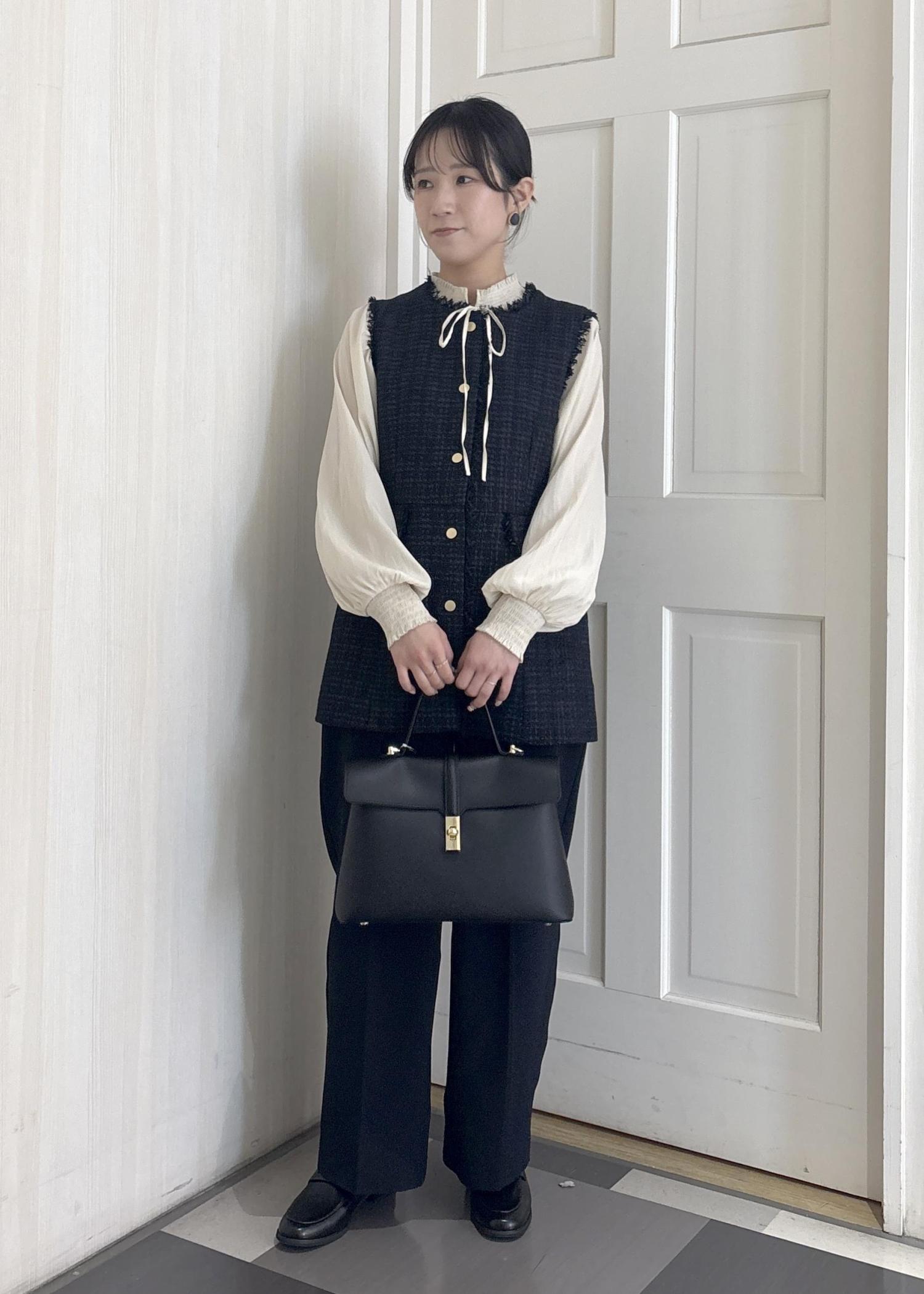 白の方がベストのネイビーが引き立ちますが、アイボリーも柔らかい印象になって可愛いです☺︎