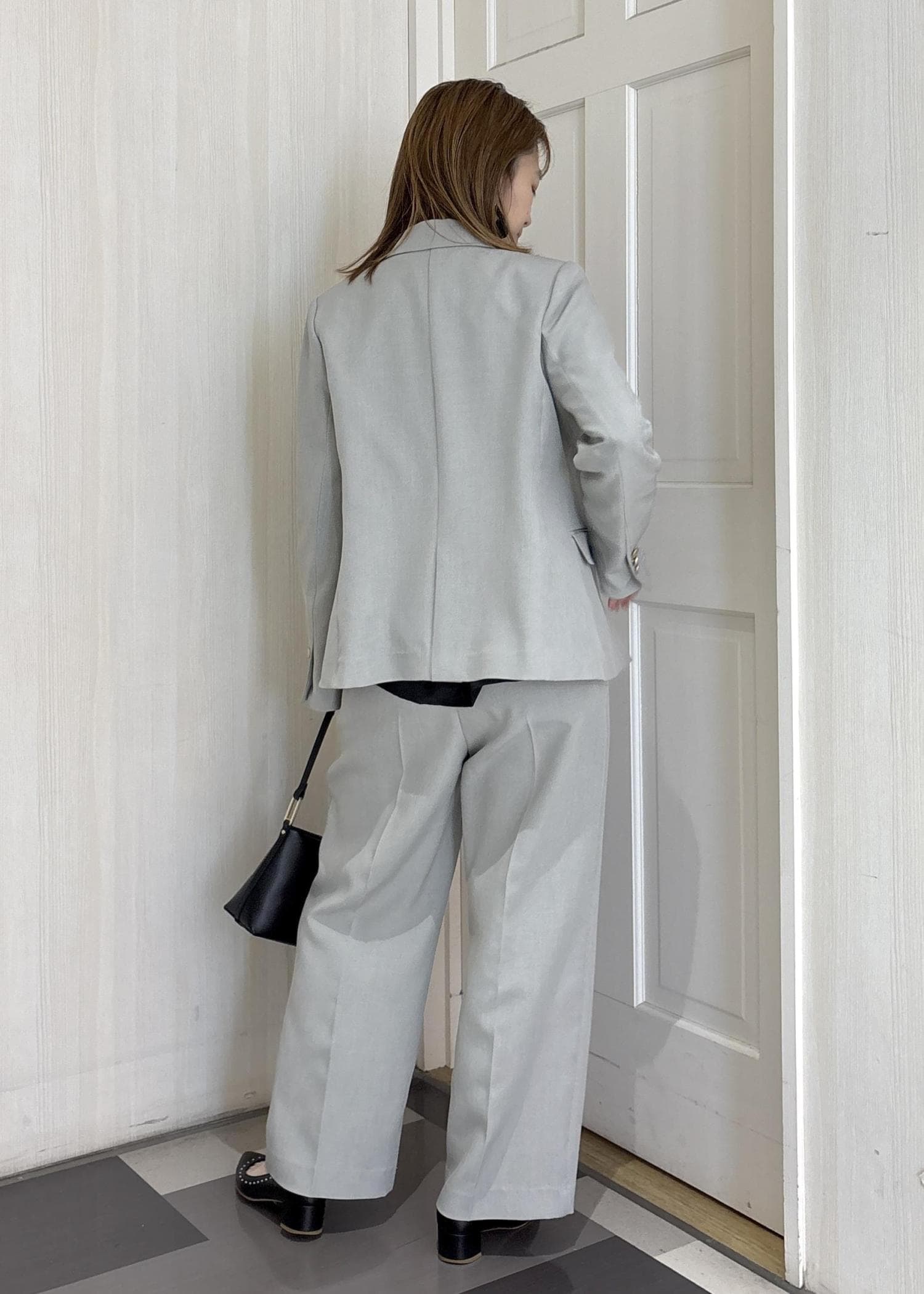 素材感は、少しシャリ感のある麻みたいな肌触りも垣間見える生地なので、春から夏まで使いやすい感じです◎