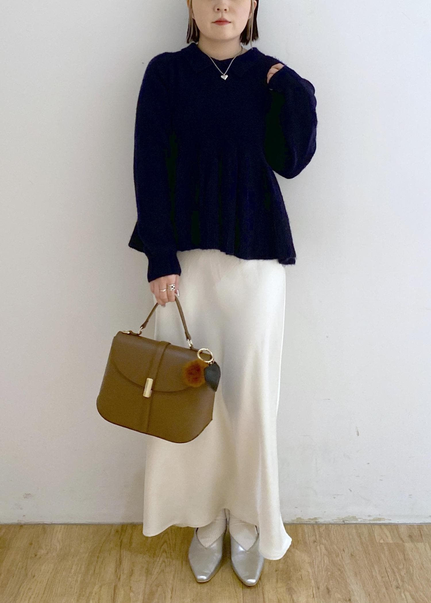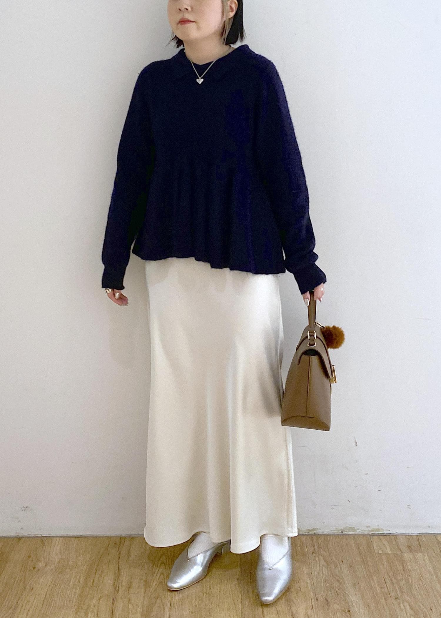 サテンスカートを合わせたキレイめスタイルです☺︎