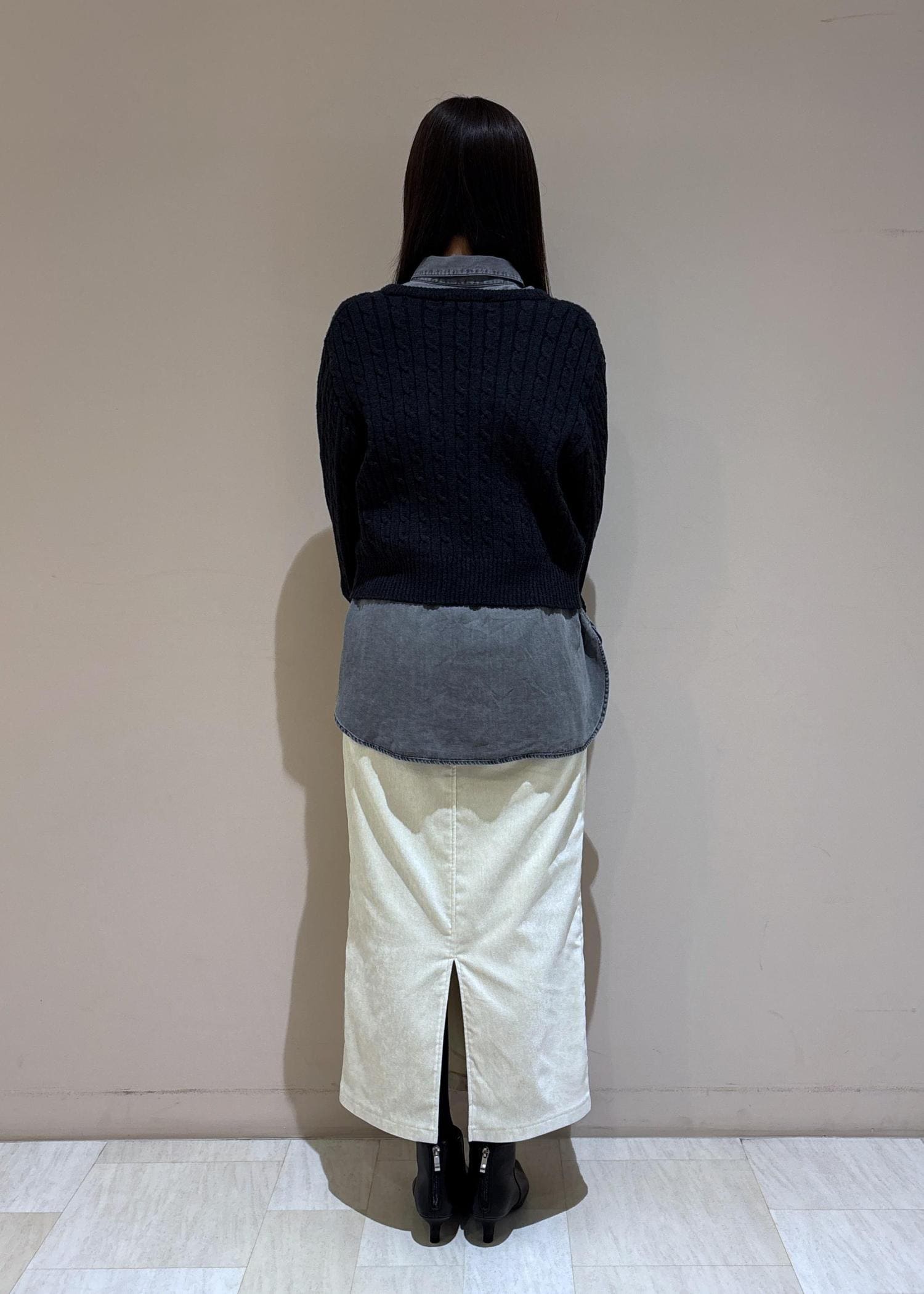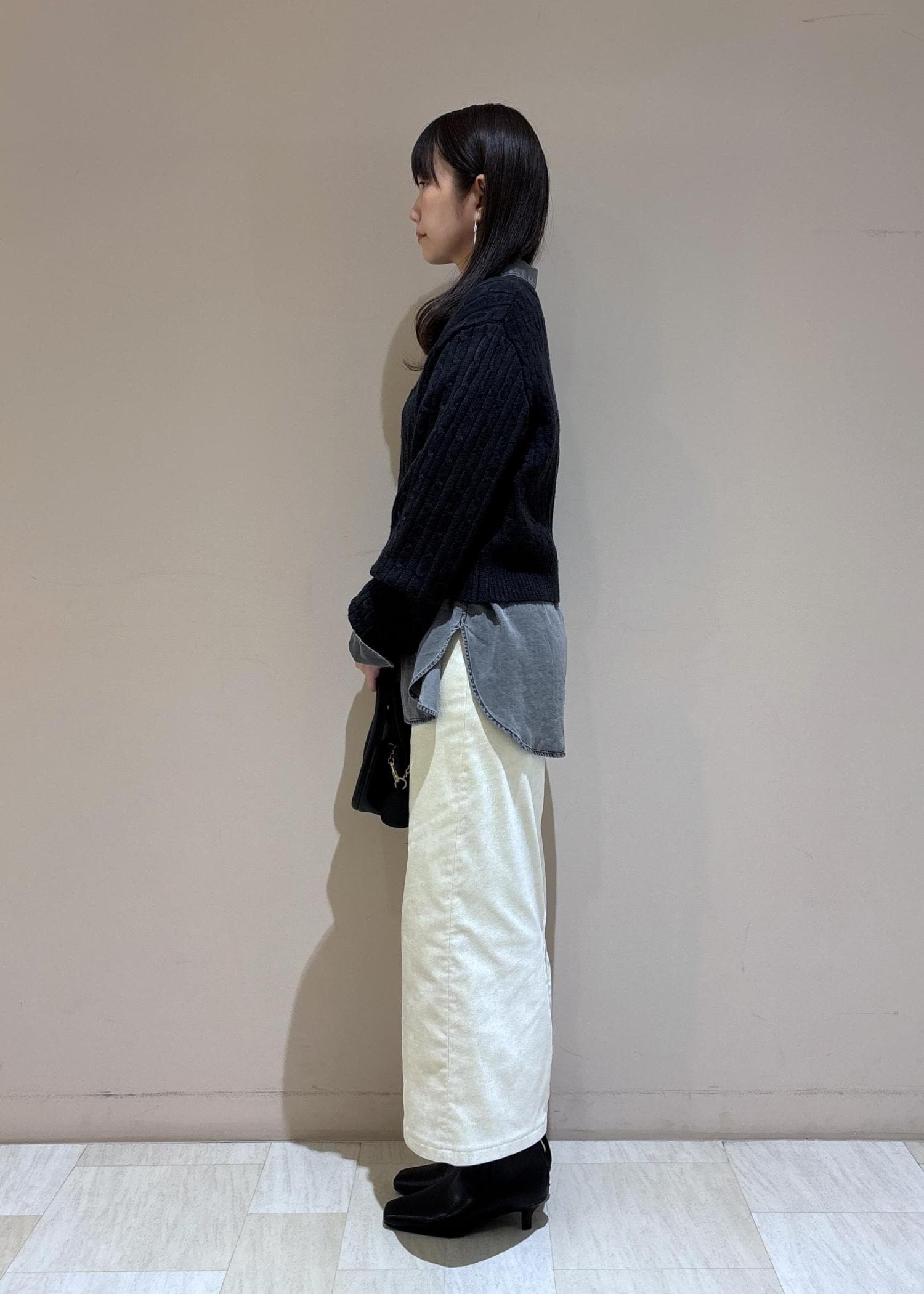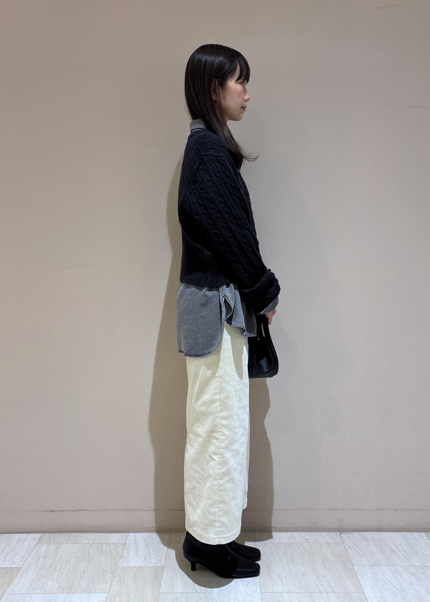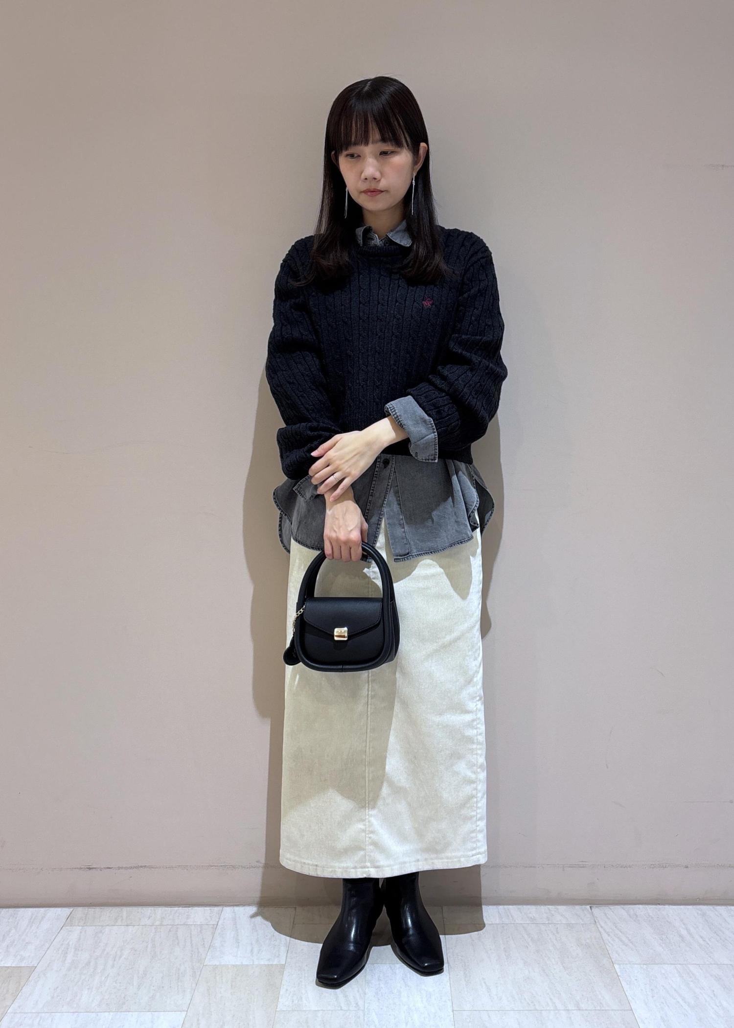 アイラインスカートと合わせて女性らしさのあるコーディネートにしてみました。