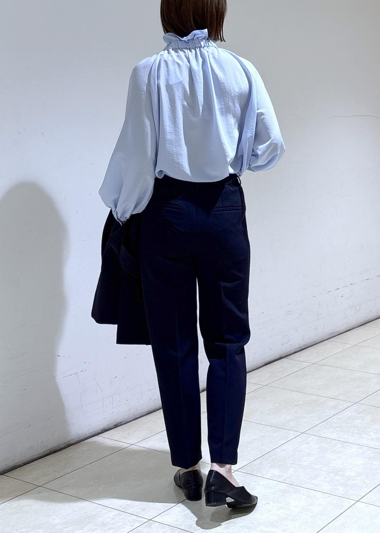 ストッキング合わせだとややゆとりがありましたが踵が抜けてしまうことはなかったので、普段履いてるサイズ感で履くことができました。 -