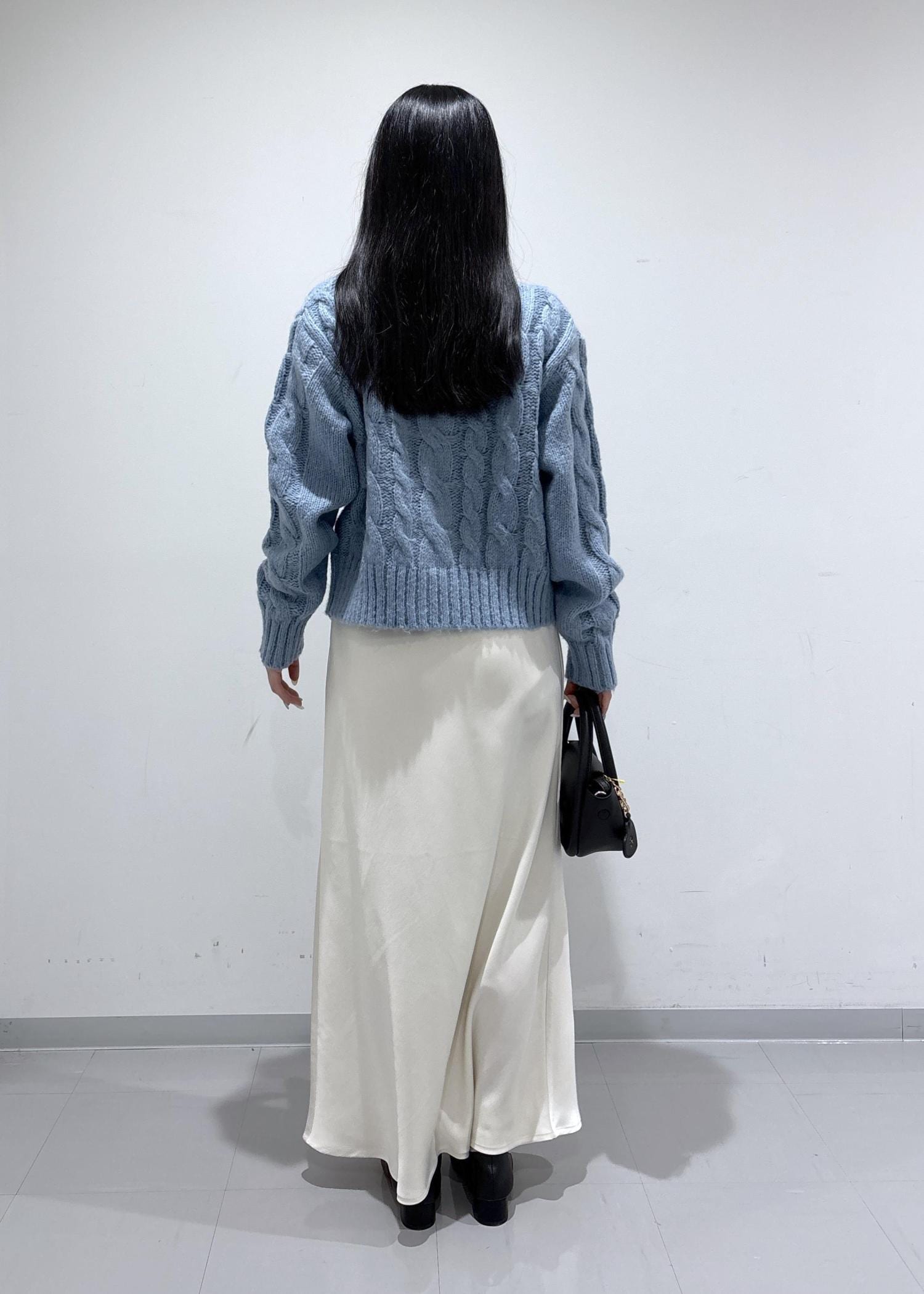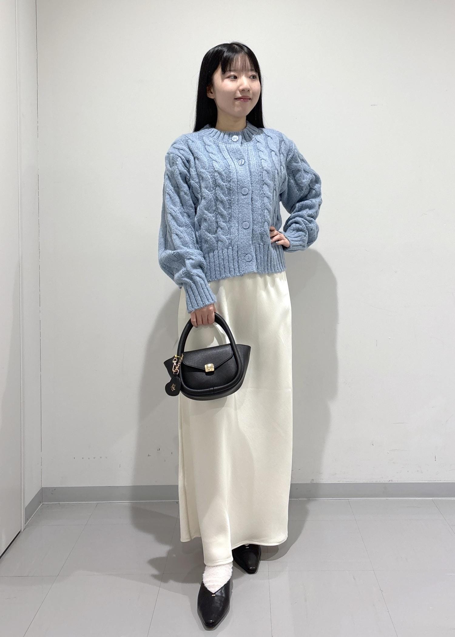 ROPÉ PICNICケーブルニットカーディガンブルー / F¥3,293レビューサイズ感は程よくゆとりがあり、着丈は腰にかかるくらいです。