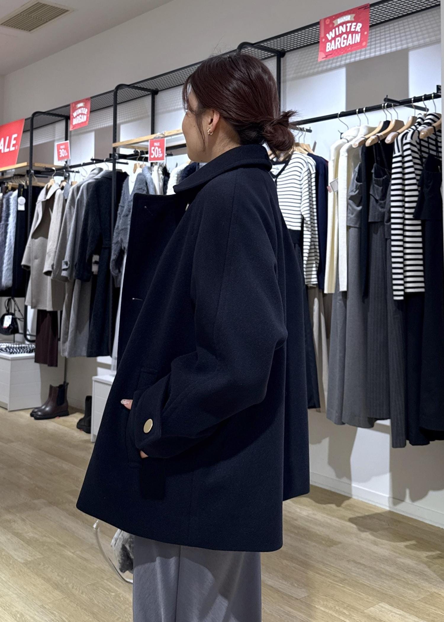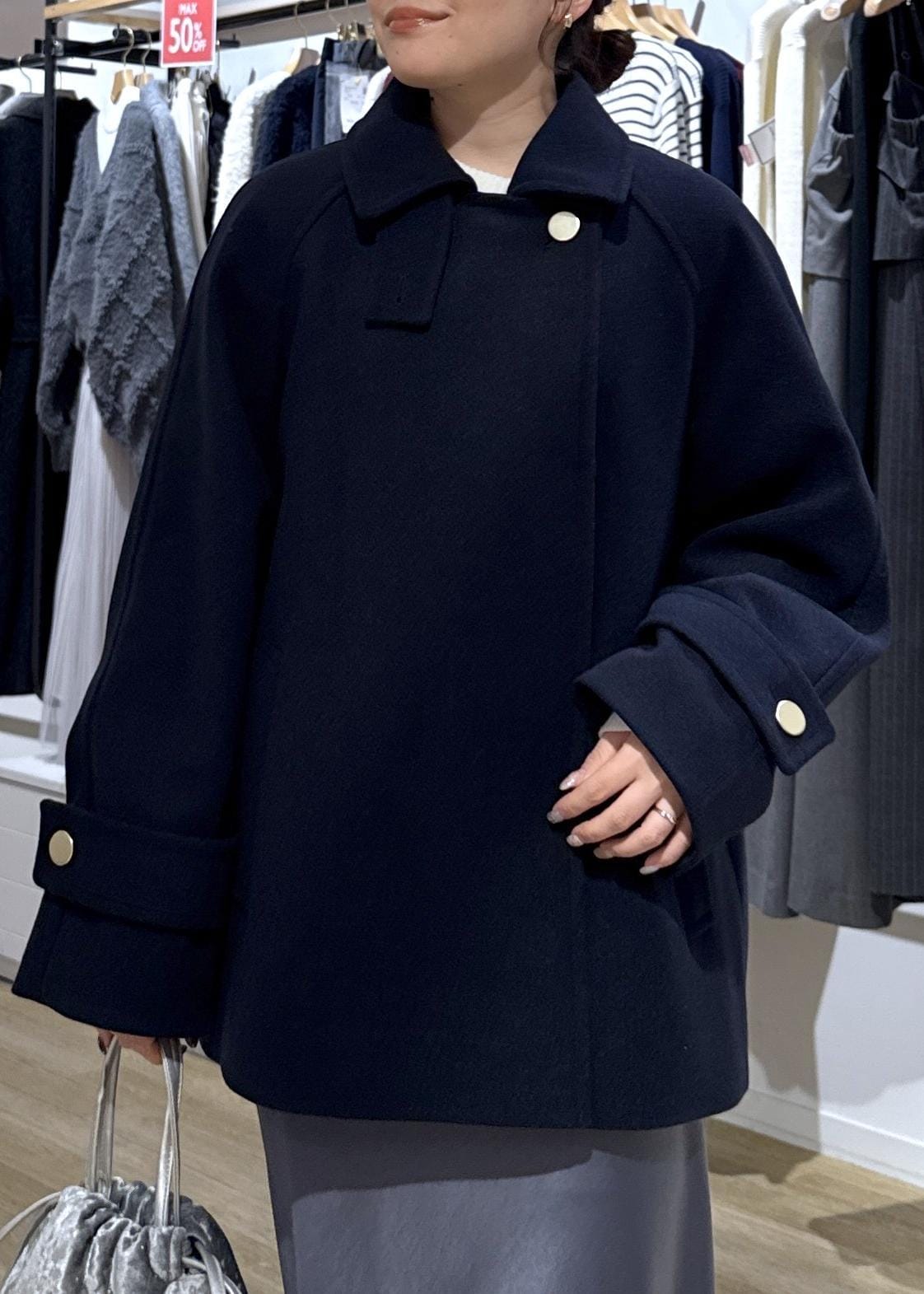襟元のボタンの止め方で雰囲気変えられるので、普段からお仕事まで幅広く使いやすいデザインです。 -