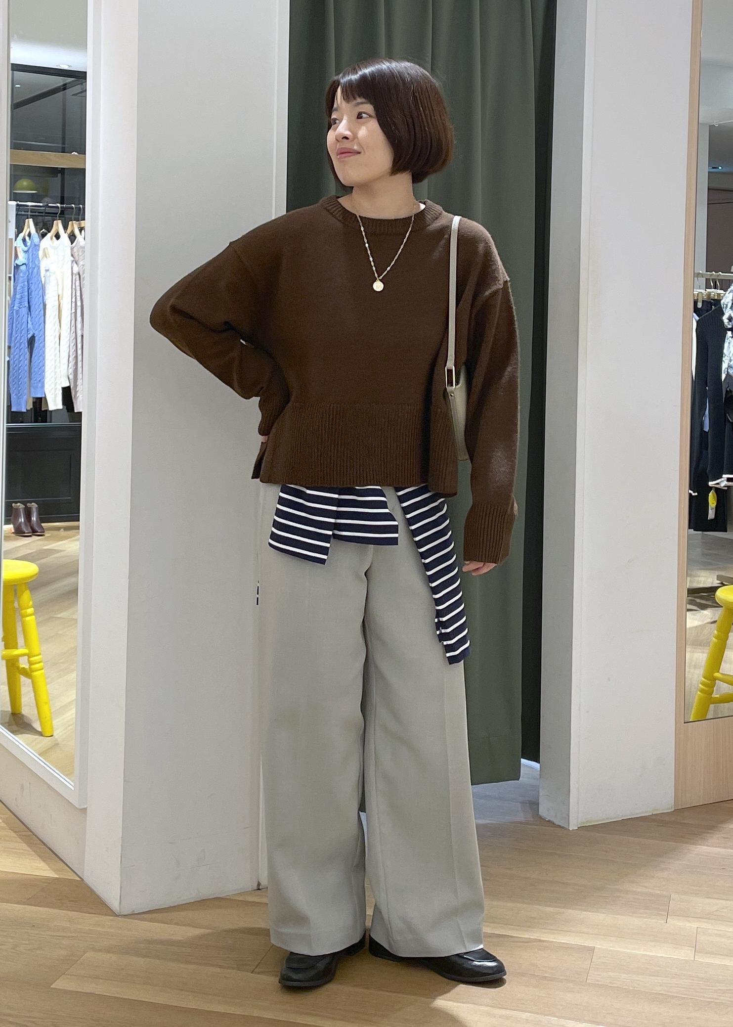ブラウンニットの春カラーパンツコーデ