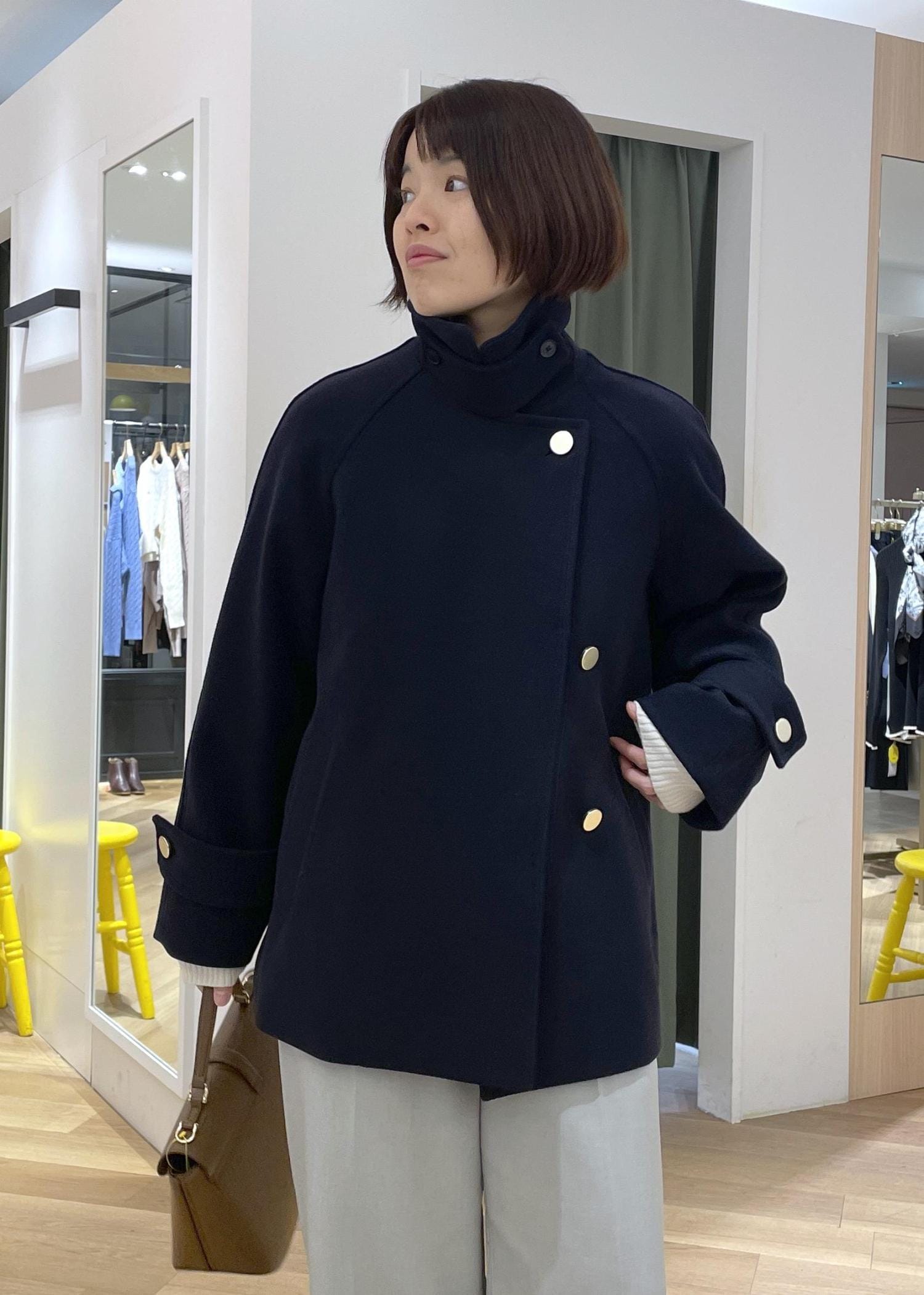 今回はコートをスタンドカラーで着用し、ハンサムに決めつつ温かさもあるコーデに◎