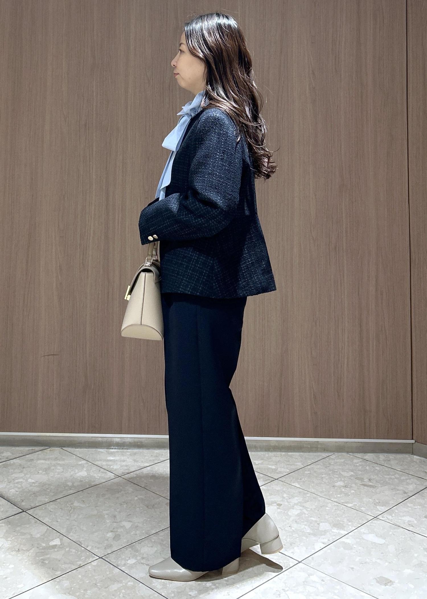 ROPÉ PICNIC【WEB限定カラー】ツイードフレアジャケット/セレモニー対応・リンクコーデネイビー / M¥10,989レビュー袖丈は手の甲がすっぽり隠れる長さで、着丈は骨盤かかるくらいです。裾のデザインが少しペプラムっぽくなっているので、腰回りはカバーしてくれます。