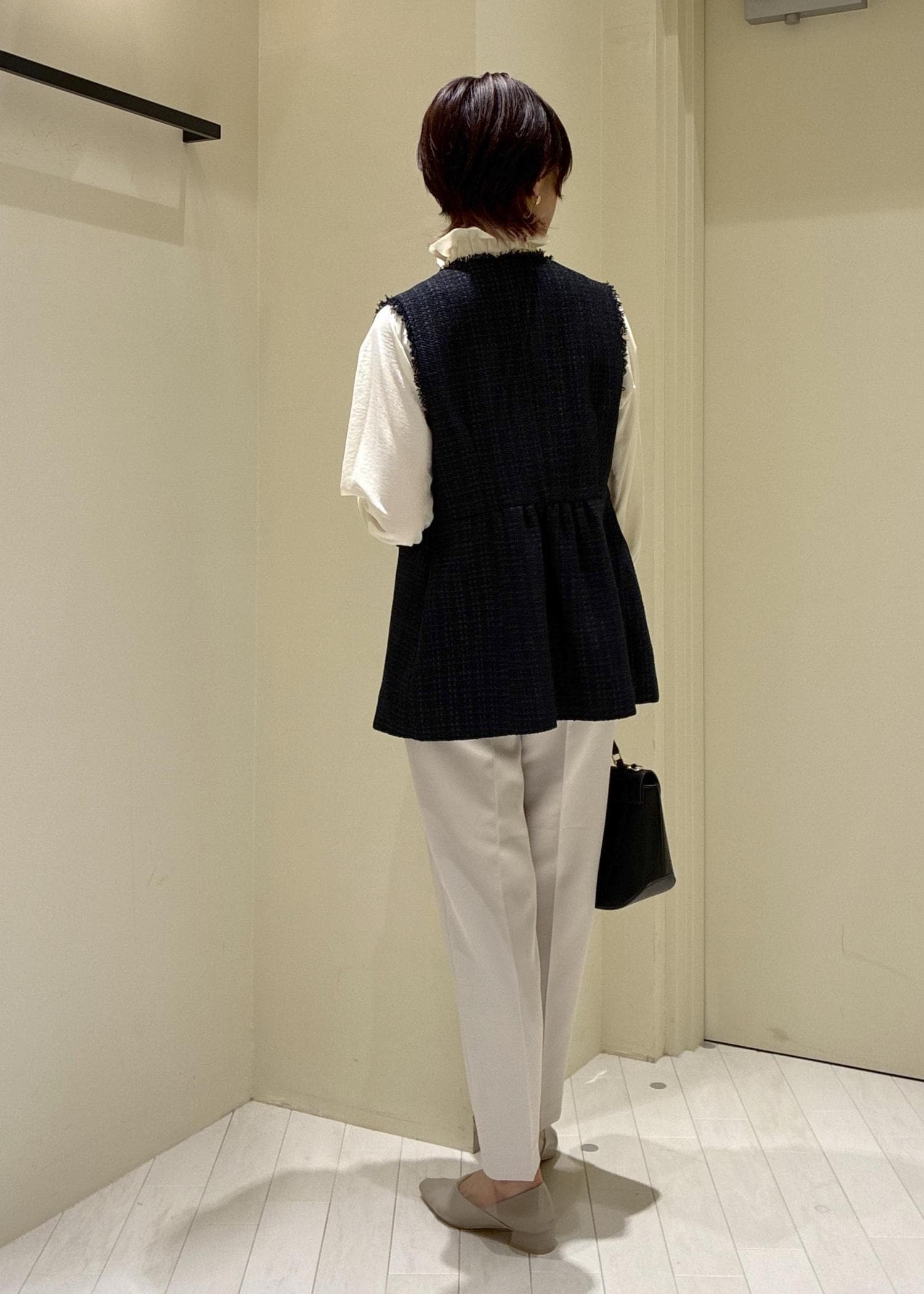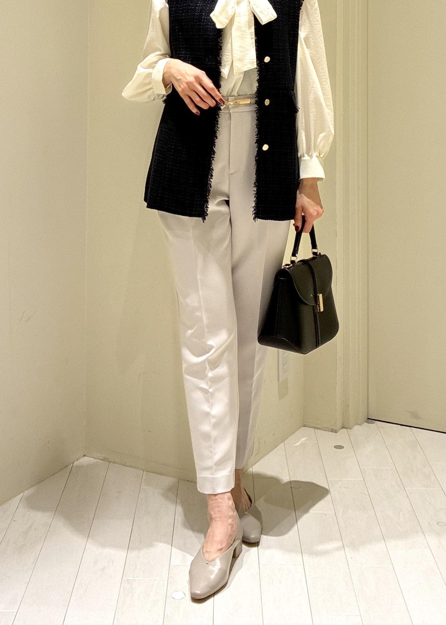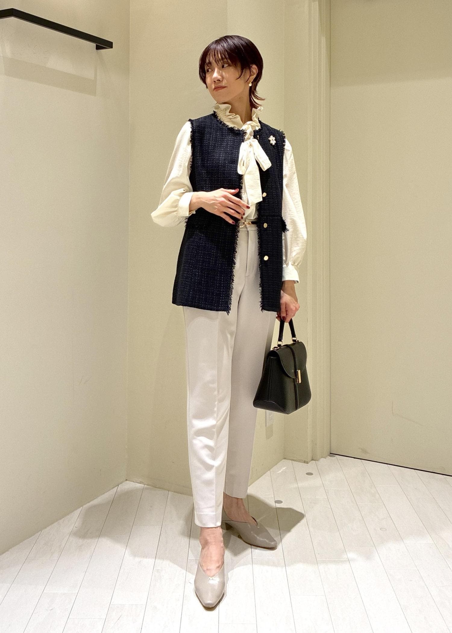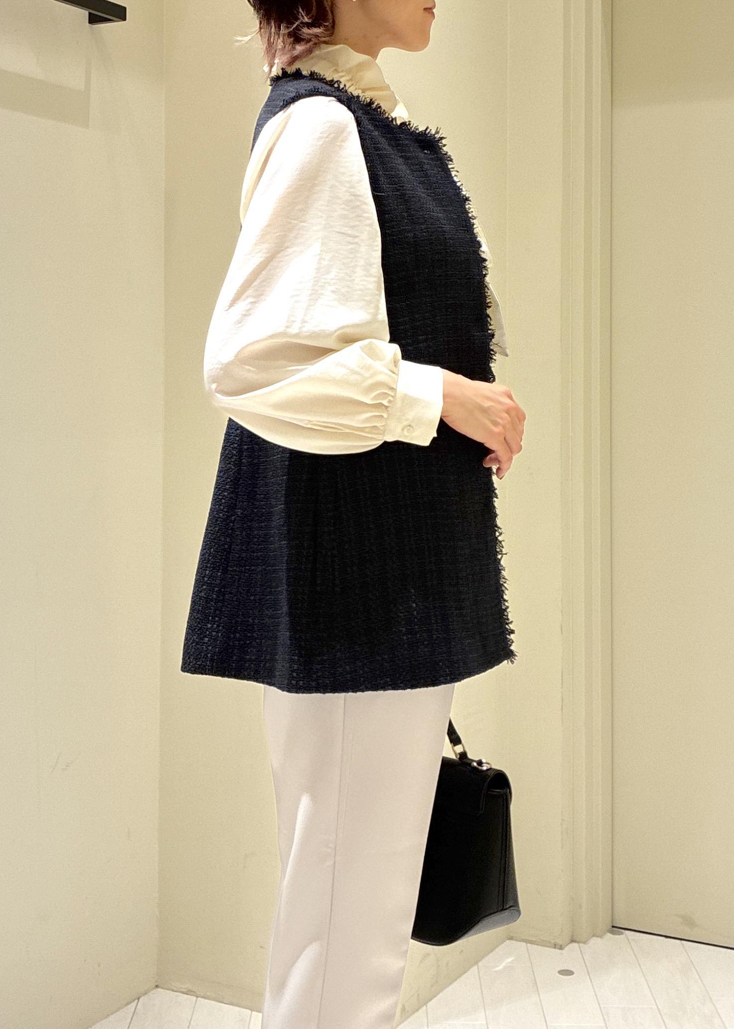 ボウタイリボンは絞りを調整するとネックの開きもアレンジ出来て、着こなしを楽しめます。