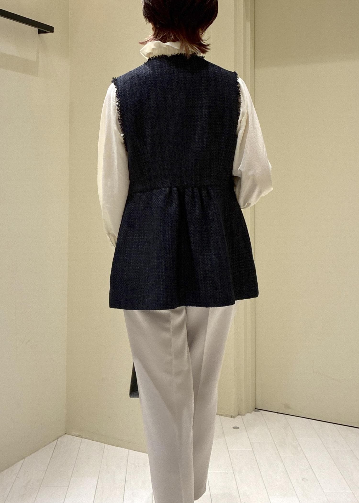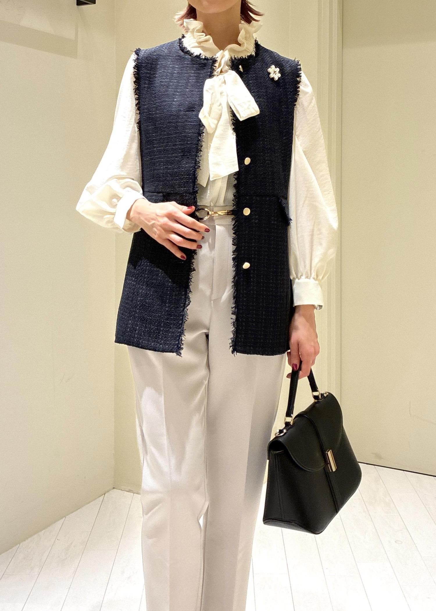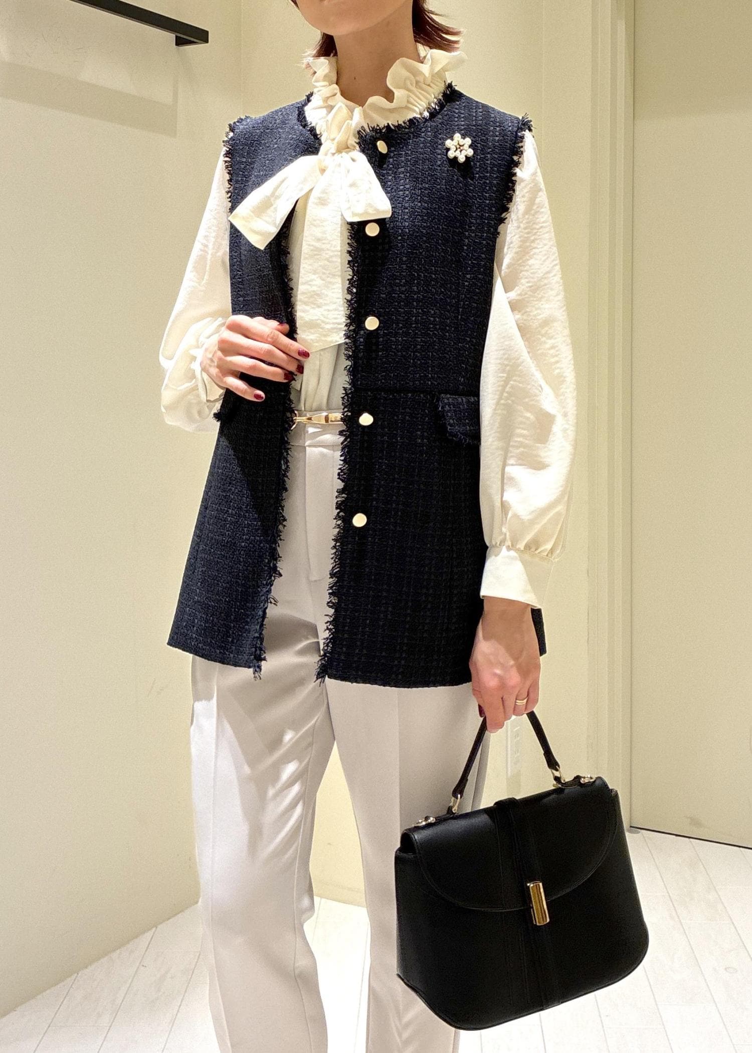 ROPÉ PICNIC【WEB限定カラー】ツイード金ボタンジレベスト/セレモニー対応・リンクコーデネイビー / F¥8,998レビュー一枚で華やかさがUPするツイードジレベスト。