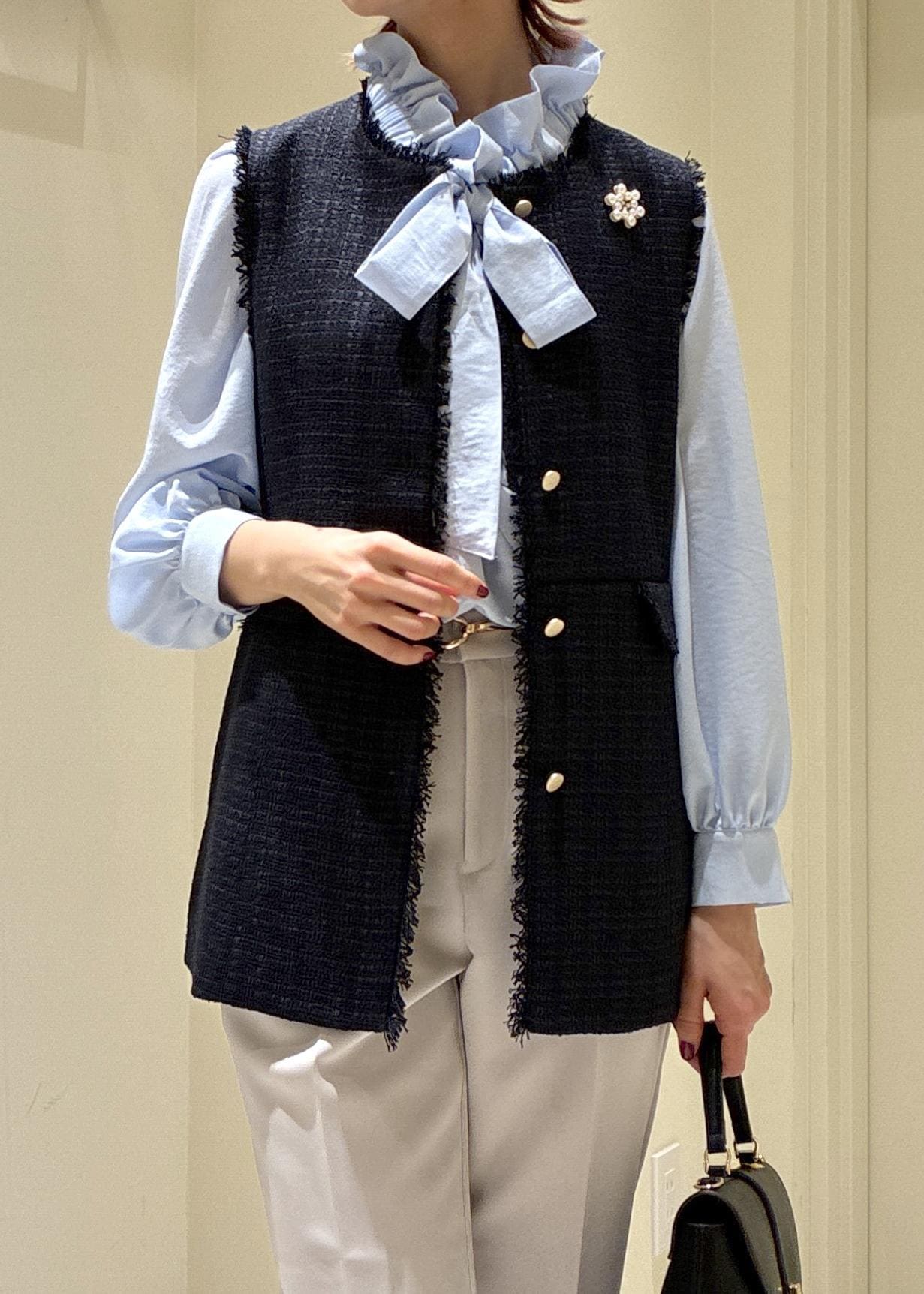 ROPÉ PICNIC【WEB限定カラー】ツイード金ボタンジレベスト/セレモニー対応・リンクコーデネイビー / F¥8,998レビュー一枚で華やかさがUPするツイードジレベスト。