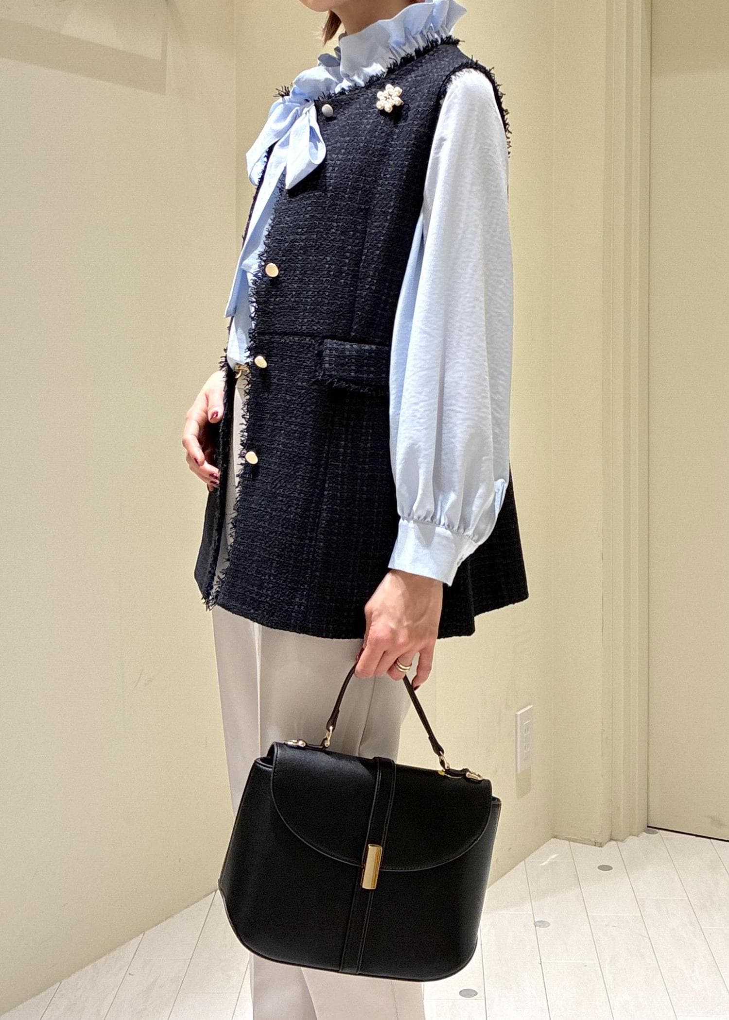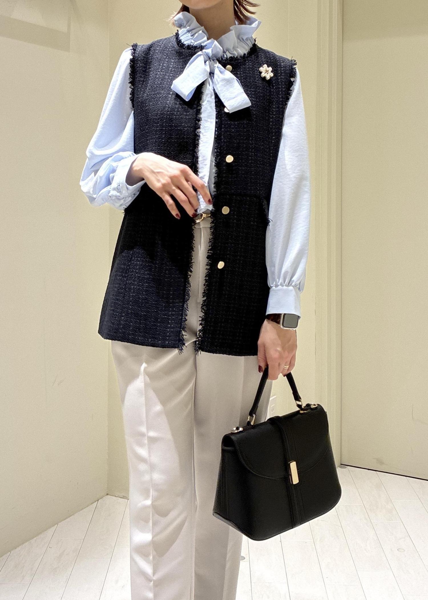 ボウタイリボンは絞りを調整するとネックの開きもアレンジ出来て、着こなしを楽しめます。