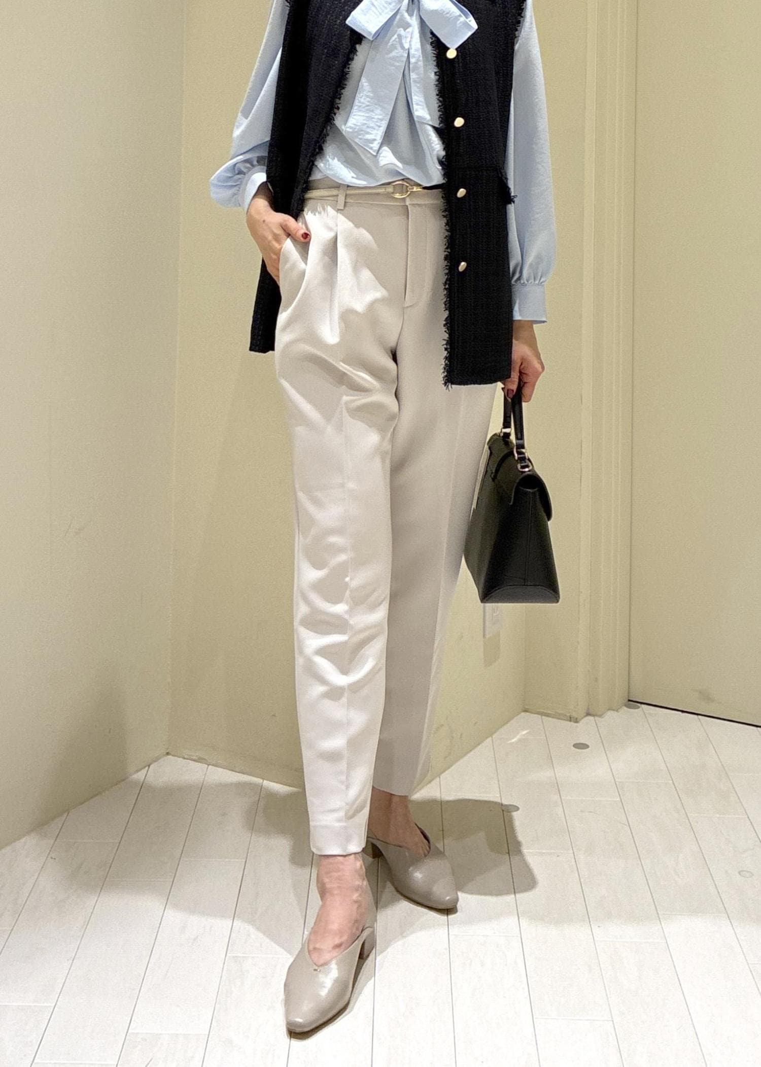 ROPÉ PICNIC【WEB限定カラー】360°ウルトラストレッチ テーパードパンツ/花粉ガード・セットアップ対応グレー系 / L¥5,489レビューウエストタックで下腹・太ももまわりに程よいゆとりが出来、ボディーラインをカバー。センタープレスで縦ラインを強調しスタイルアップ効果も抜群です。