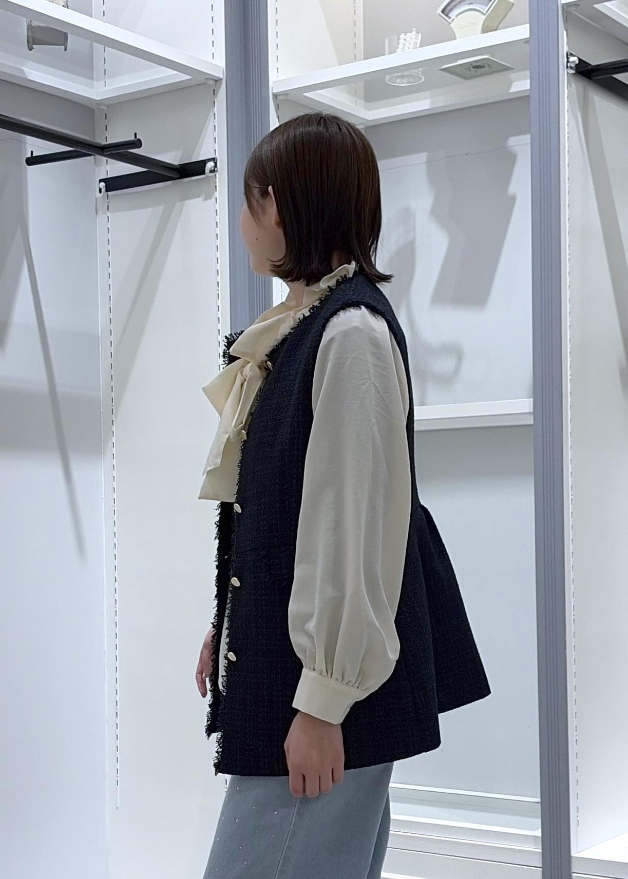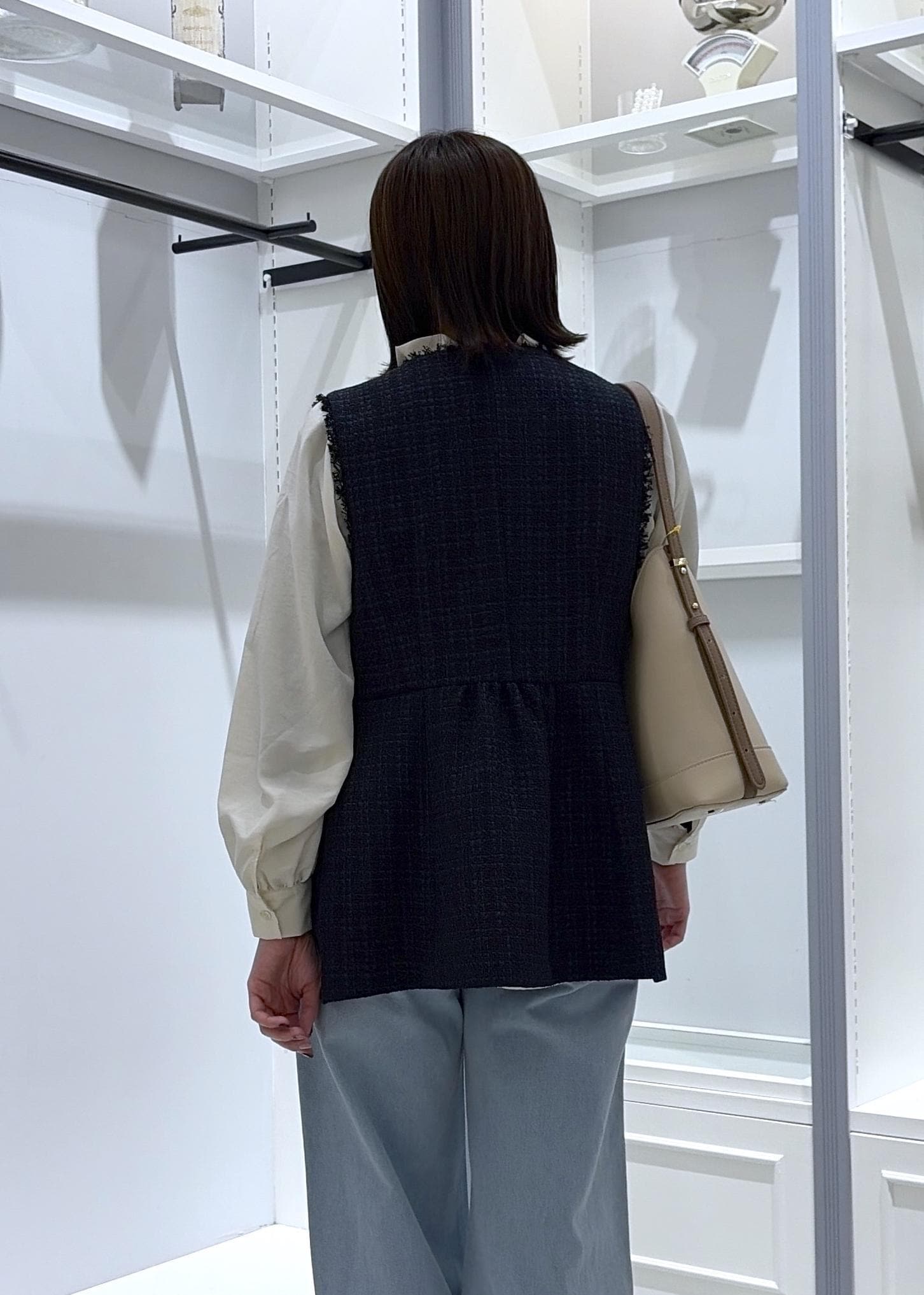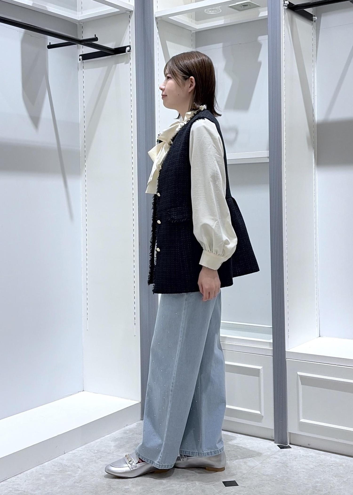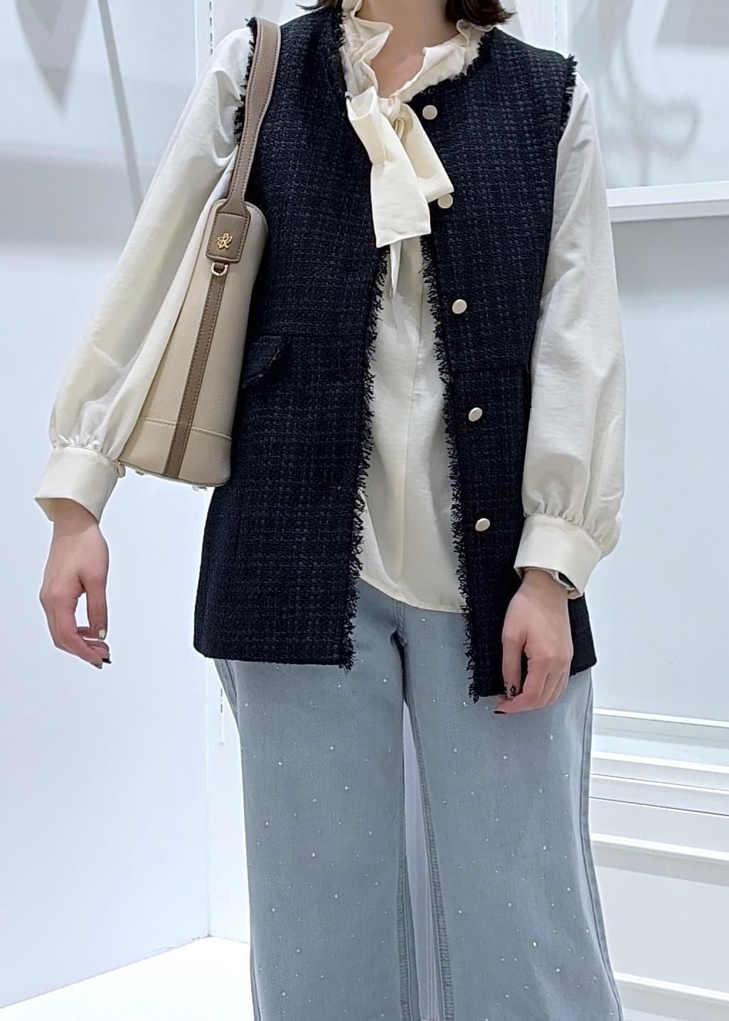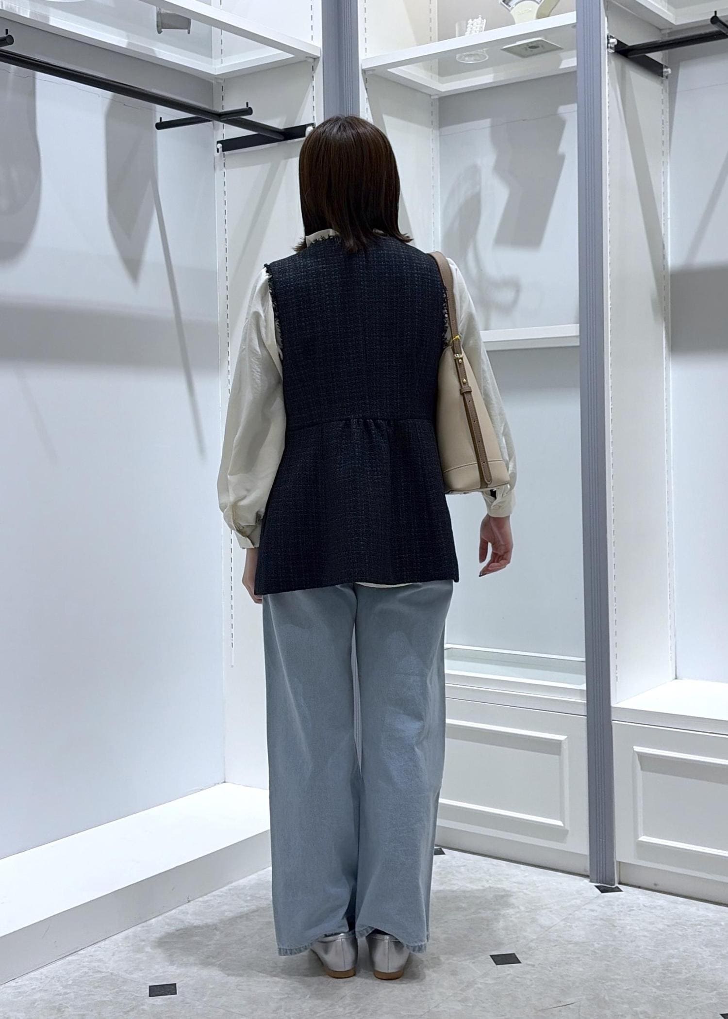 今回は、ツイードジレ×フリルブラウスで、キレイみえ大人カジュアルコーデを組みました♩