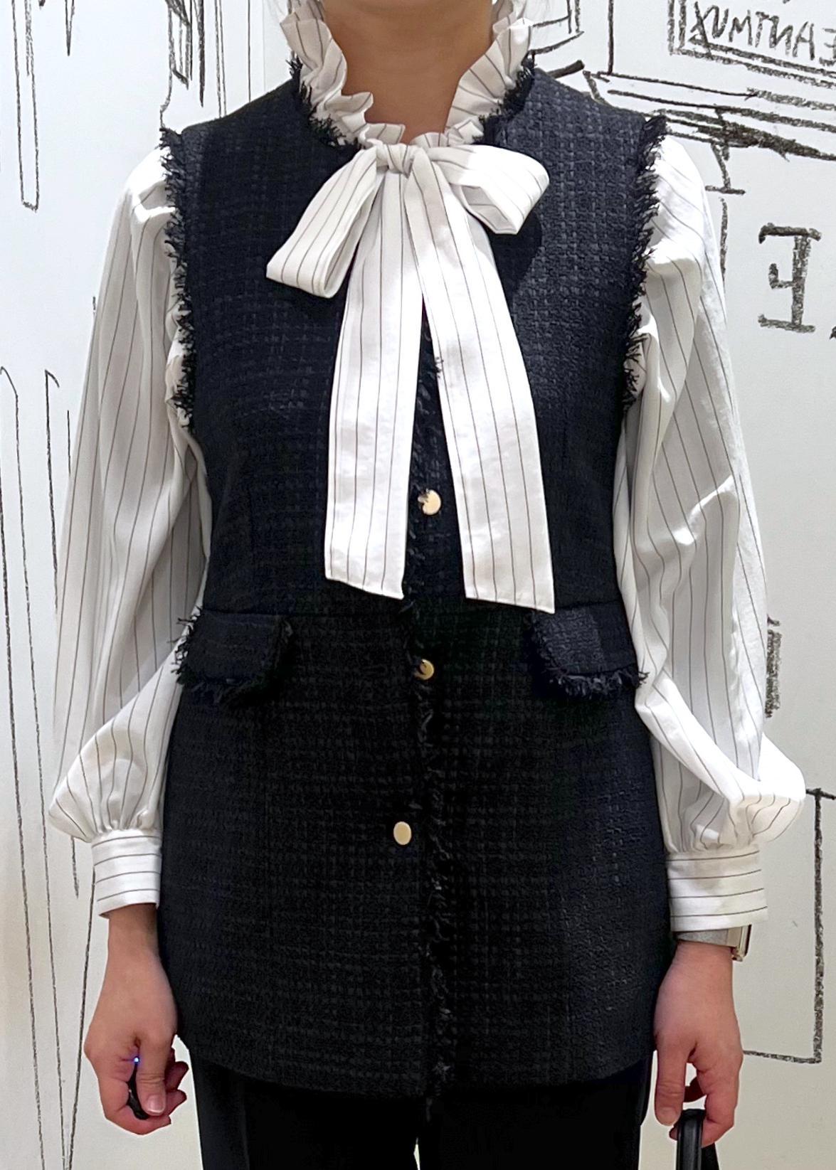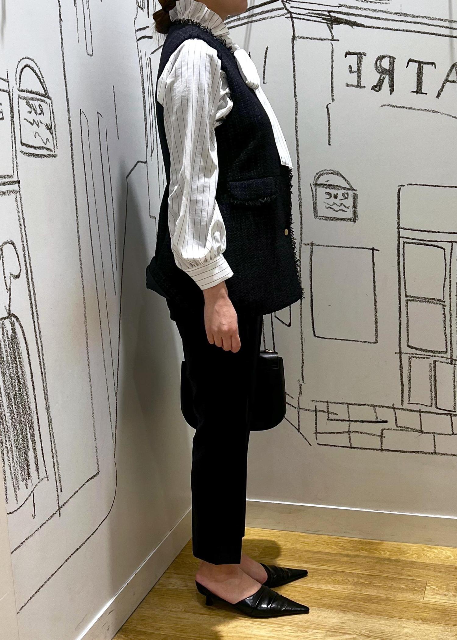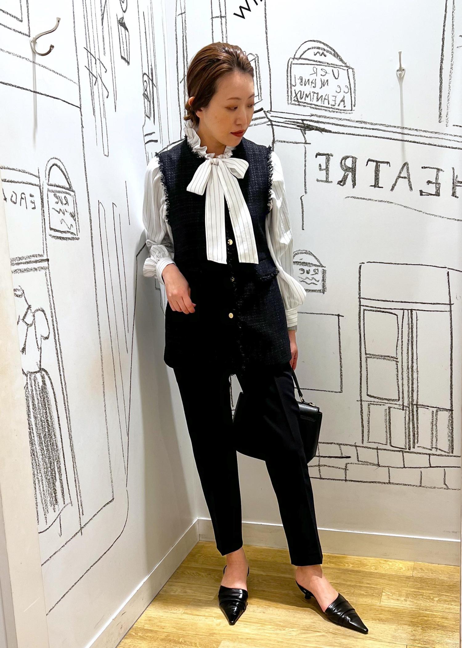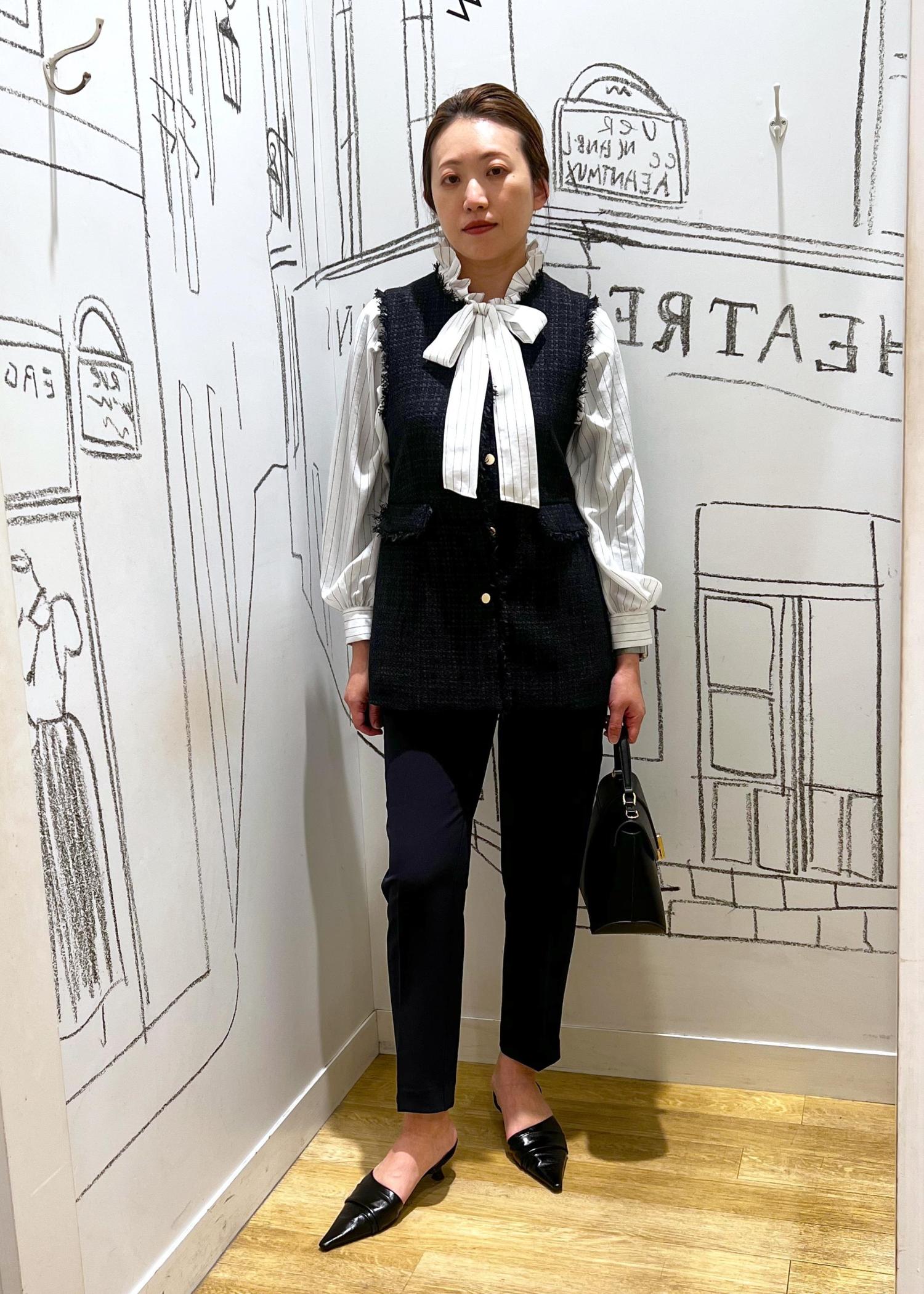 ROPÉ PICNIC【WEB限定カラー】ツイード金ボタンジレベスト/セレモニー対応・リンクコーデネイビー / F¥8,998レビューペプラムのデザインが腰回りをカバーしてくれます。