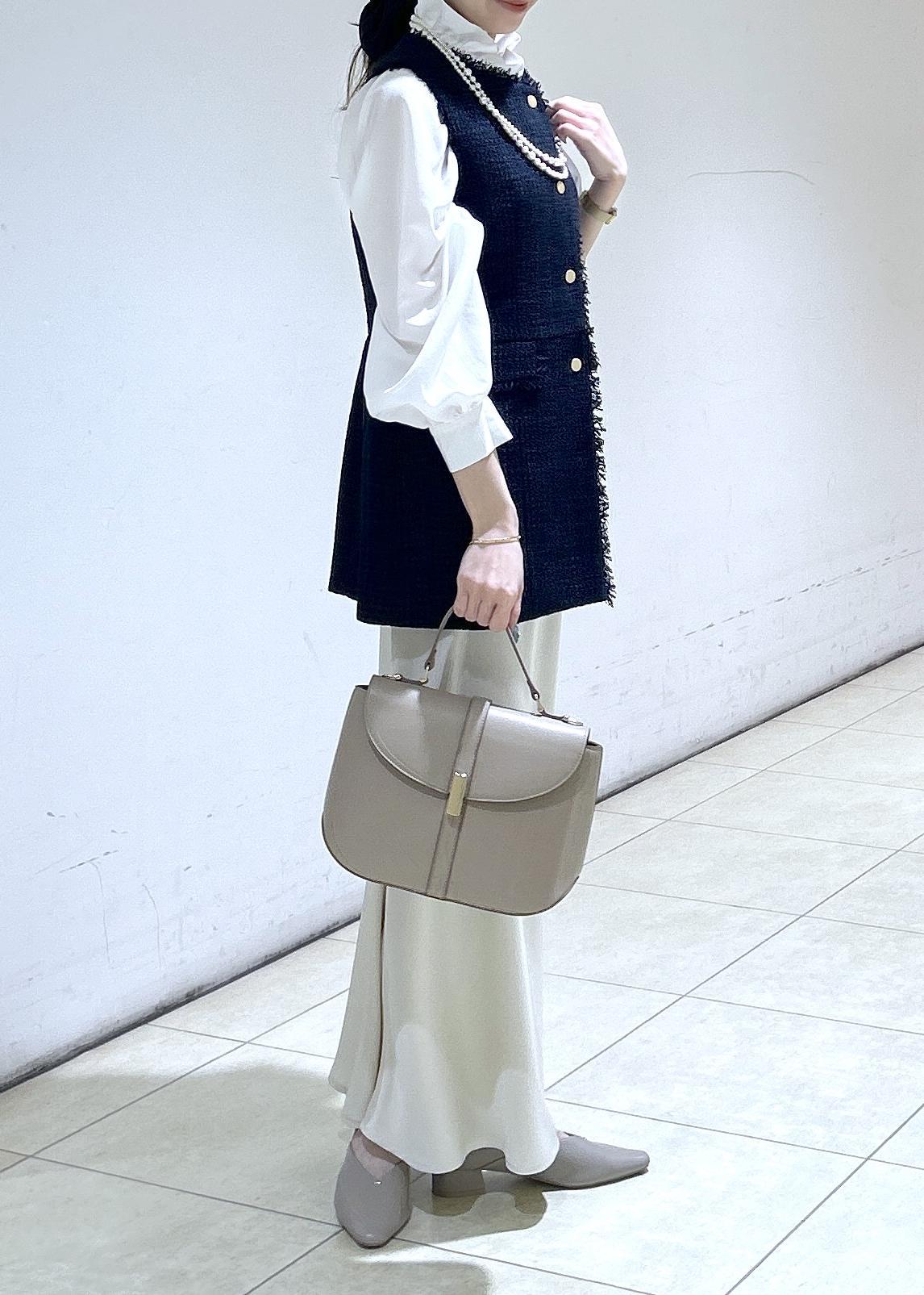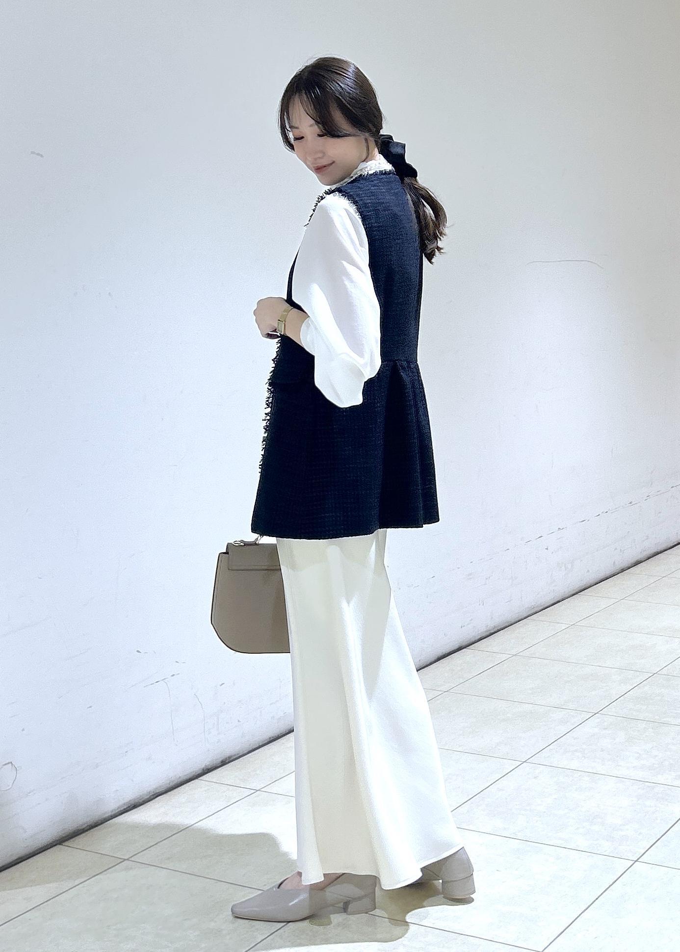 ネイビーのジレにホワイトのサテンスカートで大人なセレモニースタイリングにしました。