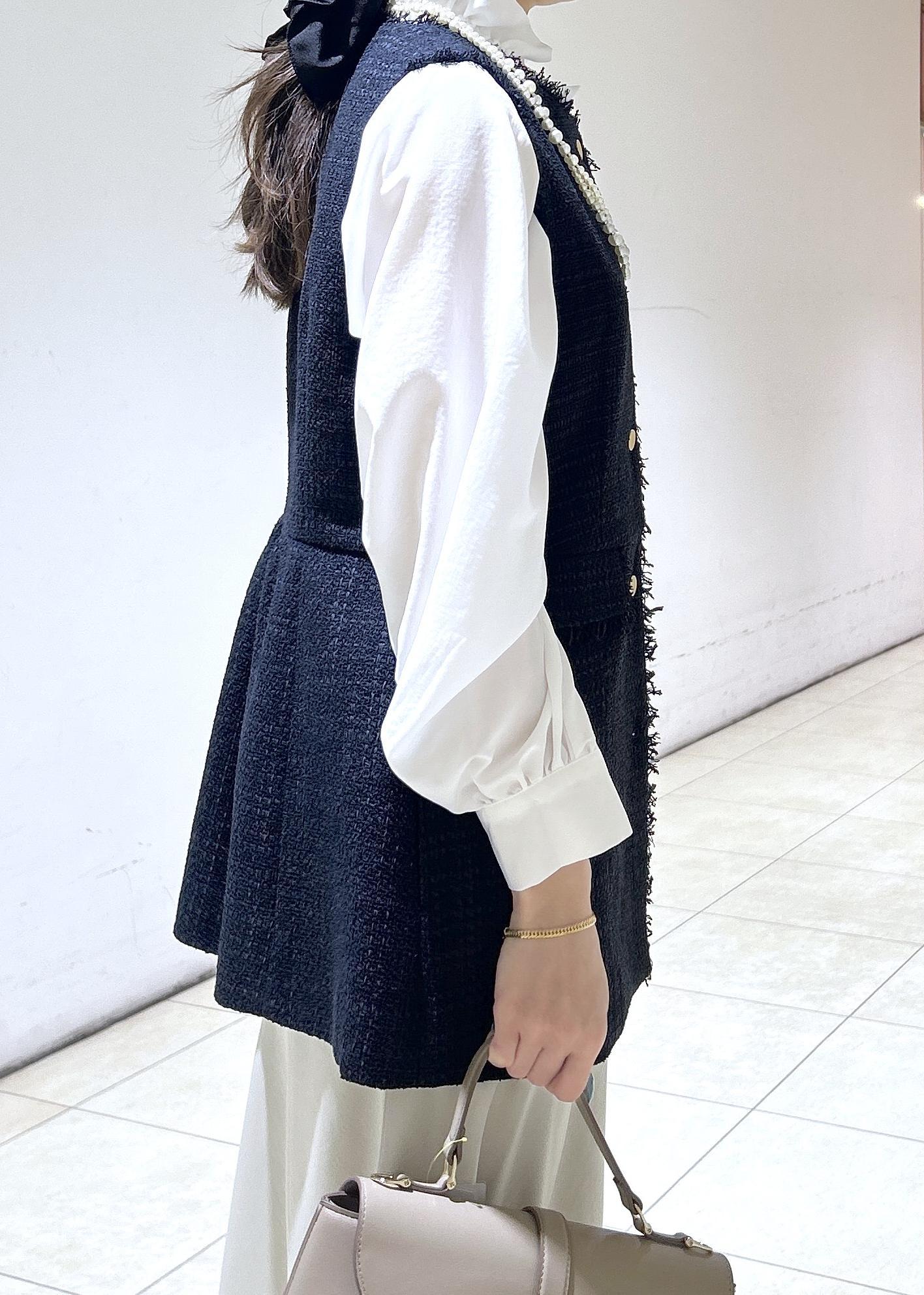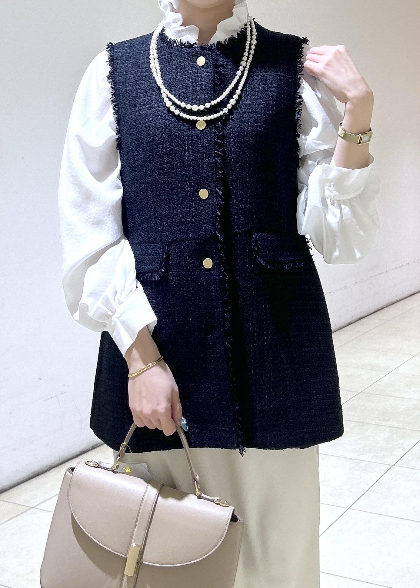 ROPÉ PICNIC【WEB限定カラー】ツイード金ボタンジレベスト/セレモニー対応・リンクコーデネイビー / F¥8,998レビュー身長157センチでお尻が隠れるくらいの丈になります。