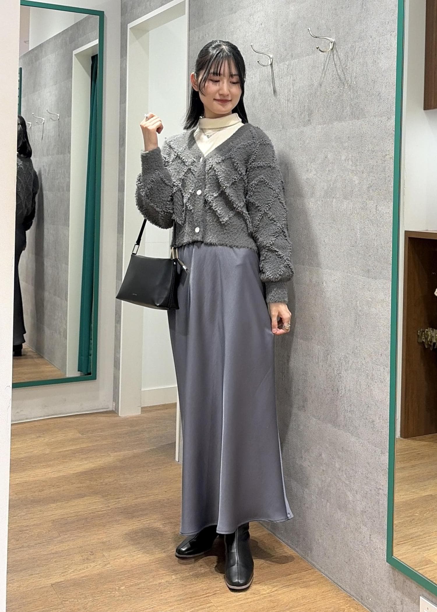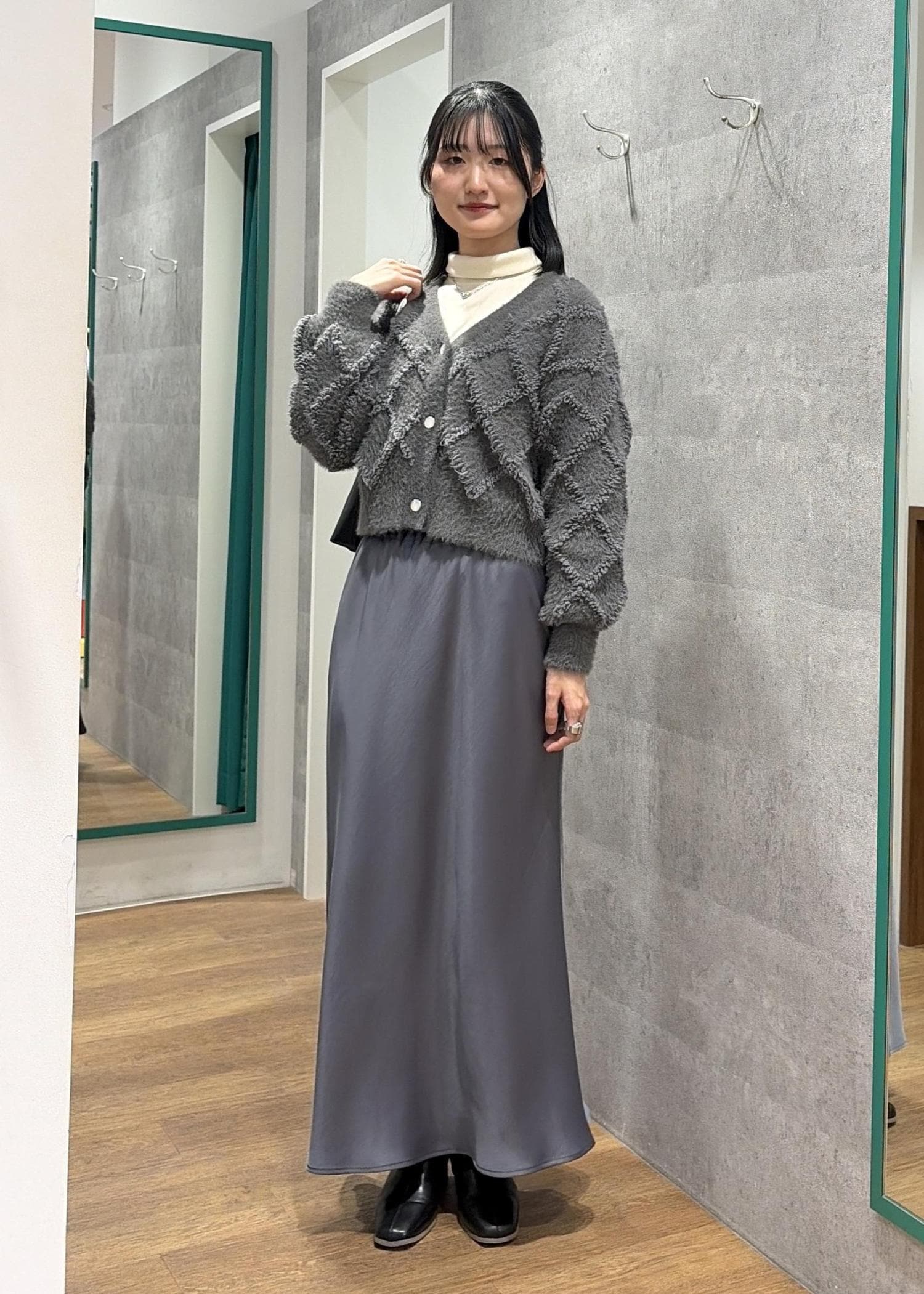 ROPÉ PICNICダイヤチェック柄ループフェザーカーディガンチャコール / F¥4,197レビューダイヤ柄のニットカーディガン。