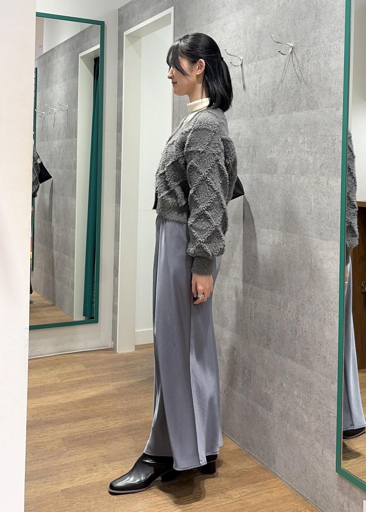着丈が短めなので、骨格ウェーブさんにおすすめです。