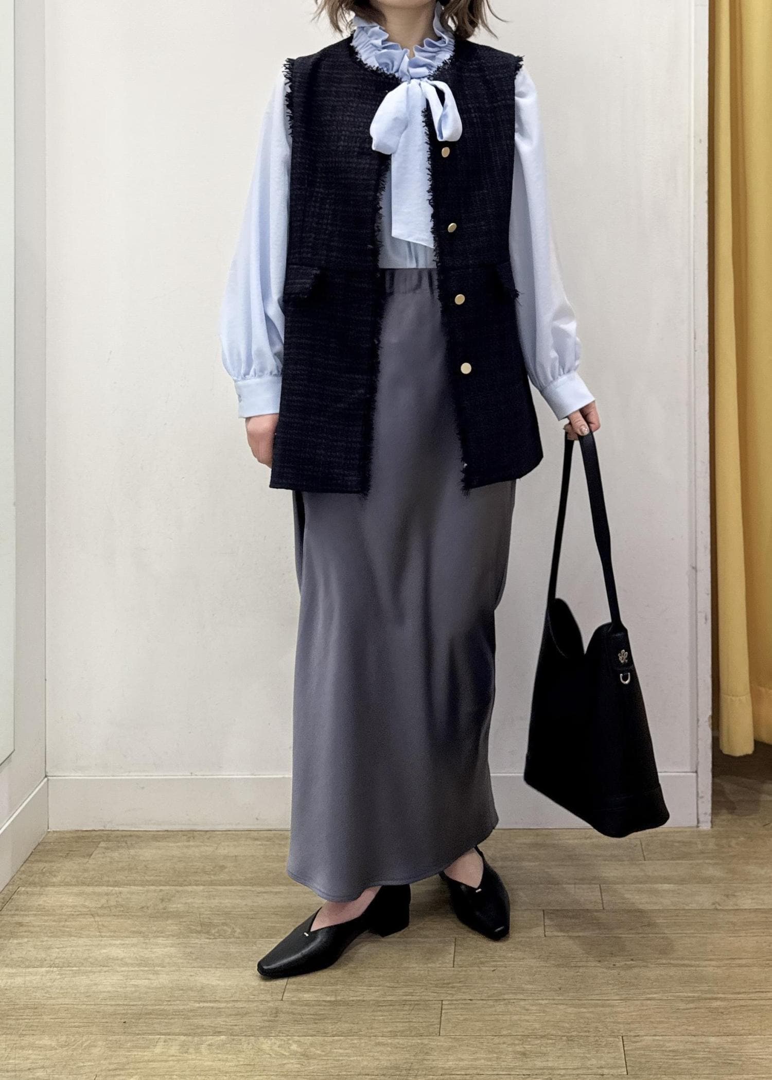 リボンタイやサテン素材など華やかにさもあり、オシャレな印象に☺︎