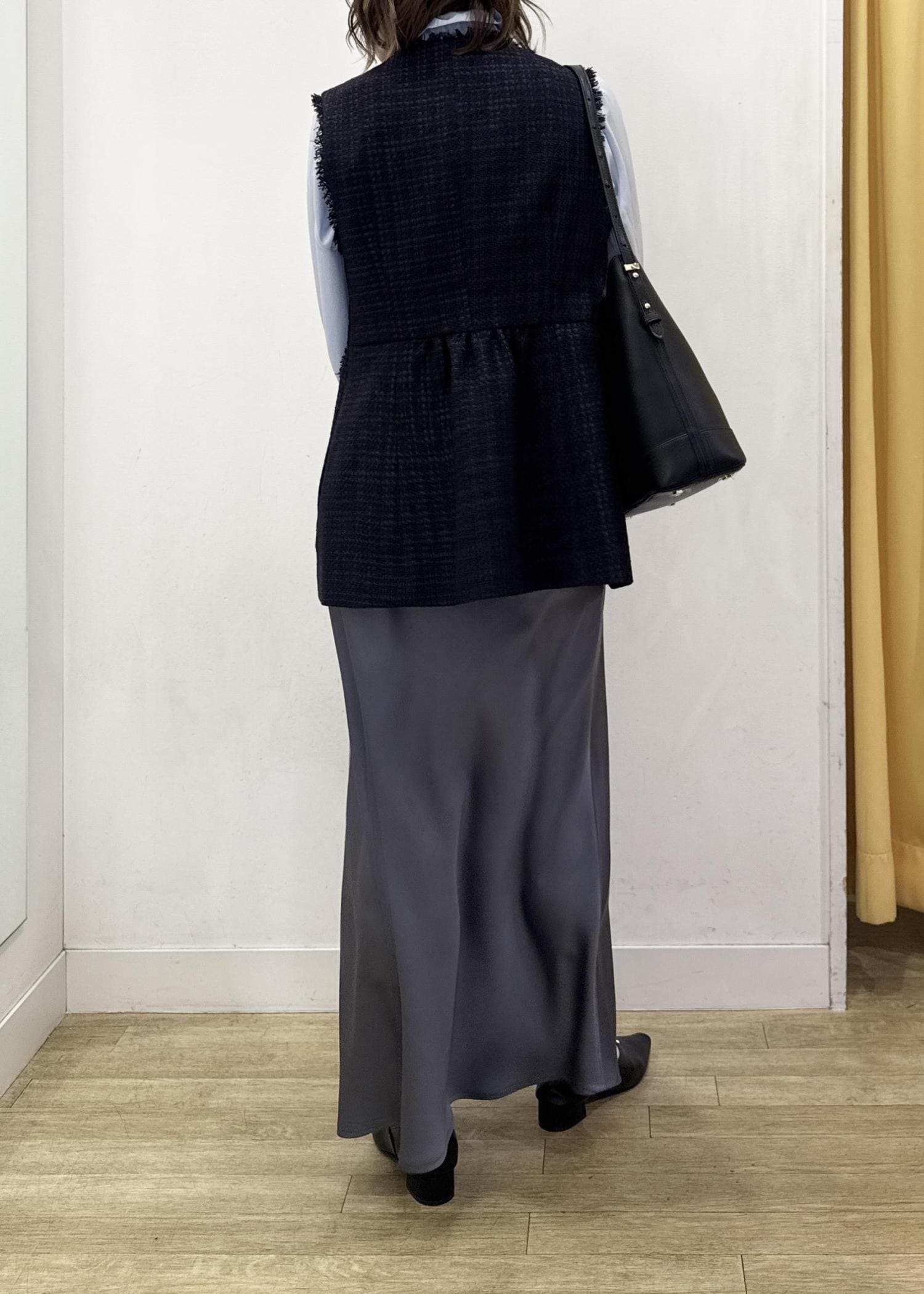 ペプラムシルエットですが、広がりすぎずスッキリとしたシルエットで着ていただけます。 -