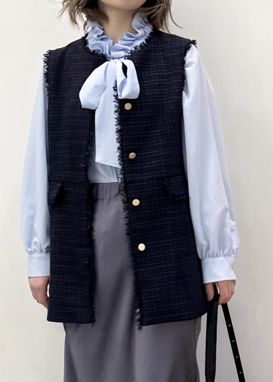 予約ROPÉ PICNIC【WEB限定カラー】ツイード金ボタンジレベスト/セレモニー対応・リンクコーデネイビー / F¥8,998レビューヒップがカバーできる安心感のある着丈で着られました。