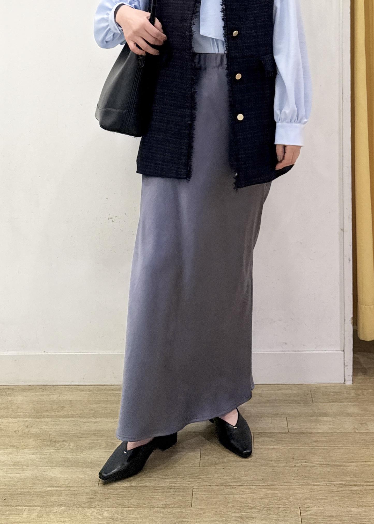 2BUY10%OFFROPÉ PICNIC細見えバイアスサテンスカート/イージーケアブルー系 / F¥6,490レビューウエストはオールゴムでゆったりラクな穿き心地。